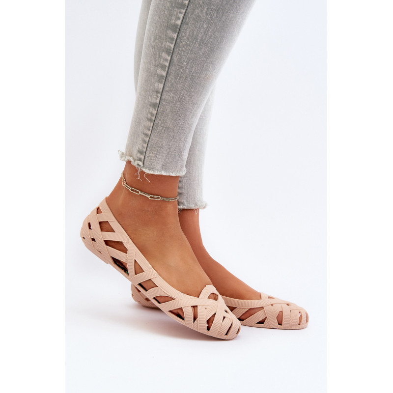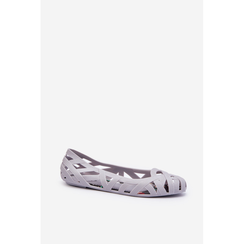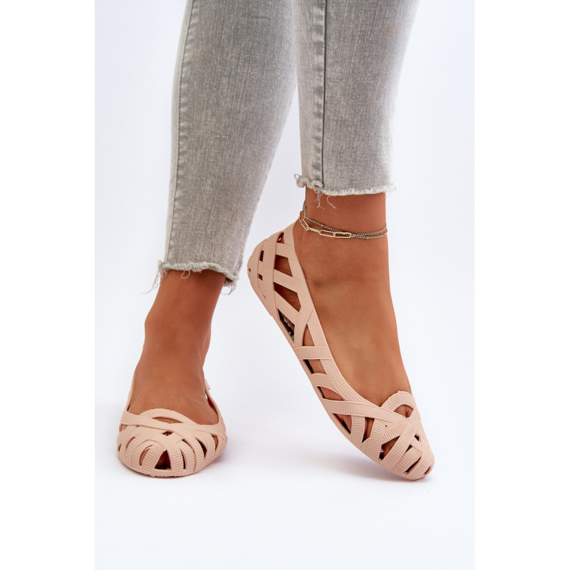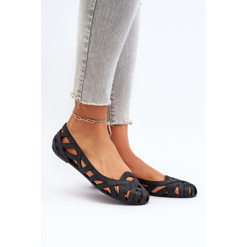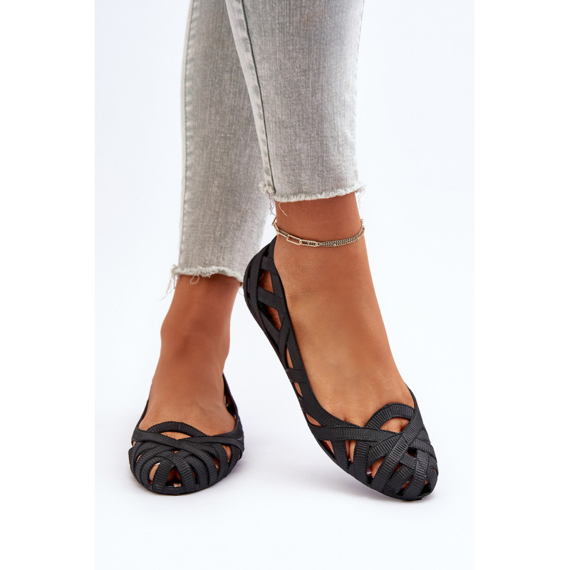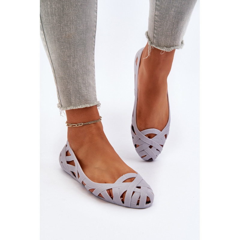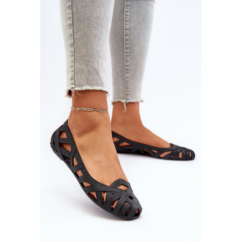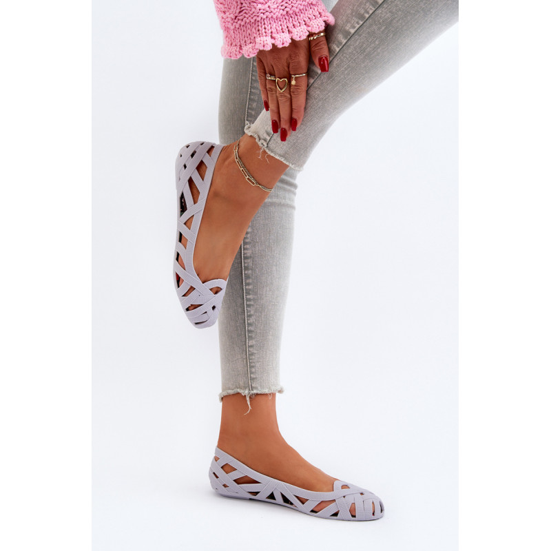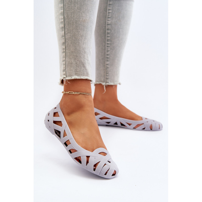 Moteriškos balerinos yra pagamintos iš guminės medžiagos. Dekoratyvinis dizainas su įaustais dirželiais. Balerinos batai yra ant plokščio kulno. Migdolo formos pirštas. Šis modelis puikiai tinka karštoms dienoms! Rinkdamiesi dydį, žiūrėkite dydžių lentelę.