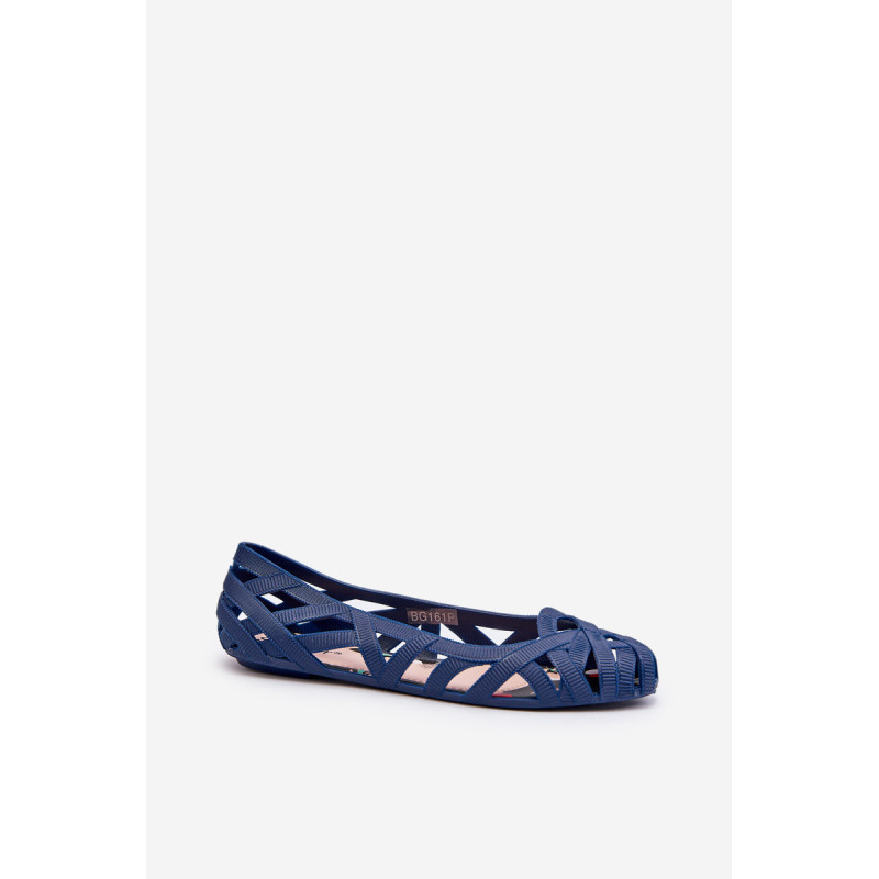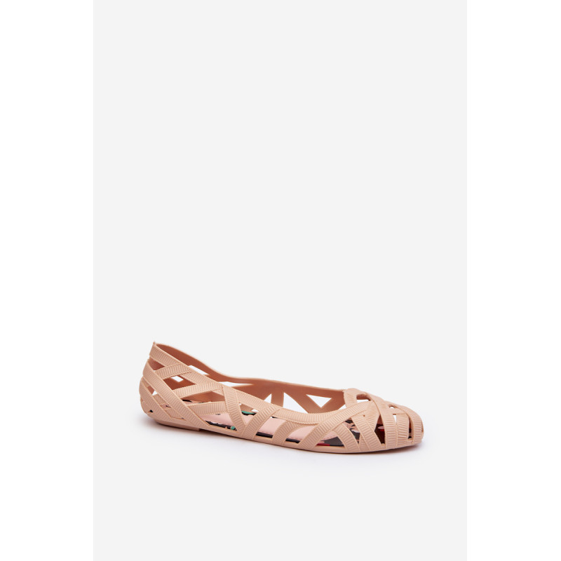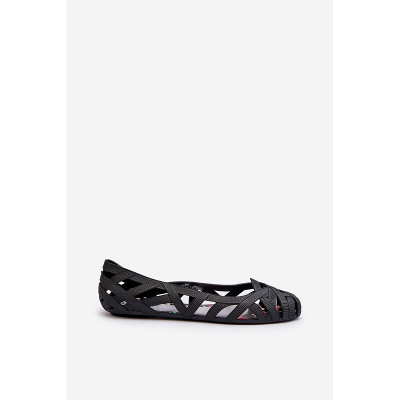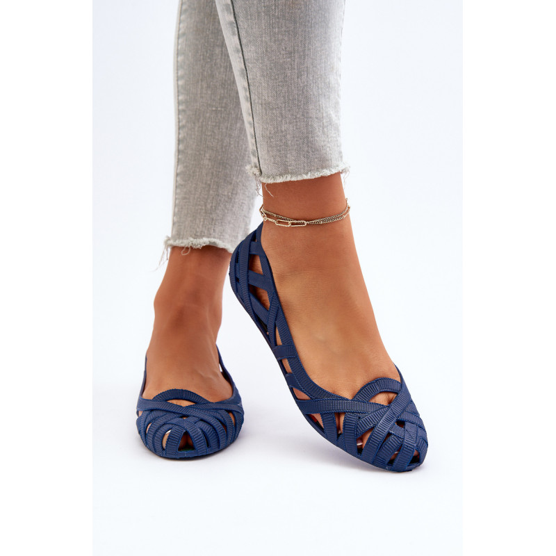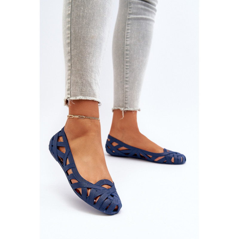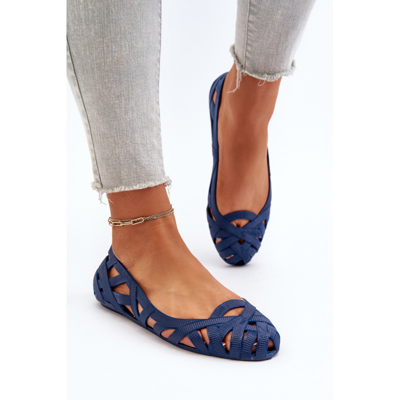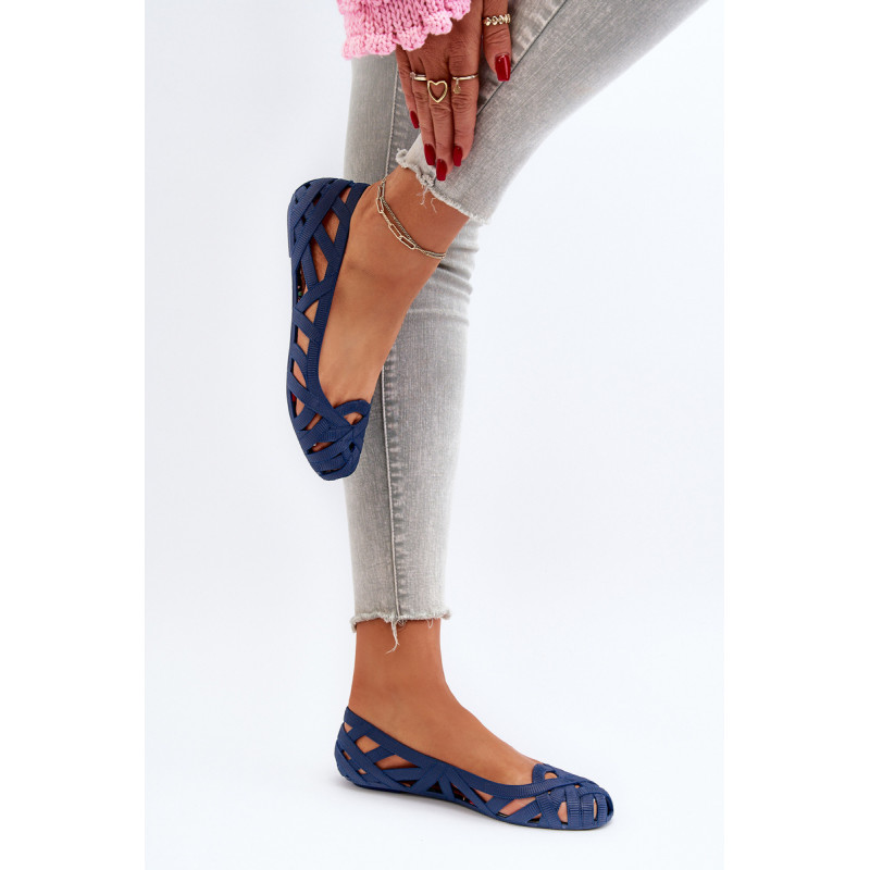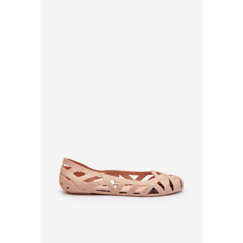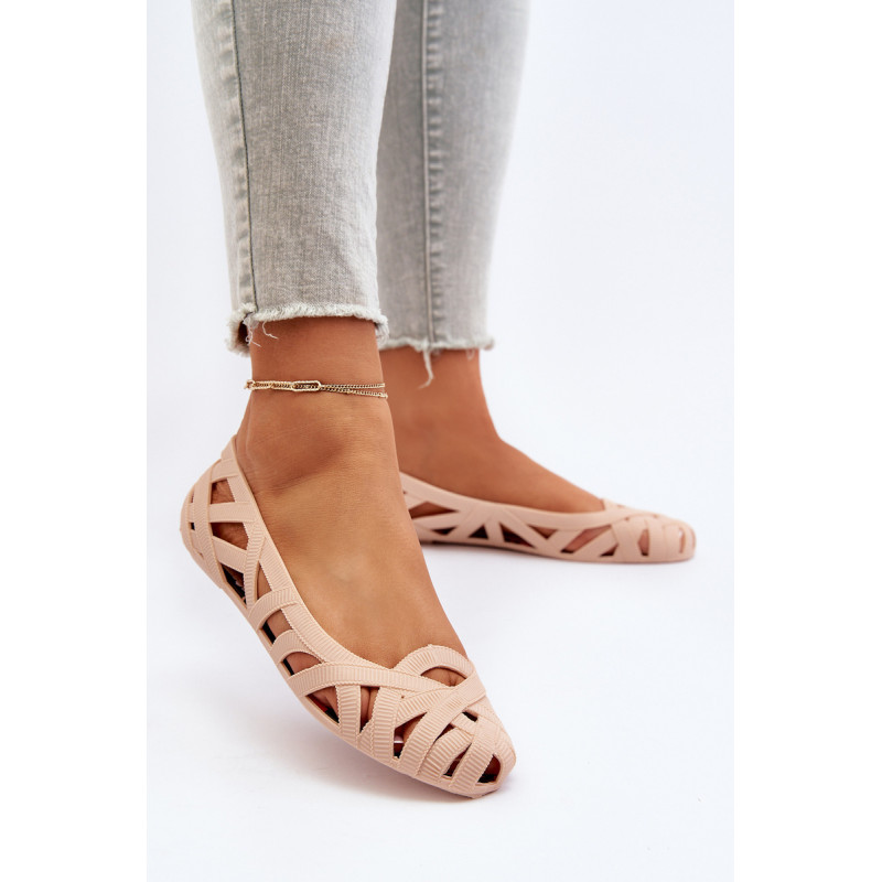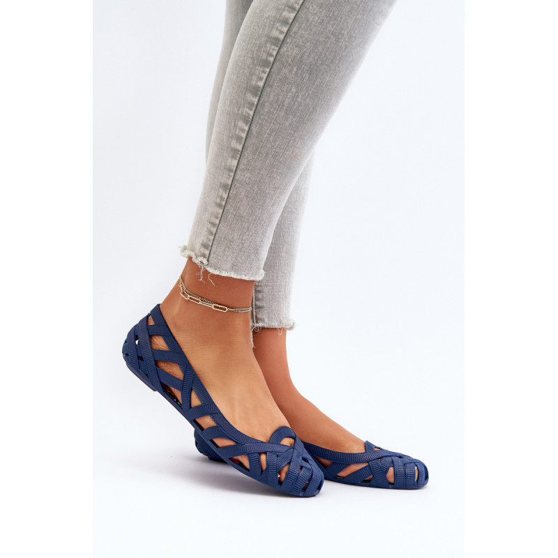 Moteriškos balerinos yra pagamintos iš guminės medžiagos. Dekoratyvinis dizainas su įaustais dirželiais. Balerinos batai yra ant plokščio kulno. Migdolo formos pirštas. Šis modelis puikiai tinka karštoms dienoms! Rinkdamiesi dydį, žiūrėkite dydžių lentelę.