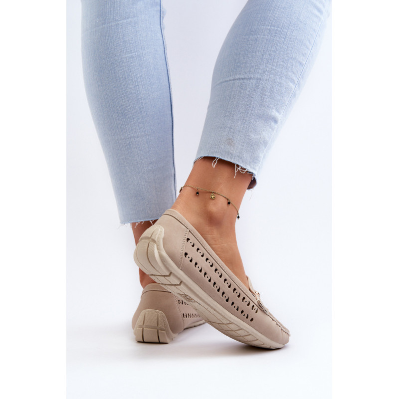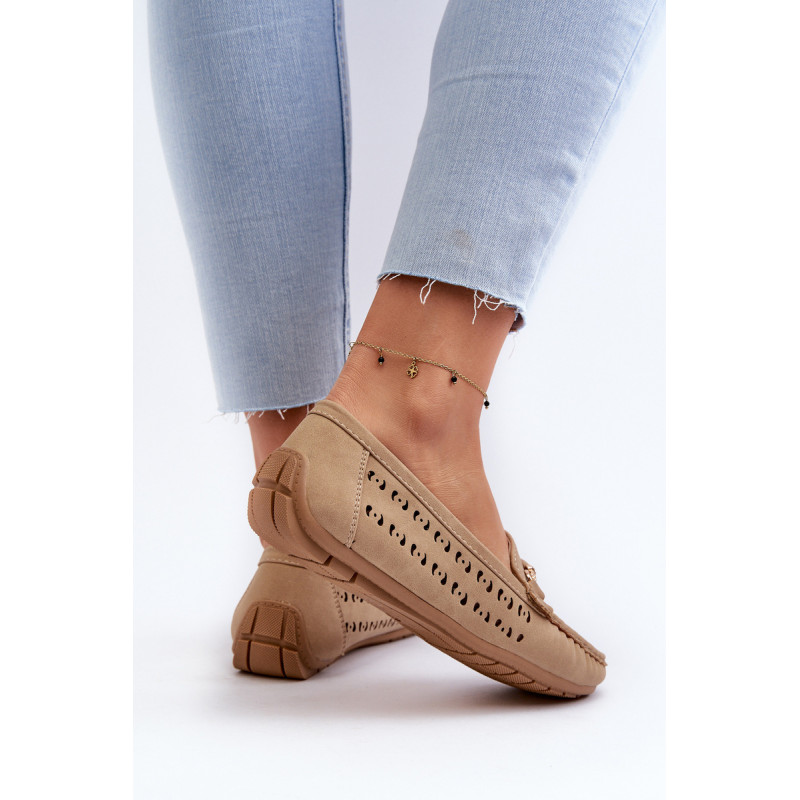 Moteriški ažūriniai mokasinai, pagaminti iš ekologiškos zomšos. Pastatykite ant guminio pado. Suapvalinti kojų pirštai. Šis modelis turi minkštą, odinį vidpadį, kuris suteiks komforto dėvint. Jie tikrai puikiai atrodys daugelyje stilių! Rinkdamiesi dydį, žiūrėkite dydžių lentelę.