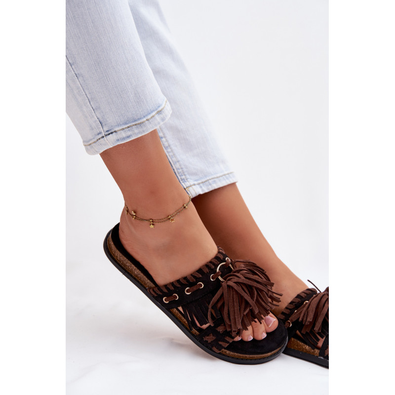 Stilingos moteriški papuči iš ekologiško zomšiaus yra puikus derinys tarp patogumo ir madingo išvaizdos. Plokščia padas užtikrina komfortą kasdieniam dėvėjimui, o dekoratyvinės kutelės suteikia lengvumo ir moteriškumo. Švelniai profiliuotas įdėklas palaiko koją ir didina patogumą net ir ilgiau dėvint. Šis modelis puikiai tinka vasaros kasdienėms stilizacijoms. Renkantis dydį, vadovaukitės dydžių lentele.