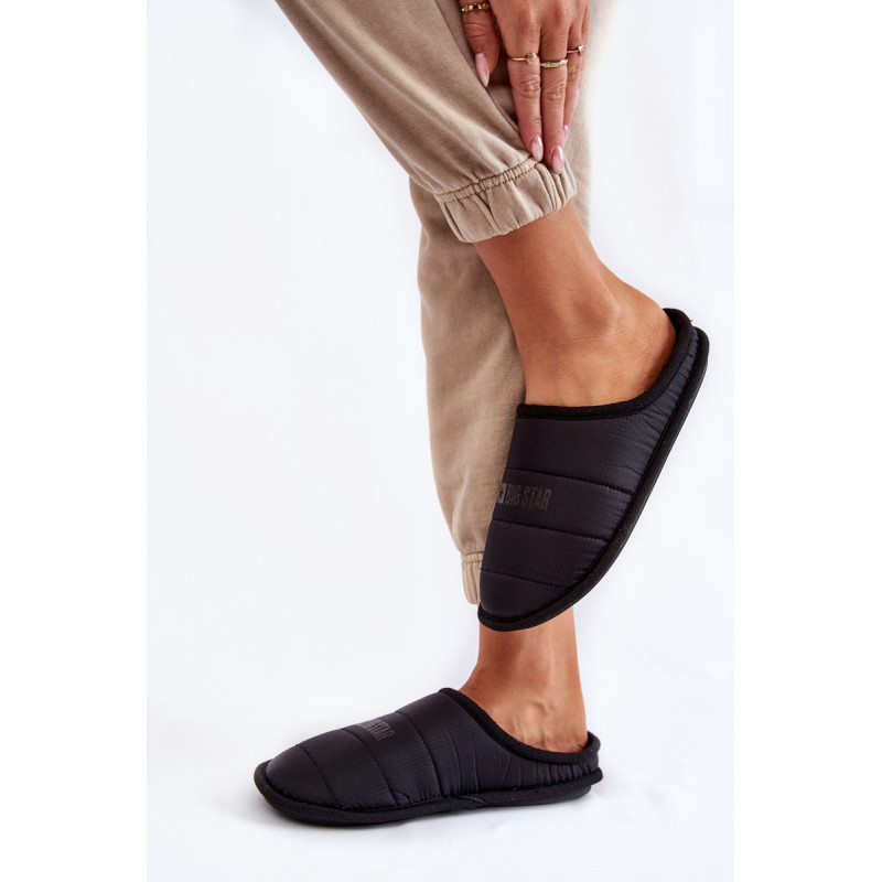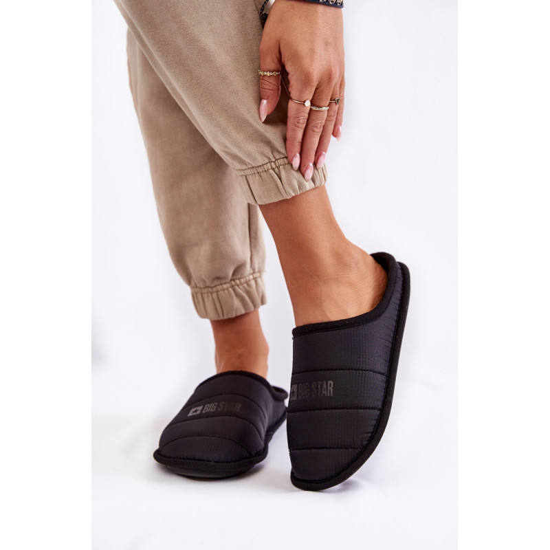 Moteriškos, užsegamos šlepetės platesniu nosyliu užtikrins patogumą naudojimo metu. Šlepetės iš tekstilinės medžiagos su siūlėmis. Viršuje yra Big Star logotipas. Viduje šlepetės buvo izoliuotos minkšta antklode. Pastatas ant pado iš guminės medžiagos, kuri puikiai izoliuoja nuo šaltos žemės. Renkantis dydį, naudokite dydžių lentelę.