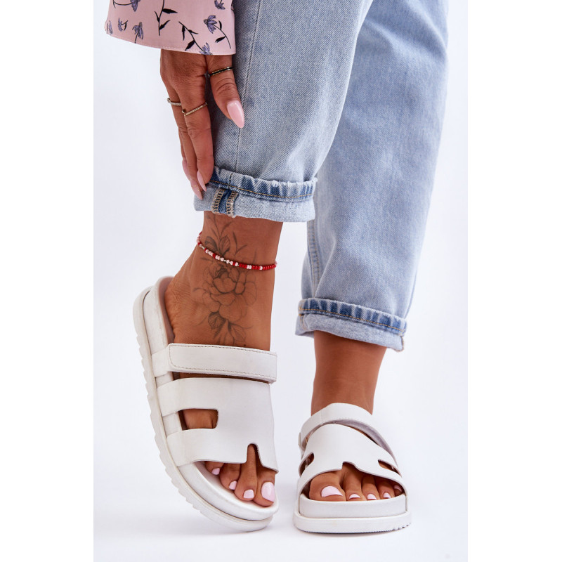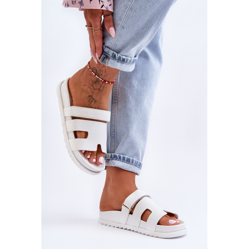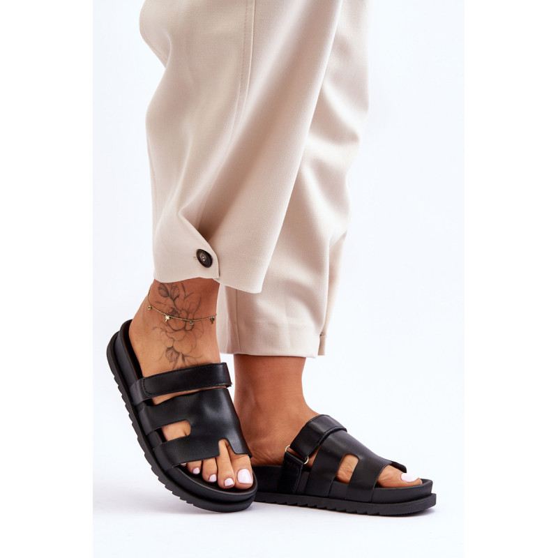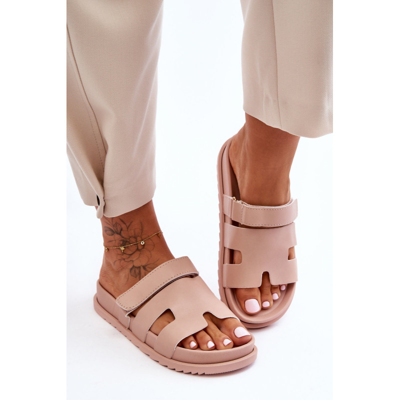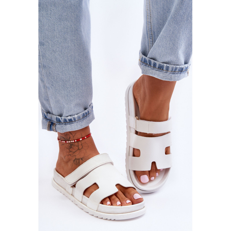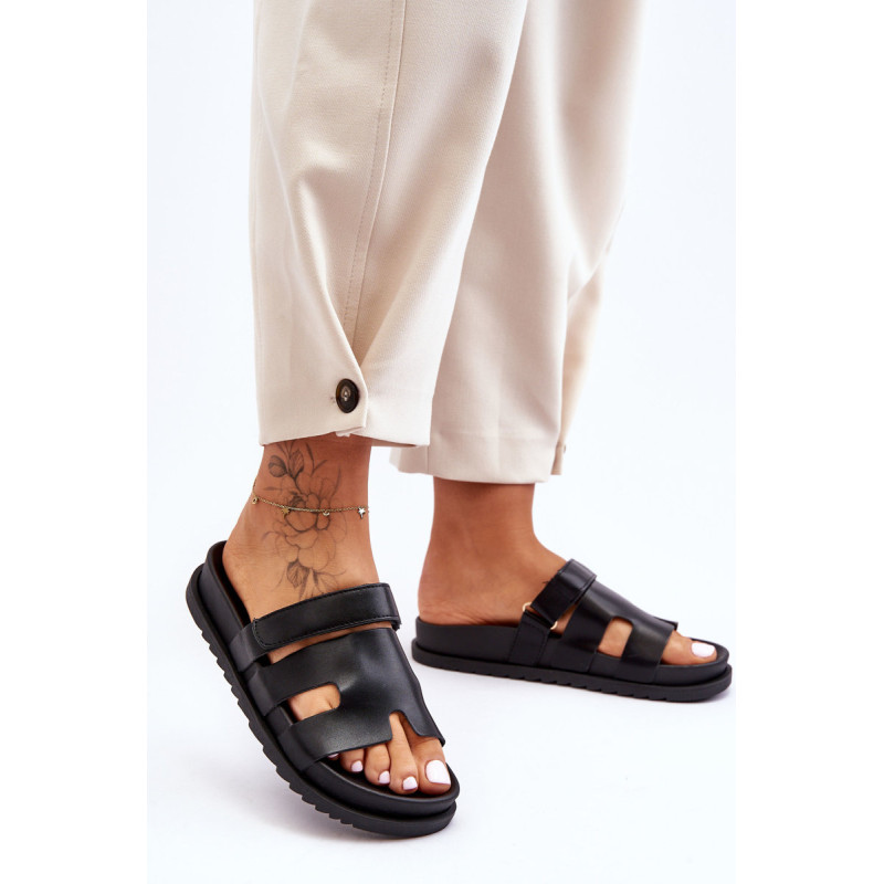 Klasikiniai moteriški šlepetės ant lengvos platformos buvo praturtinti Velcro užsegimu, leidžiančiu priderinti avalynę prie kojos pločio. Gerai profiliuotas vidpadis suteiks komforto naudojimo metu. Šios įdomios formos šlepetės tikrai bus naudingos daugeliui stilių! Jie pagaminti iš ekologiškos odos. Renkantis dydį, vadovaukitės dydžių lentele.