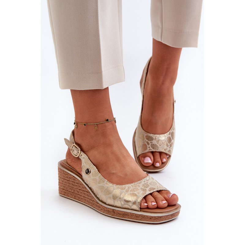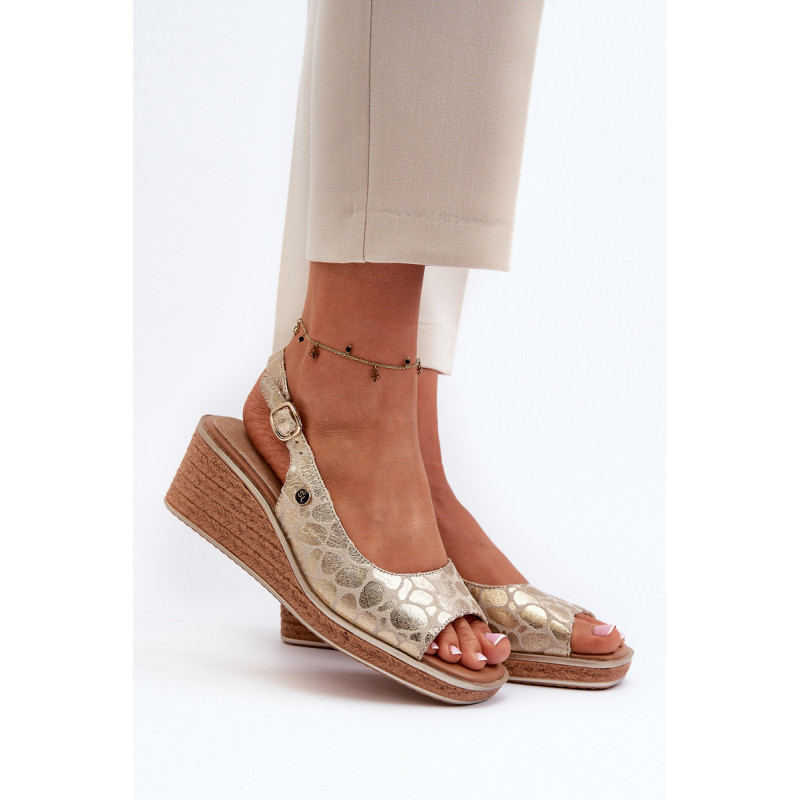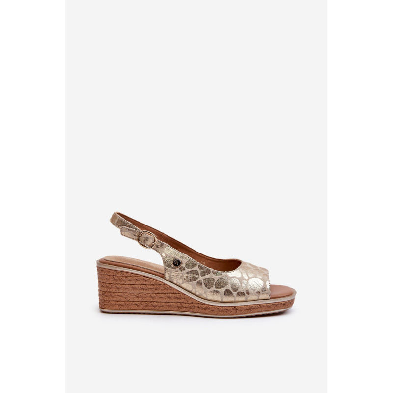 Moteriški sandalai su pleištiniais pynimo rašto imitacija. Dėl reguliuojamo dirželio su sagtimi jie garantuoja puikų prigludimą prie pėdos. Be to, odinis vidpadis užtikrina komfortą net ir ilgai nešiojant. Puikiai tinka vasaros pasivaikščiojimams ar susitikimams lauke! Rinkdamiesi dydį, žiūrėkite dydžių lentelę.