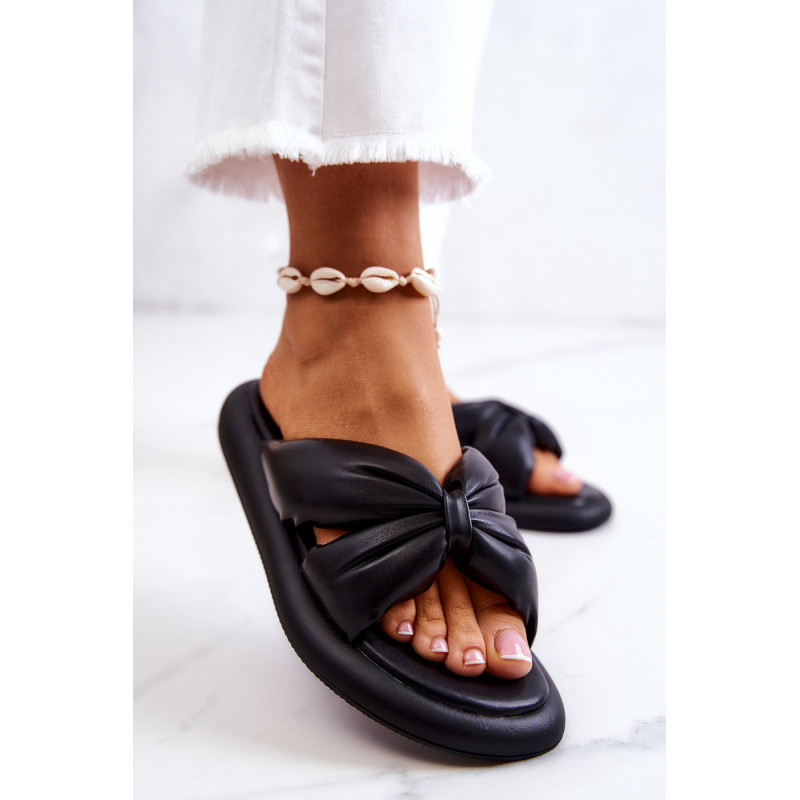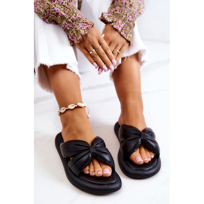 Elegantiškos moteriškos šlepetės atviru pirštu ir užapvalinta priekiu – madingiausias kirpimas šį sezoną! Šlepetės turi minkštą, eko odos įdėklą. Diržai pagaminti iš eko odos, yra storesni ir minkšti liesti. Plokščias padas su platforma pagamintas iš plastiko. Šios šlepetės užbaigs daugybę vasariškų stilizacijų! Būtinai peržiūrėkite visą mūsų moteriškų šlepečių kolekciją. Renkantis dydį, naudokite dydžių lentelę.