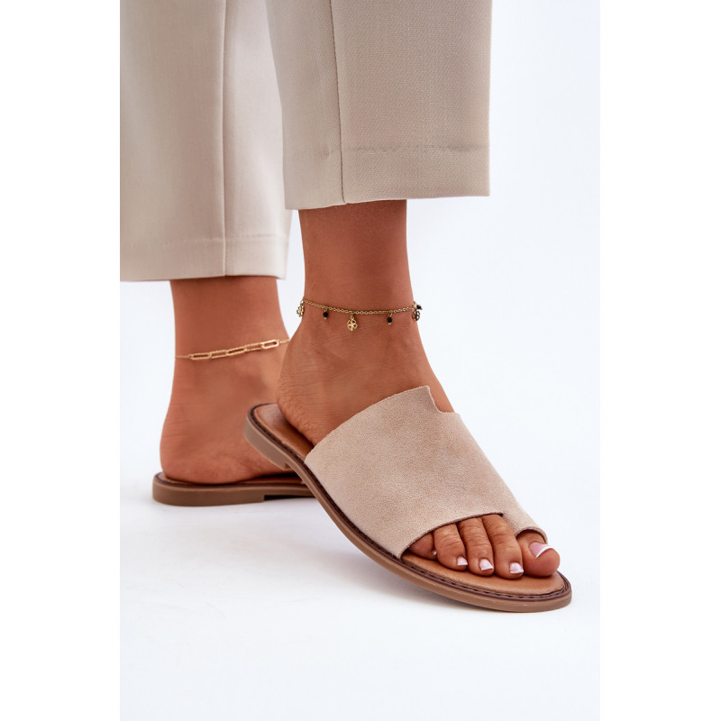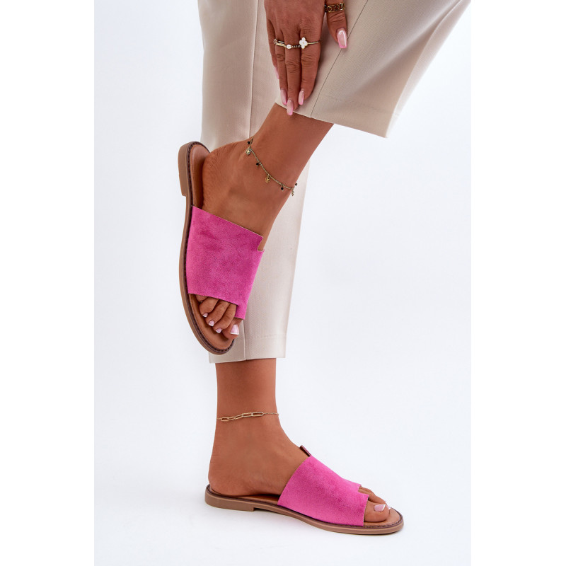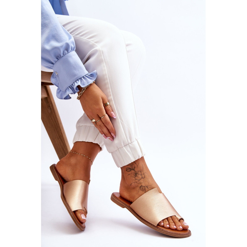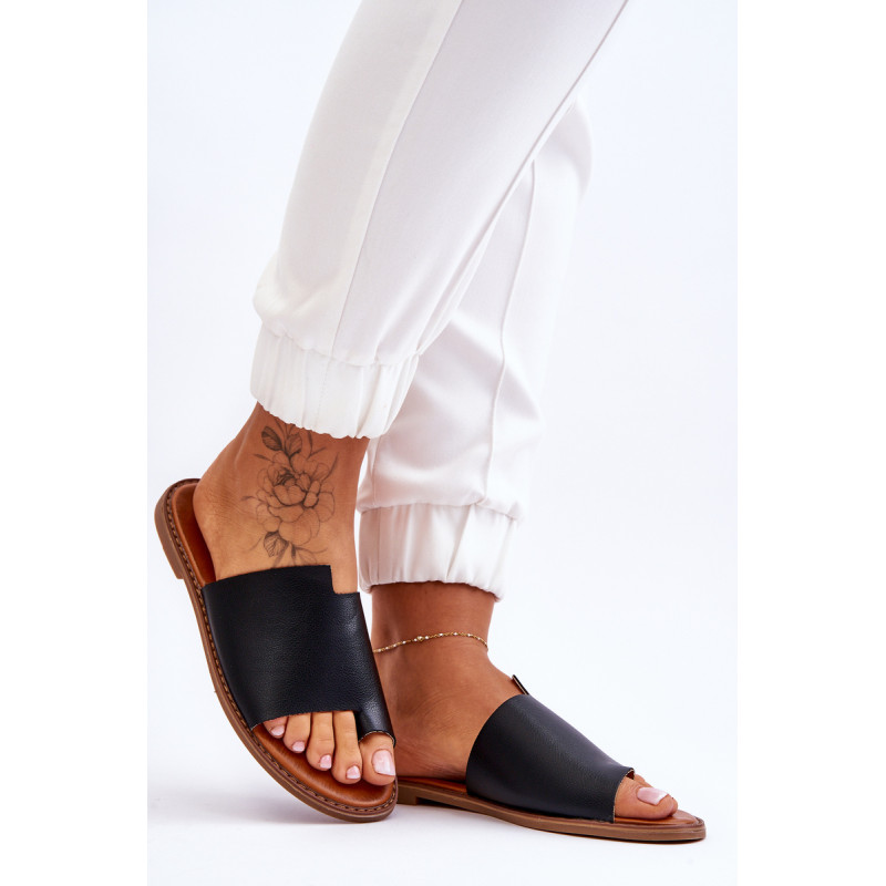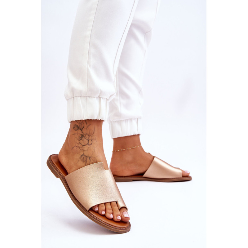 Klasikiniai šlepetės iš ekologiškos odos. Nustatyti ant plokščio kulno su neslidžiu padu. Šis modelis puikiai tiks prie daugelio vasaros stilizacijų. Šlepetės turi minkštą, ekologišką odinį vidpadį. Būtinai apžiūrėkite ir kitus mūsų parduotuvėje esančius šlepečių modelius!