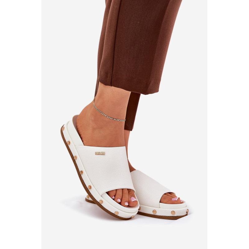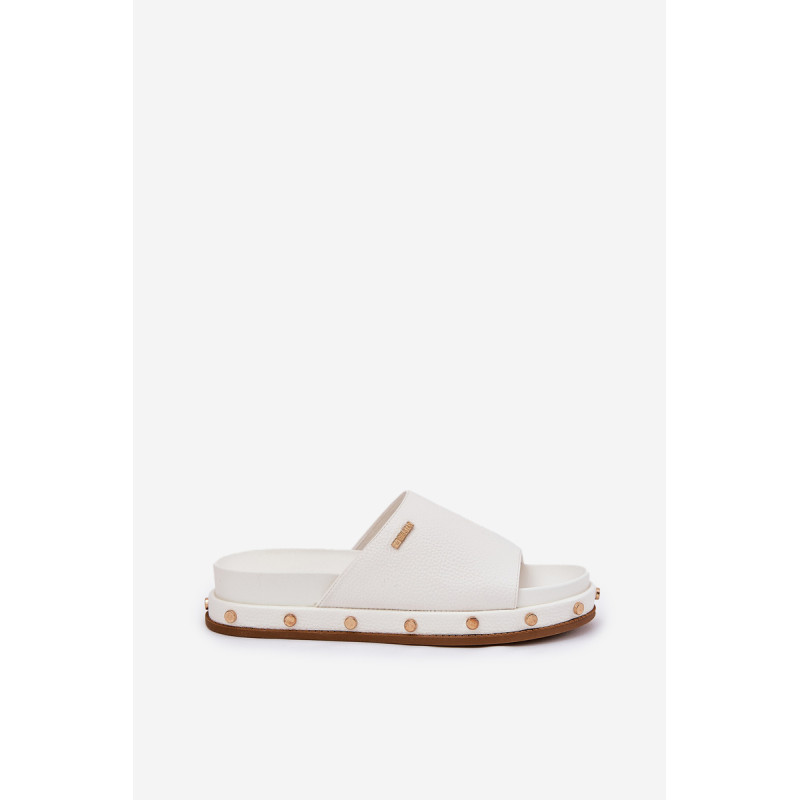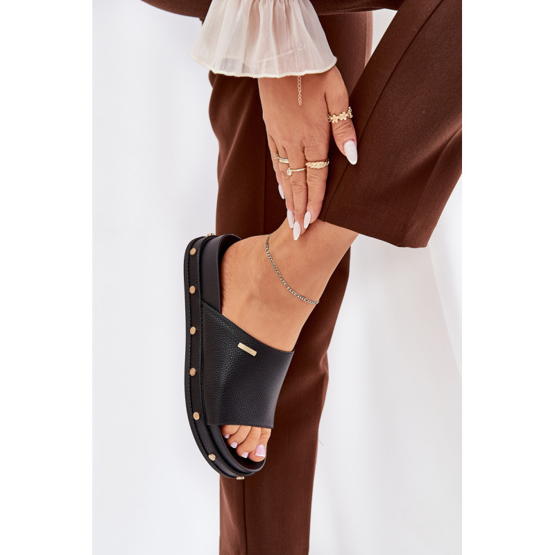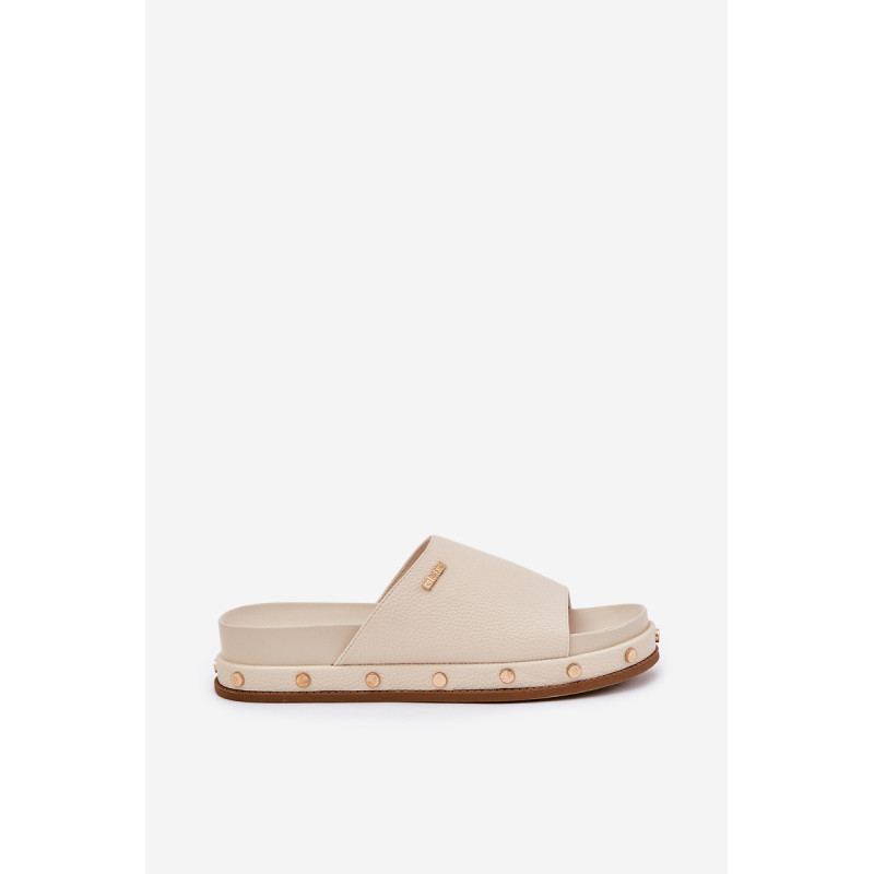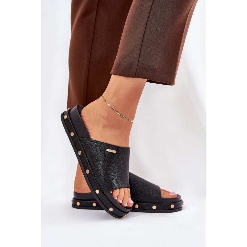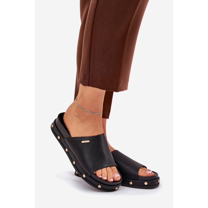 Moteriški šlepetės iš Big Star prekės ženklo yra stilingi batai, kurie puikiai dera prie vasaros drabužių. Pagaminti iš eko odos, ant platformos, kuri suteikia jiems charakterio ir komforto. Papuošti kaiščiais, kurie suteikia modernų, drąsų įvaizdį. Šios šlepetės puikiai tinka vasaros stiliams, derindamos eleganciją su madingu akcentu, idealiai tinkančios kasdieniam dėvėjimui. Renkantis dydį, vadovaukitės dydžių lentele.