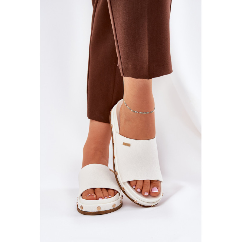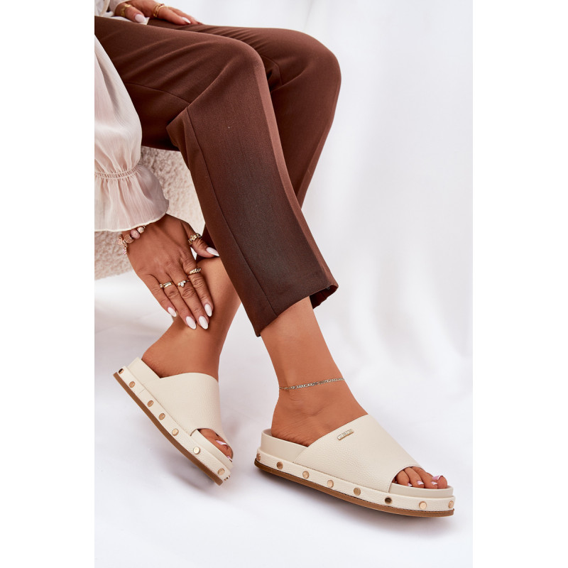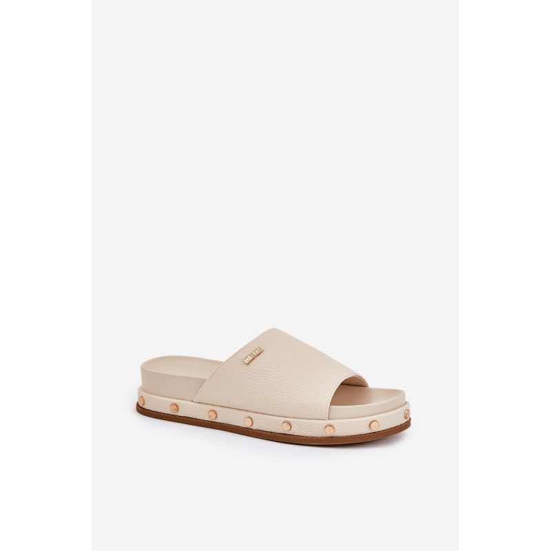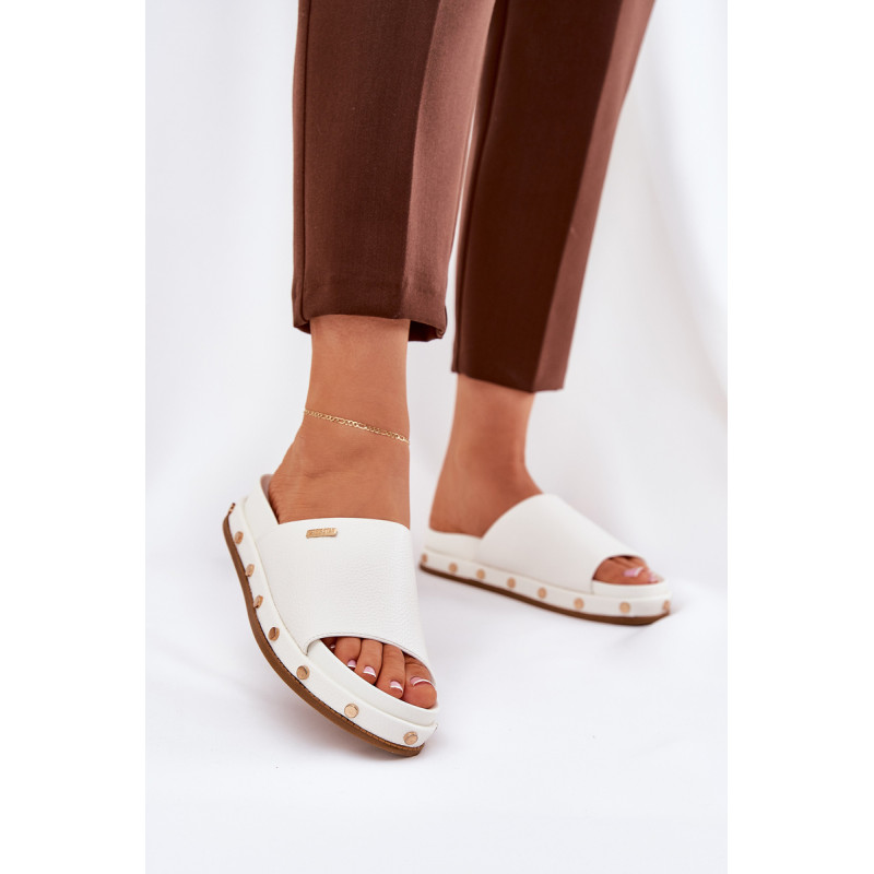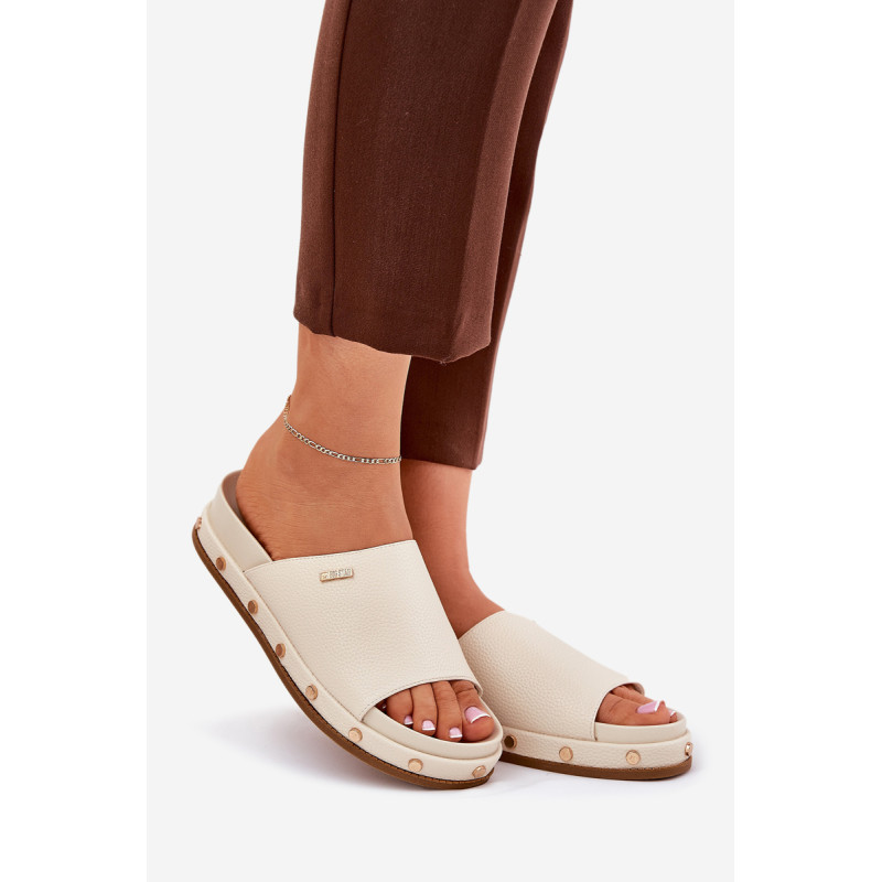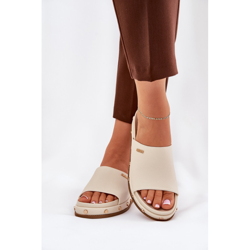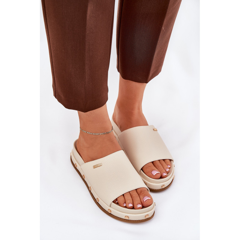 Moteriški šlepetės iš Big Star prekės ženklo yra stilingi batai, kurie puikiai dera prie vasaros drabužių. Pagaminti iš eko odos, ant platformos, kuri suteikia jiems charakterio ir komforto. Papuošti kaiščiais, kurie suteikia modernų, drąsų įvaizdį. Šios šlepetės puikiai tinka vasaros stiliams, derindamos eleganciją su madingu akcentu, idealiai tinkančios kasdieniam dėvėjimui. Renkantis dydį, vadovaukitės dydžių lentele.