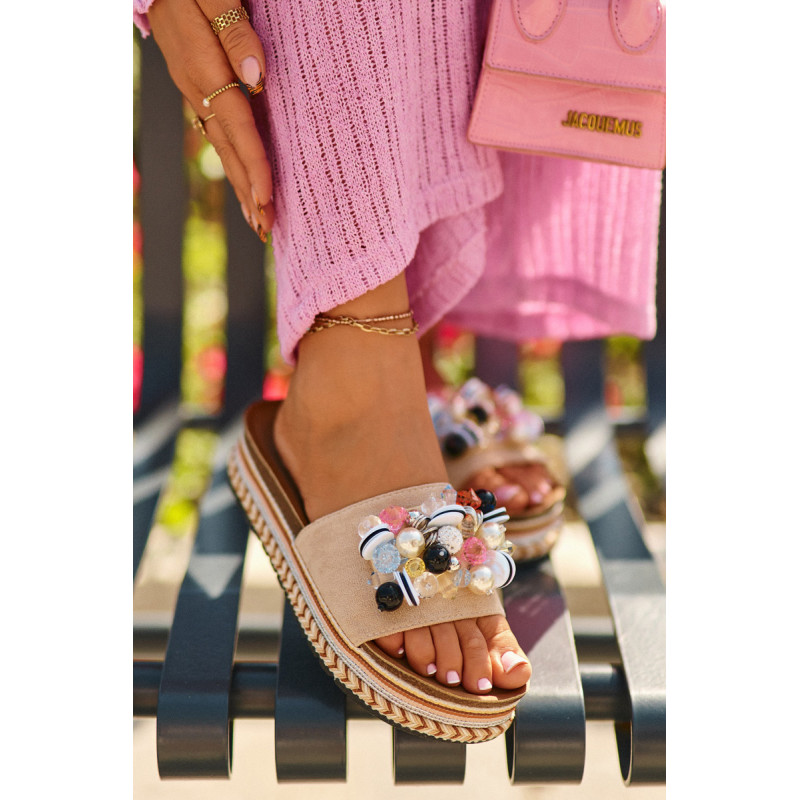 Stilingi moteriški S.Barski prekės ženklo sandalai. Įrengtas ant dekoruotos platformos. Daug papuošimų ant dirželio. Šis modelis turi kontūruotą vidpadį, kuris suteiks komforto kiekviename žingsnyje. Puikiai tiks prie vasarinių suknelių ir kelnių! Rinkdamiesi dydį, žiūrėkite dydžių lentelę.