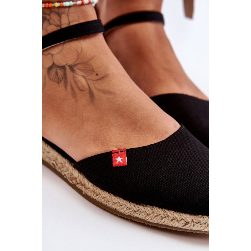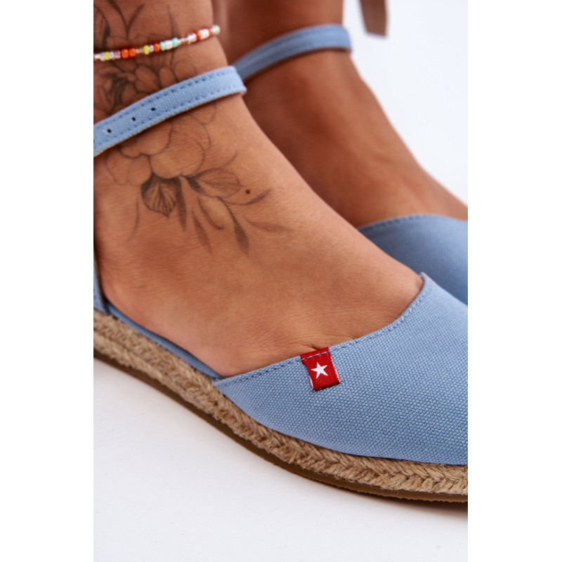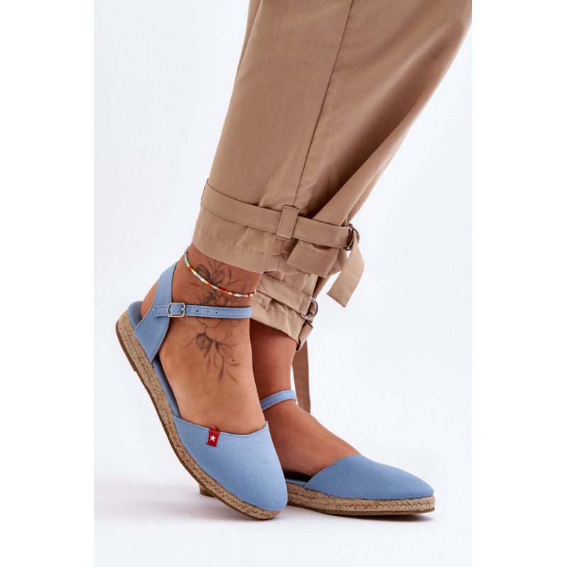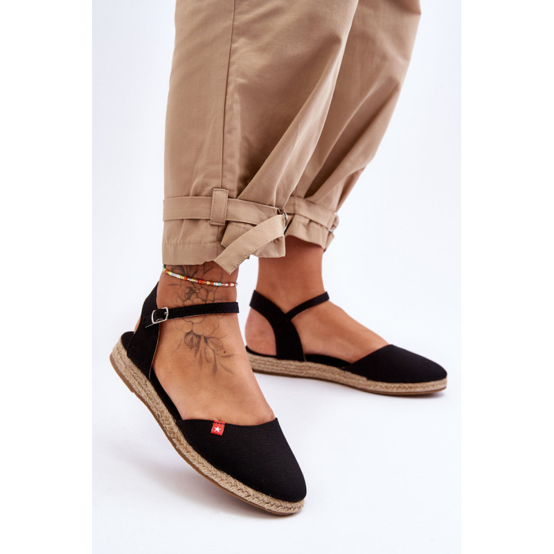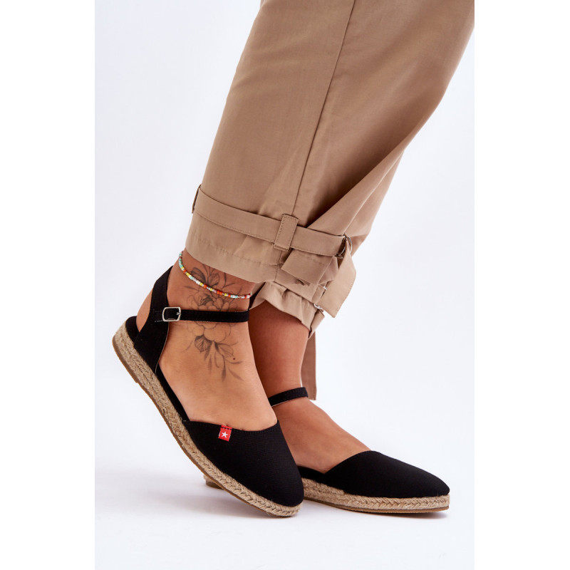 Šie espadriliai buvo pagaminti iš audinio. Šiuose batuose naudojamas minkštas vidpadis leidžia patogiai dėvėti. Sandalai turi suapvalintą pirštą. Batai užsegami reguliuojamu dirželiu su sagtimi. Platformą puošia džiuto pynė. Espadryles yra ant plokščio kulno su neslidžiu padu. Renkantis dydį, vadovaukitės dydžių lentele.