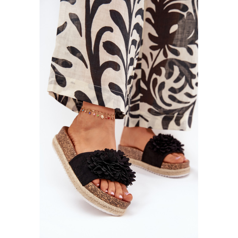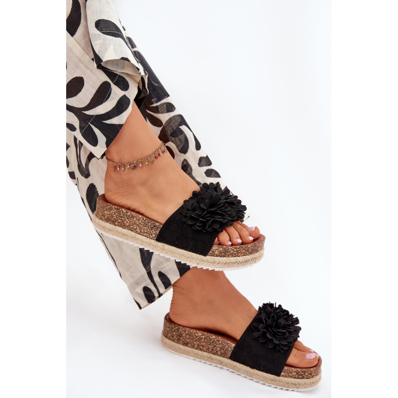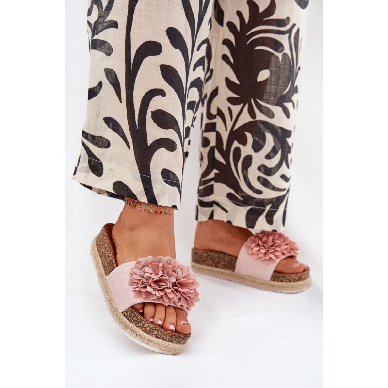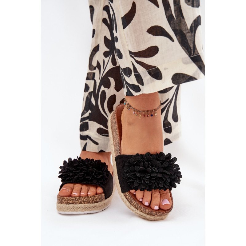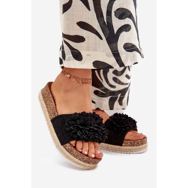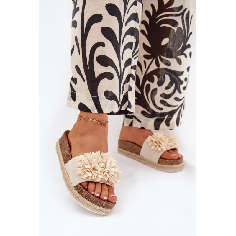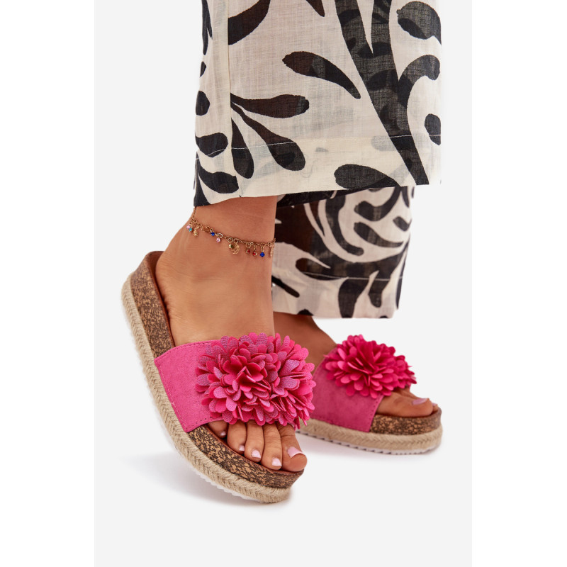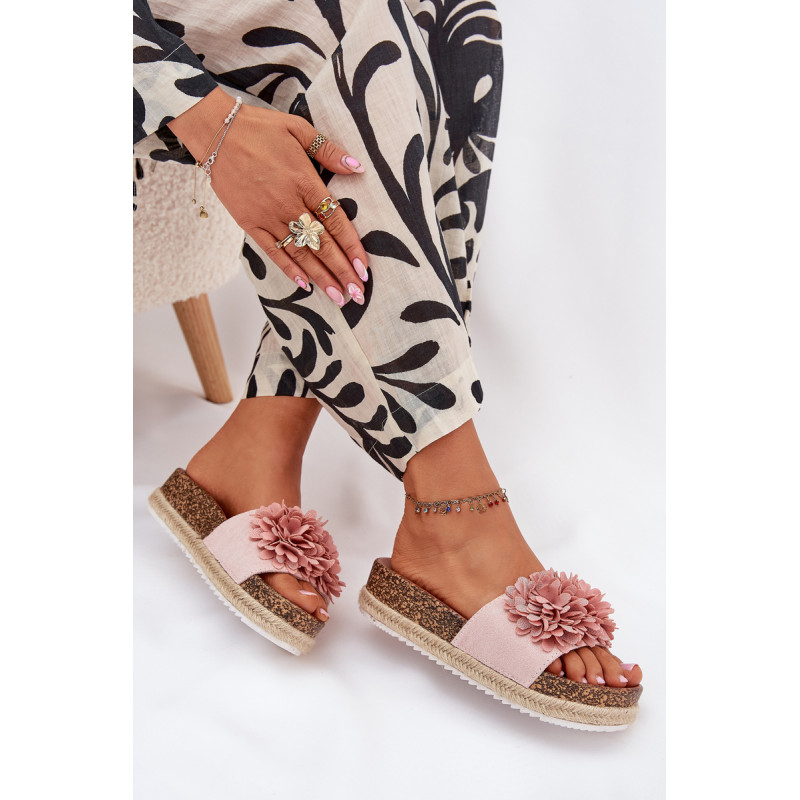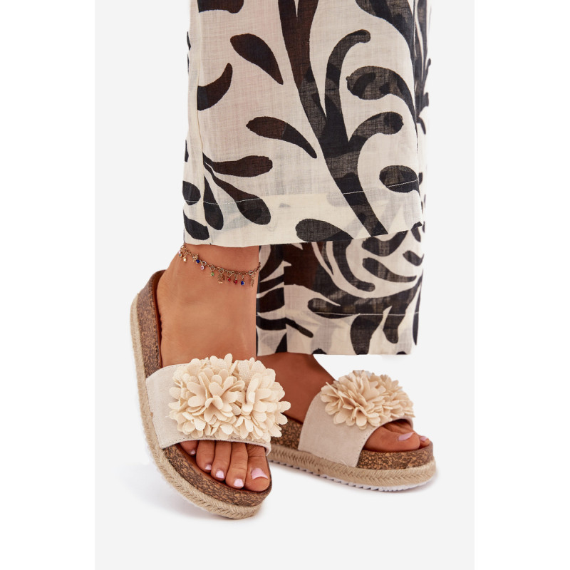 Moteriški šlepetės, idealiai tinkančios karštoms dienoms, įtvirtintos ant kamštinės platformos su pynimu, sujungia komfortą su vasaros stiliumi. Priekyje ant dirželio yra dekoratyvinių, gausių medžiaginių gėlių, kurios prideda žavesio. Lengvai profiliuota ekologiškos odos padas užtikrina komfortą visą dieną. Puikiai tinka vasaros stiliams, jie puikiai derinasi su suknelėmis, sijonais ar šortais, suteikdami lengvumo ir gaivumo kiekvienam įvaizdžiui. Renkantis dydį, vadovaukitės dydžių lentele.