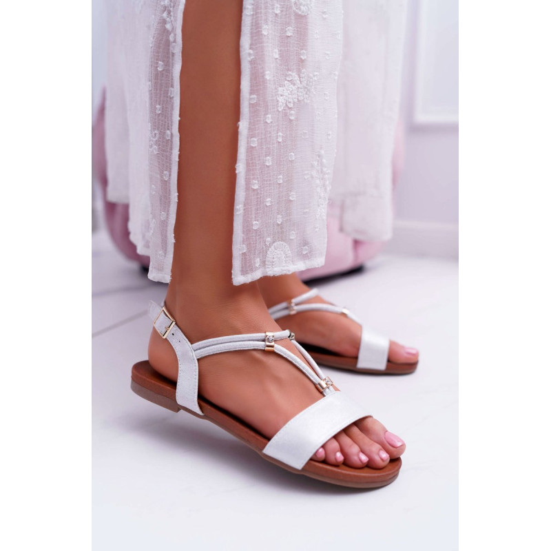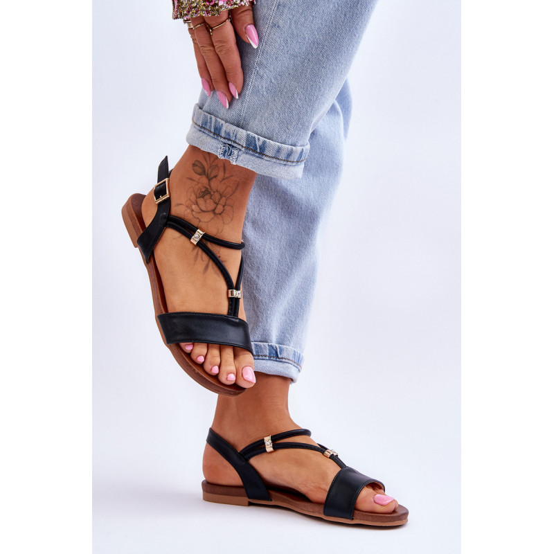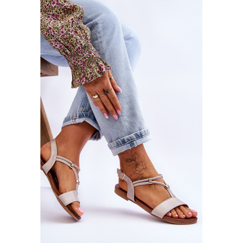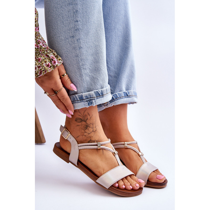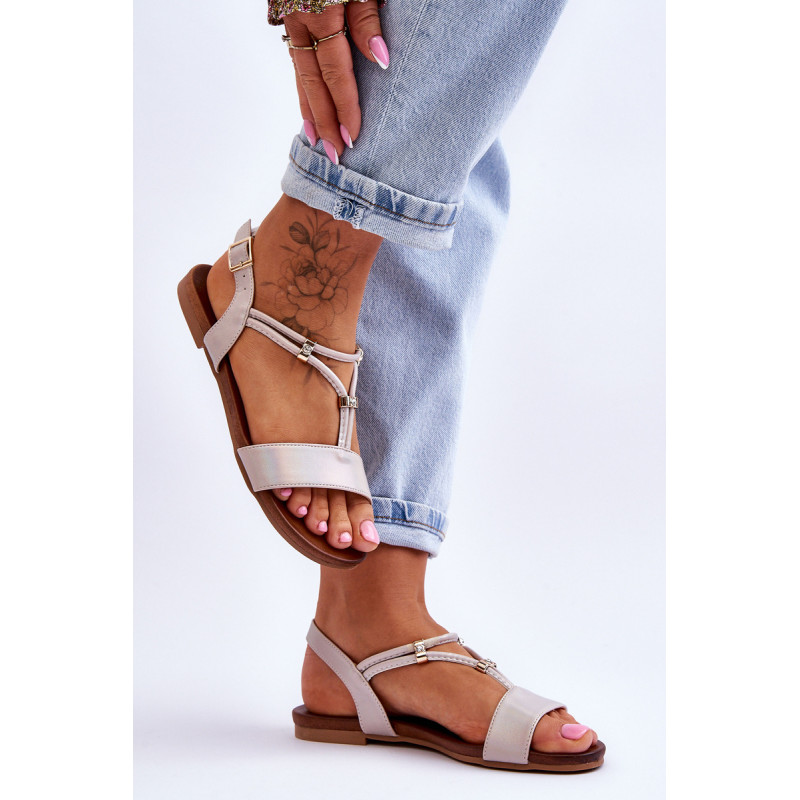 Sandalai plokščiakulniais su padu iš guminės medžiagos, kuri papildomai neslysta. Batai turi eko odos dirželius ir minkštą vidpadį, kuris pasirūpins Jūsų patogumu naudojimo metu. Užsegama sagtimi aplink kulkšnį su reguliuojamu dirželiu. Ant juostelių dedami dekoratyviniai kalnų krištolai, imituojantys akmenukus. Erdvus modelis, puikiai tinkantis vasarai. Jūs tikrai turėtumėte juos turėti! Renkantis dydį, naudokite dydžių lentelę.