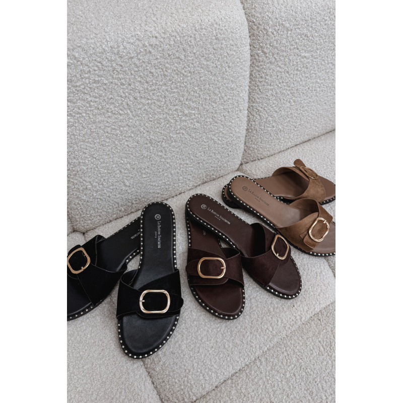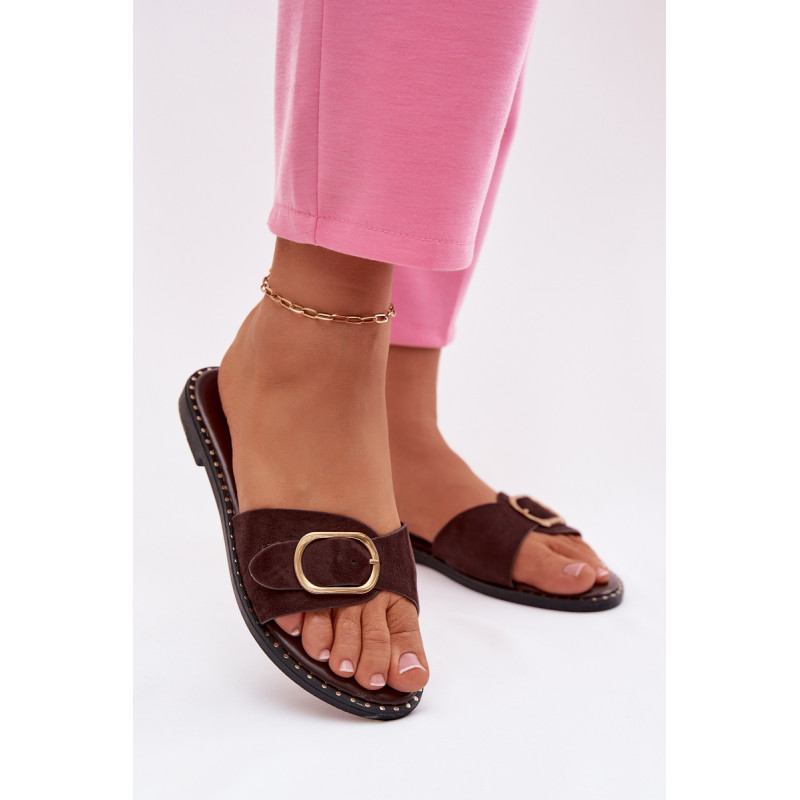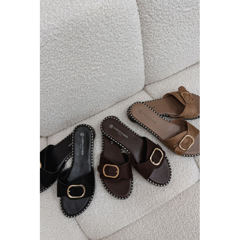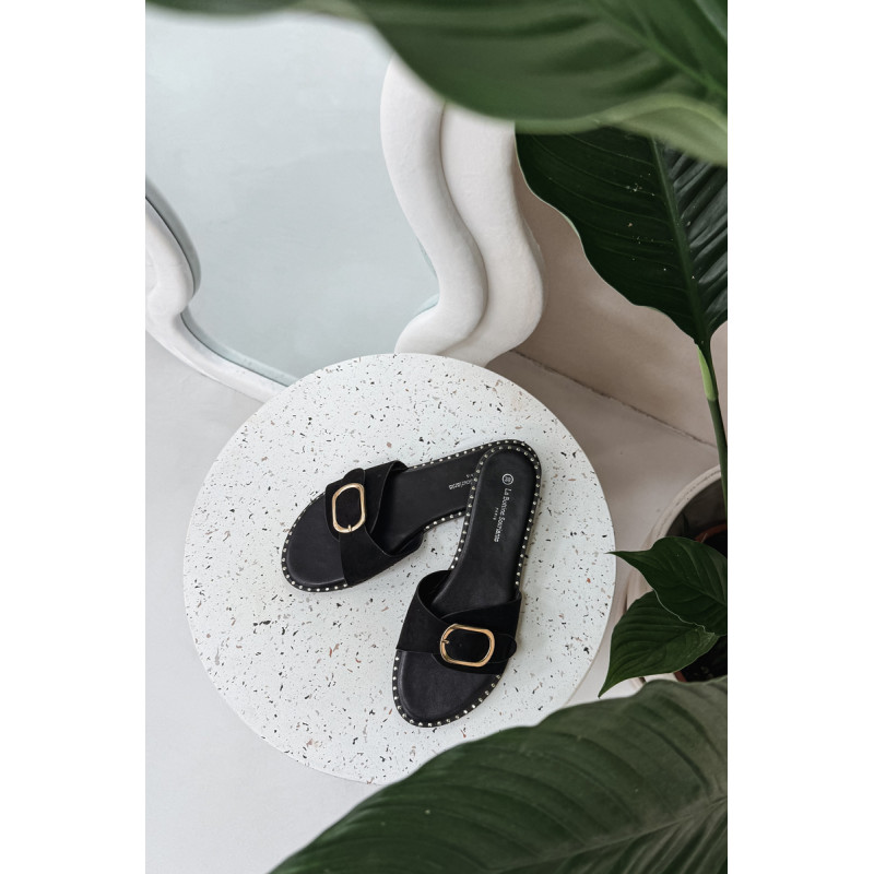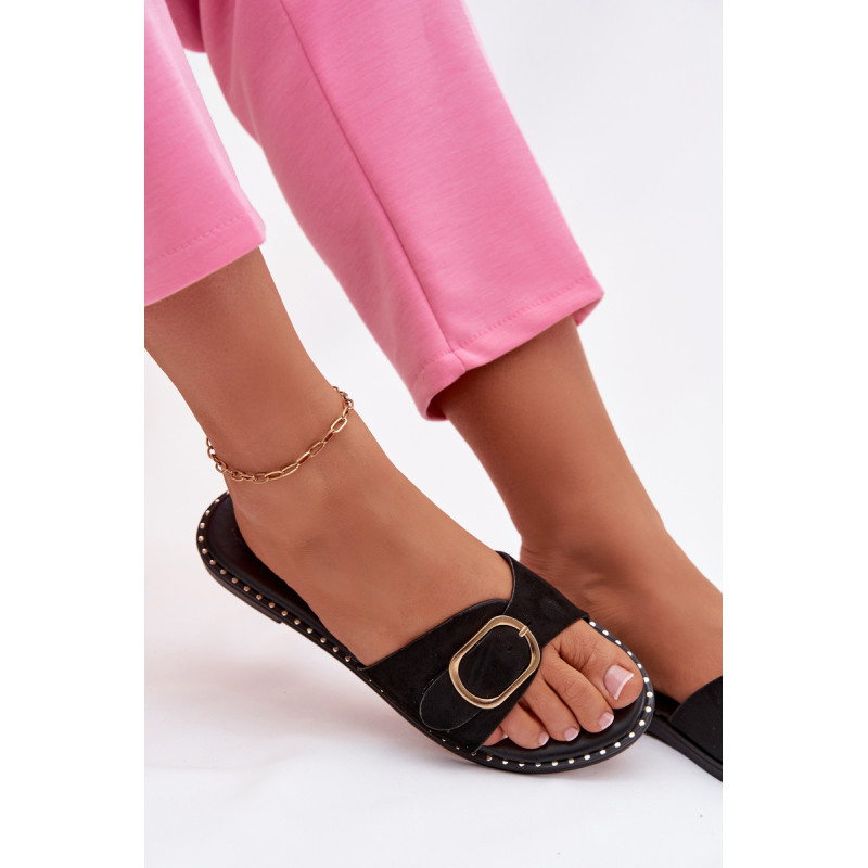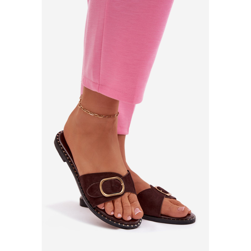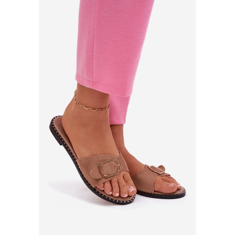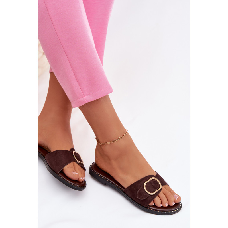 Stilingos moteriški basutės su plokščia padais yra patogus ir elegantiškas pasirinkimas šiltiems dienoms. Juostos, pagamintos iš eko zomšos, papuoštos auksine sagtimi, suteikia visumui rafinuotą charakterį ir yra įspūdingas akcentas. Paprastas dizainas leidžia šias basutes derinti tiek prie kasdieninių, tiek prie elegantiškesnių vasaros aprangos. Renkantis dydį, vadovaukitės dydžių lentele.