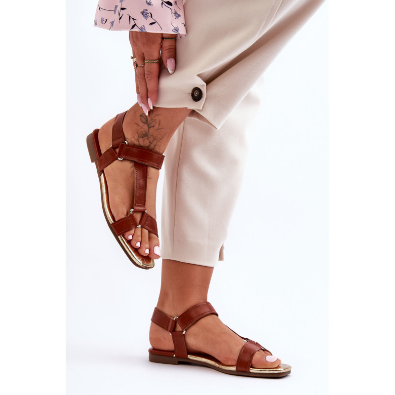 Klasikiniai moteriški sandalai buvo pagaminti iš ekologiškos odos. Šis modelis užsegamas velcro lipduku. Padas ir plokščias kulnas pagaminti iš guminės medžiagos, kuri suteikia stabilumo kiekviename žingsnyje. Puikiai tinka karštoms dienoms! Sandalai turi atvirą, kvadratinį nosį. Rinkdamiesi dydį, vadovaukitės dydžių lentele.