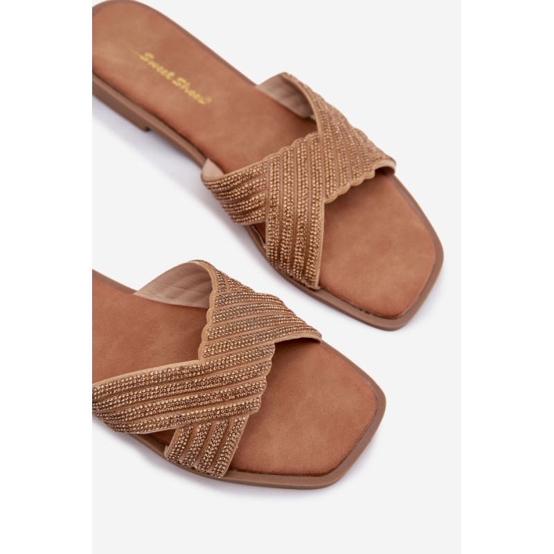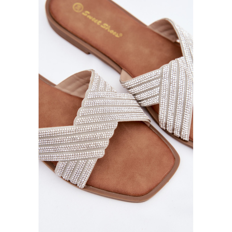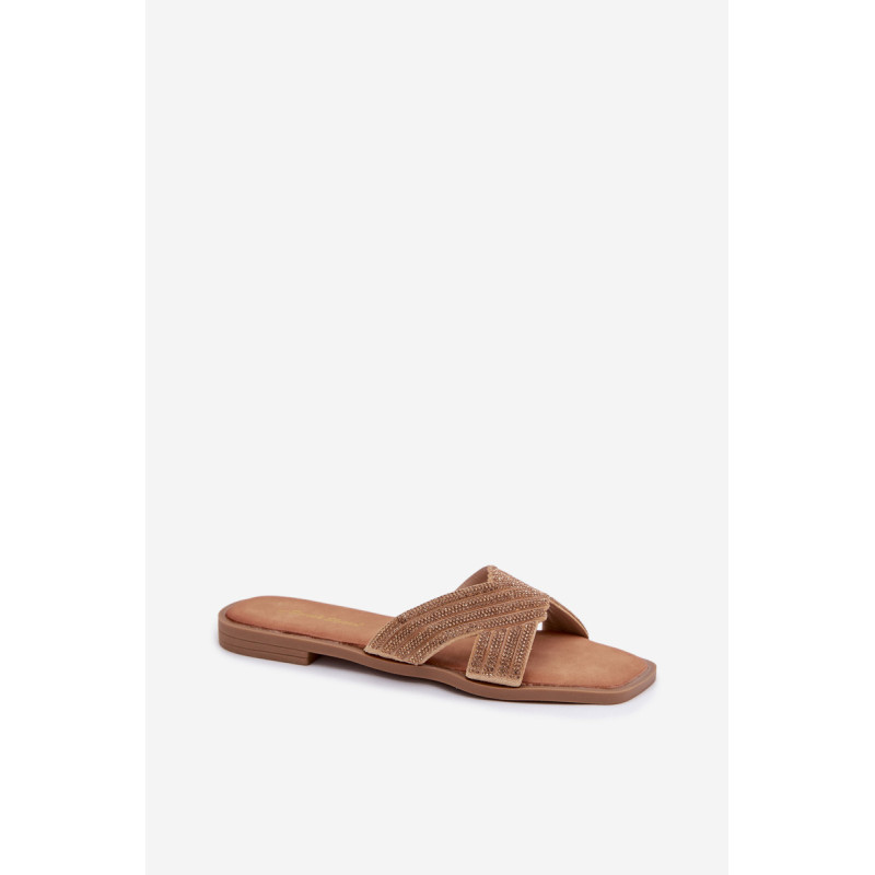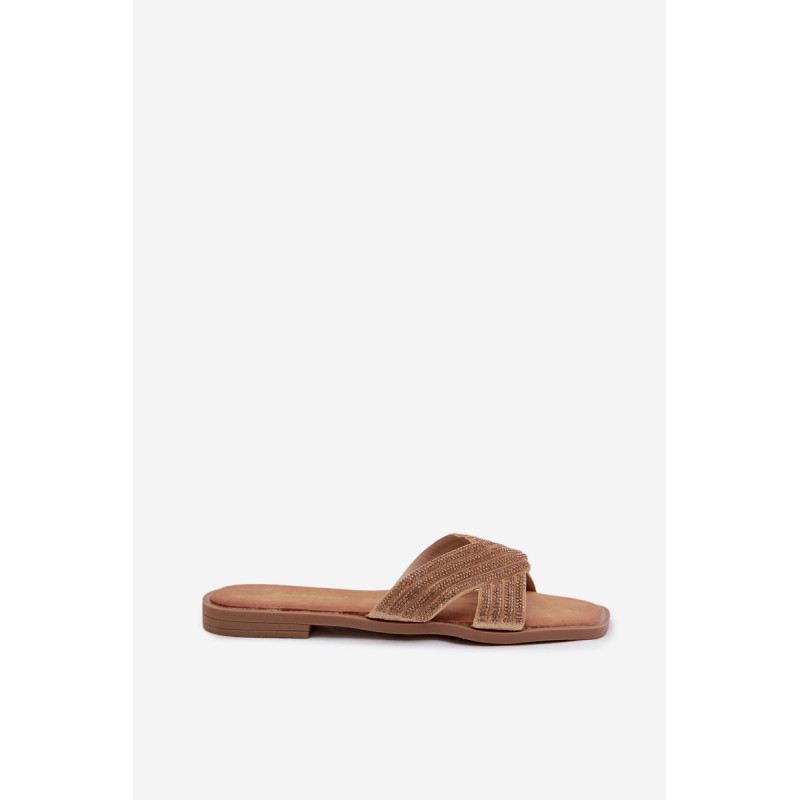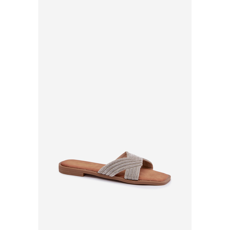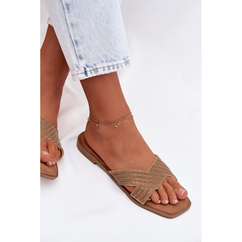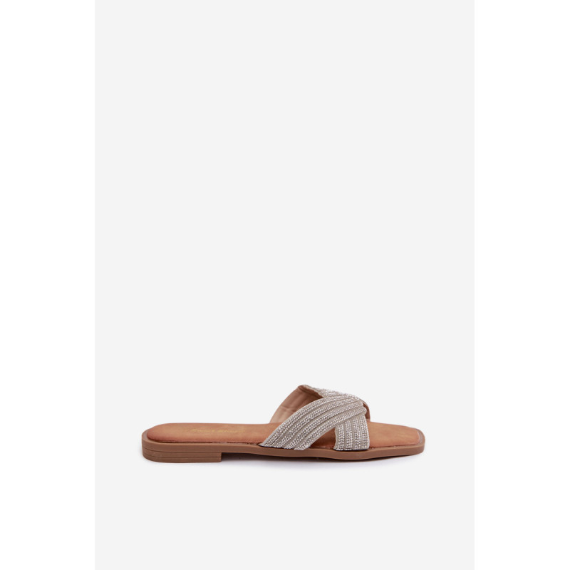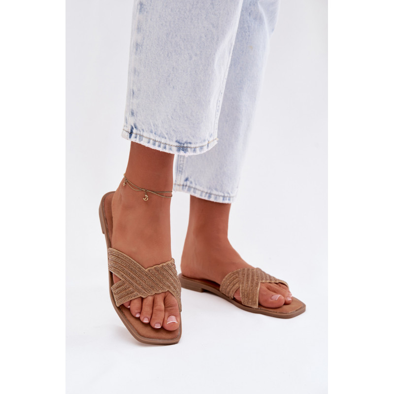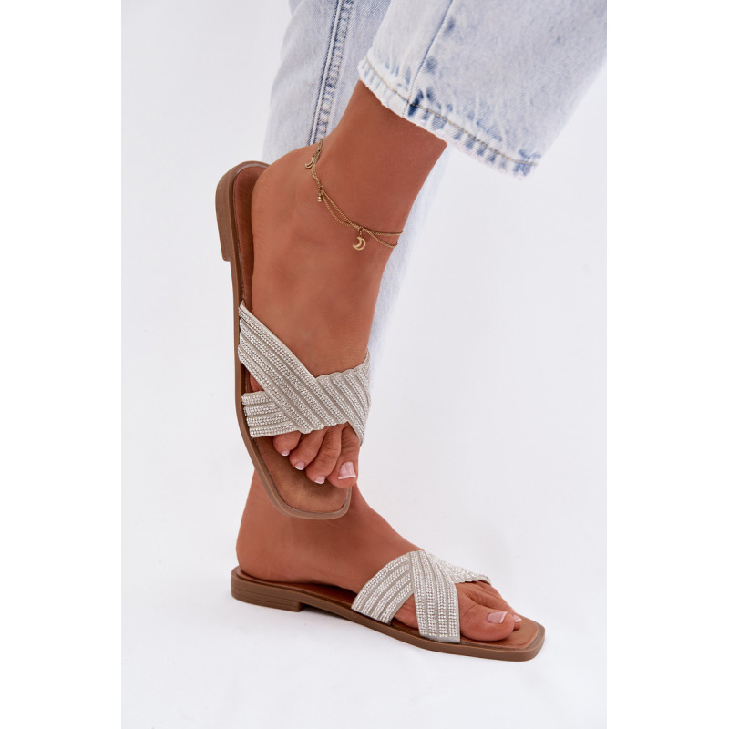 Moteriškos plokščios šlepetės yra stilingas pasirinkimas šiltiems orams. Juostos, papuoštos kristalais, patraukia dėmesį ir suteikia visumai subtilų žvilgesį. Paprastas dizainas užtikrina patogumą, todėl jos puikiai tinka tiek kasdieniams, tiek elegantiškesniems vasaros įvaizdžiams. Renkantis dydį, vadovaukitės dydžių lentele.