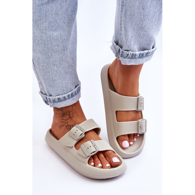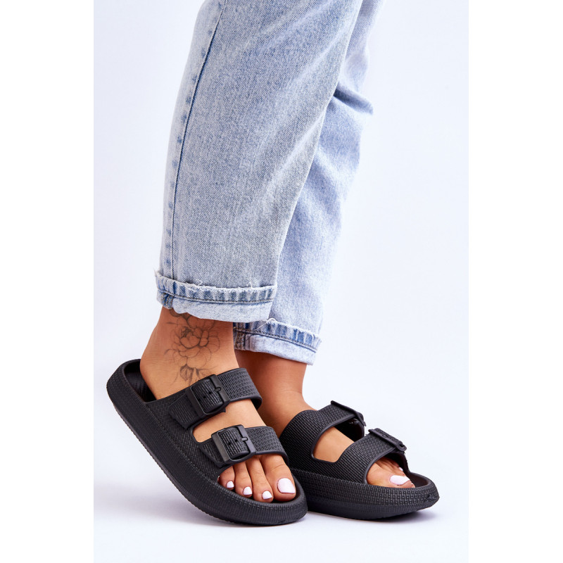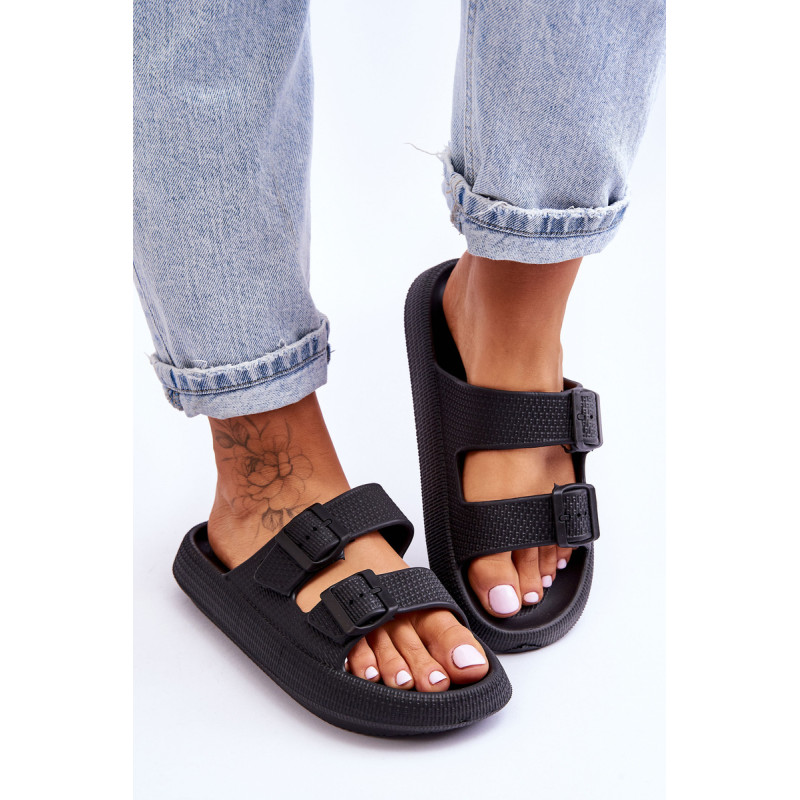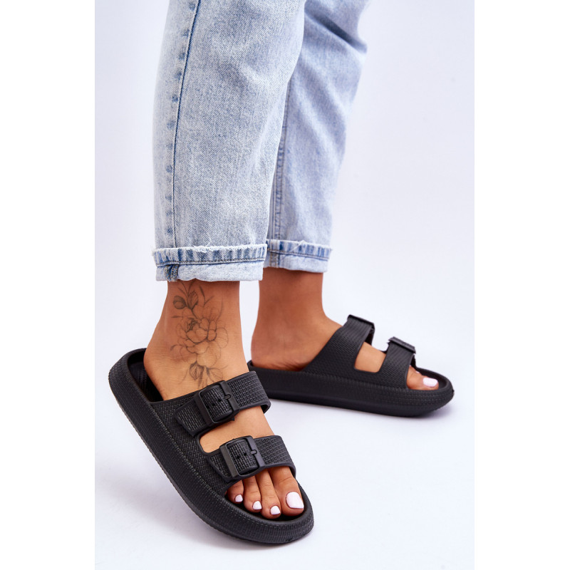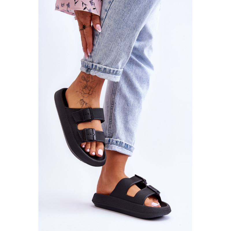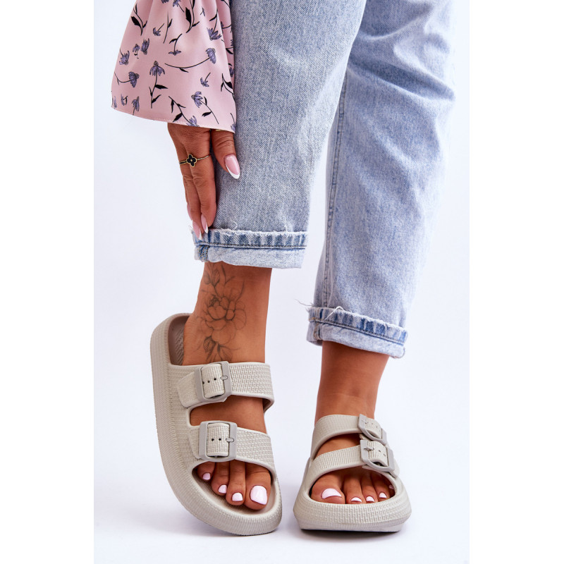 Klasikinės moteriškos šlepetės pagamintos tik iš porolono. Jie turi plastikines sagtis su reguliuojamais dirželiais. Šis modelis buvo sumontuotas ant masyvios platformos. Tobula avalynė vasaros sezonui. Šios šlepetės itin erdvios ir patogios. Jie taip pat puikiai tinka prie baseino ar paplūdimio. Rinkdamiesi dydį, žiūrėkite dydžių lentelę.