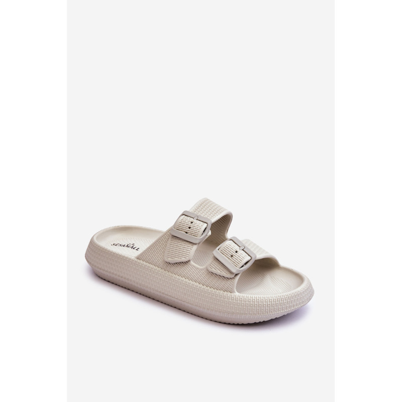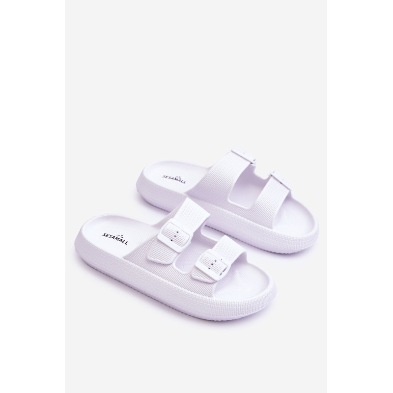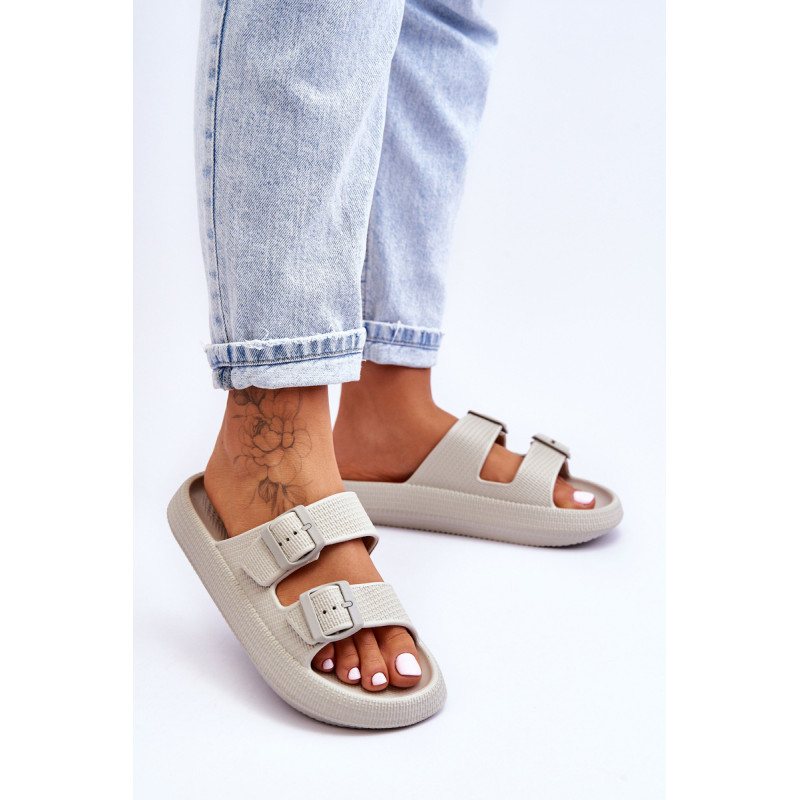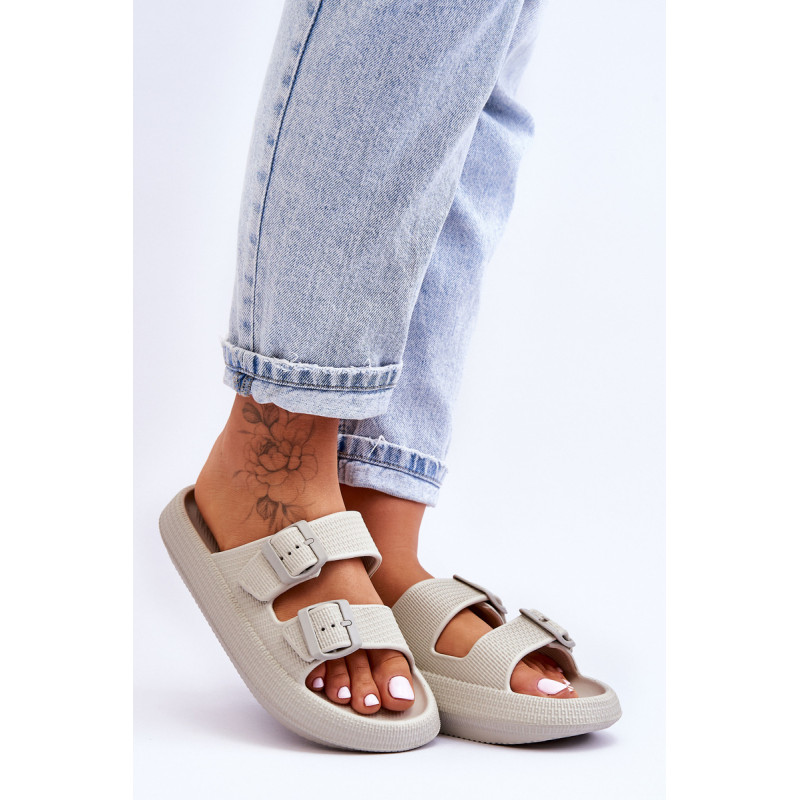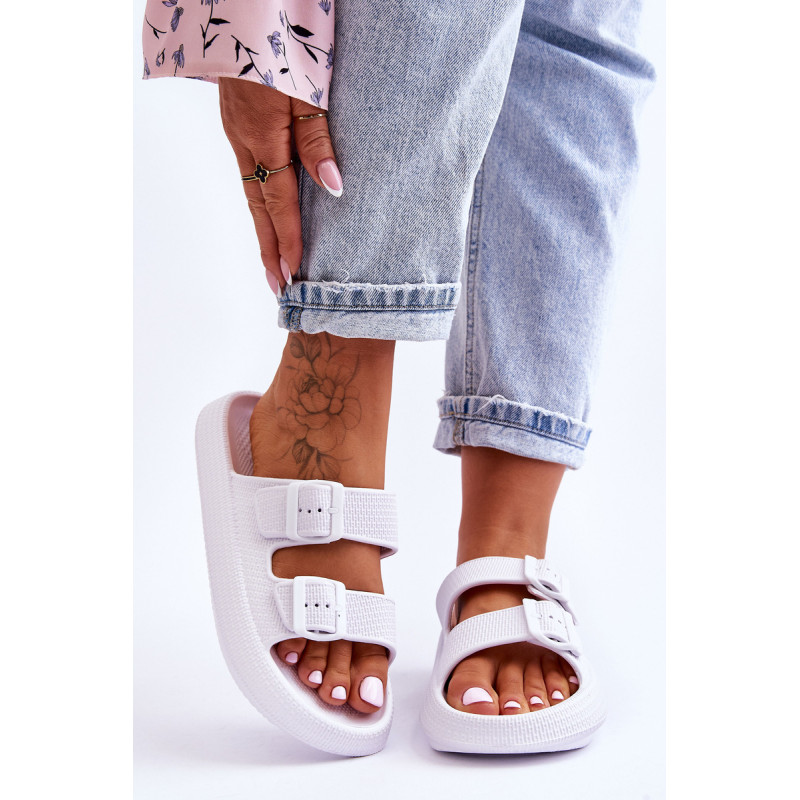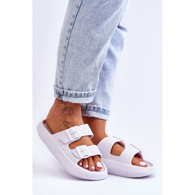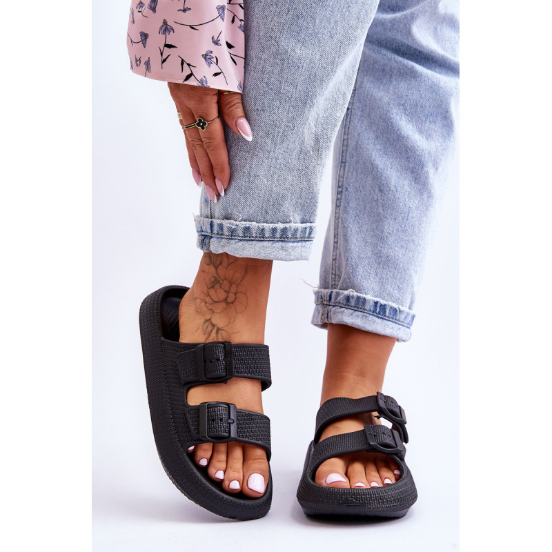 Klasikinės moteriškos šlepetės pagamintos tik iš porolono. Jie turi plastikines sagtis su reguliuojamais dirželiais. Šis modelis buvo sumontuotas ant masyvios platformos. Tobula avalynė vasaros sezonui. Šios šlepetės itin erdvios ir patogios. Jie taip pat puikiai tinka prie baseino ar paplūdimio. Rinkdamiesi dydį, žiūrėkite dydžių lentelę.