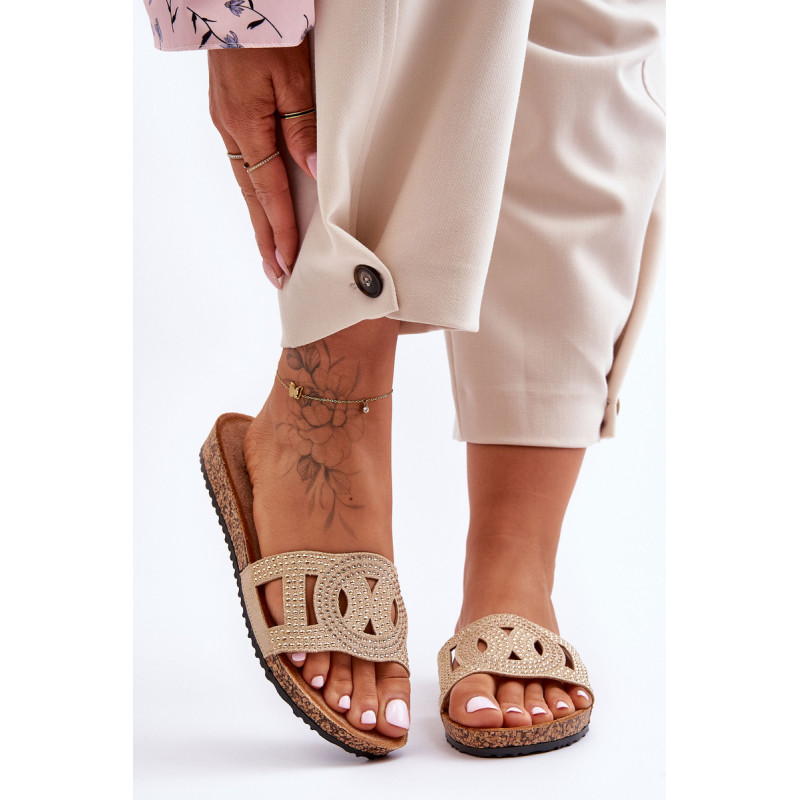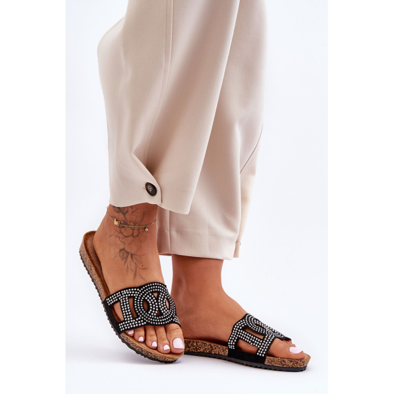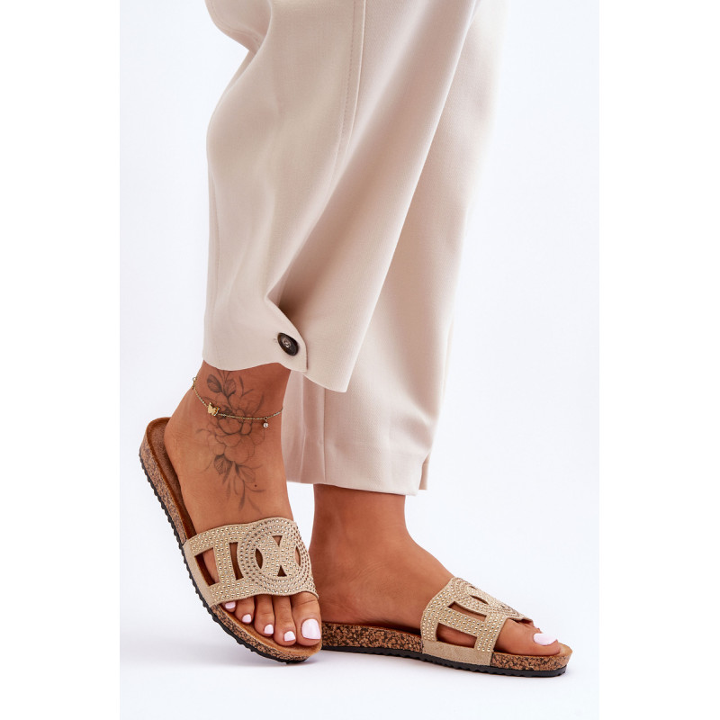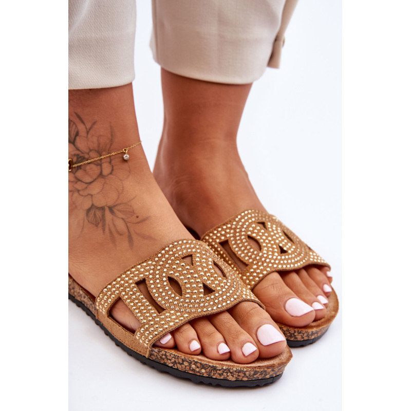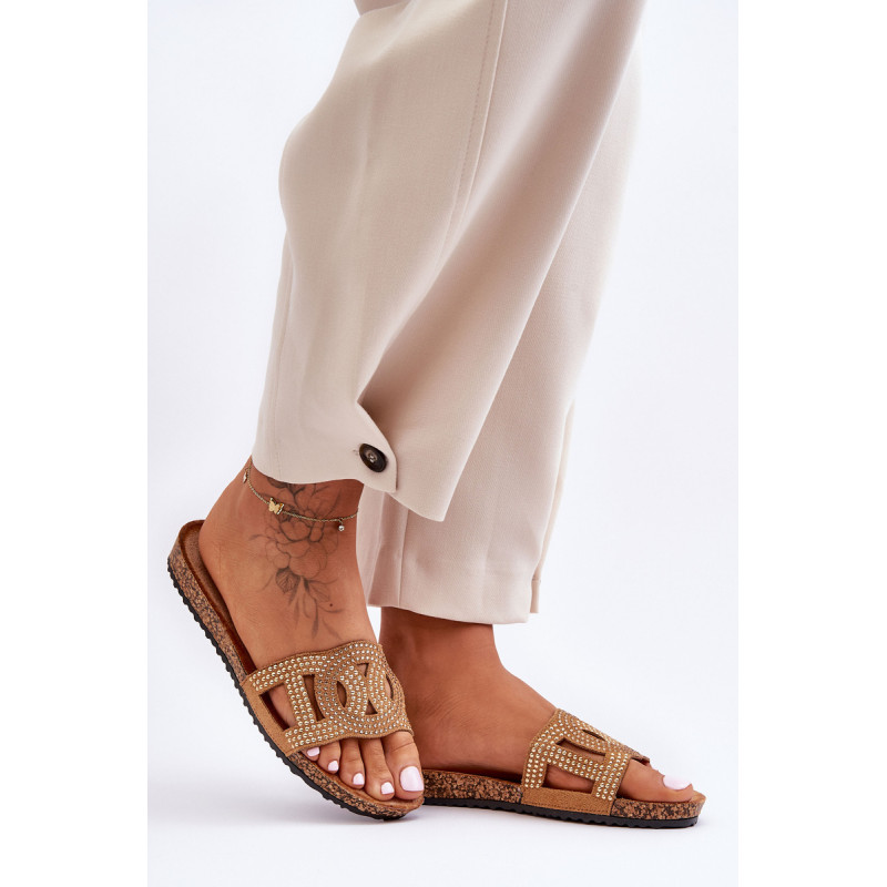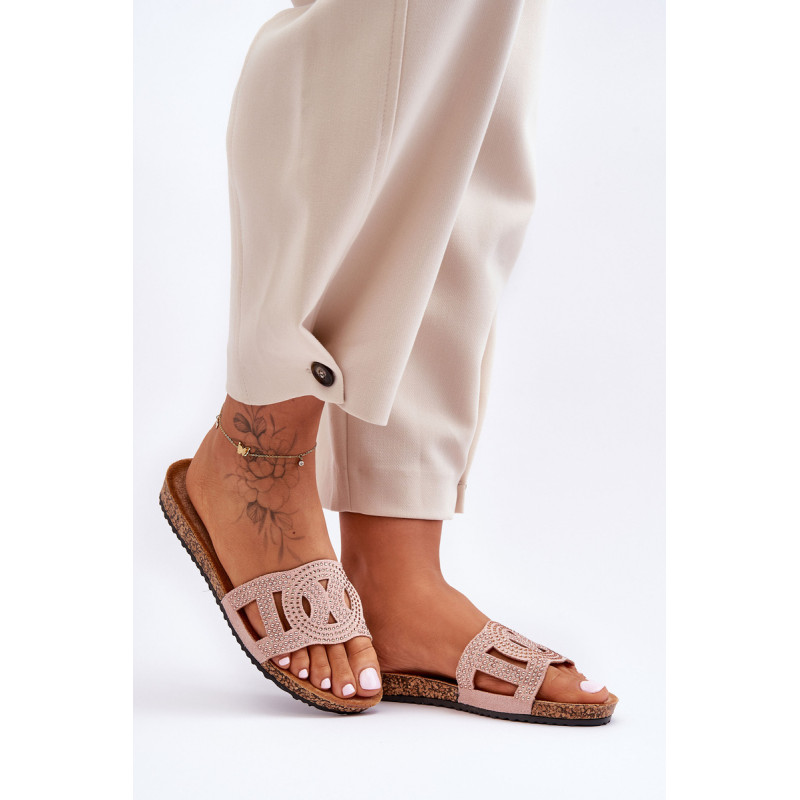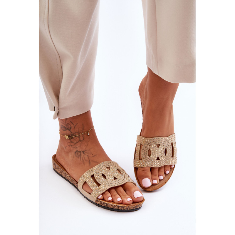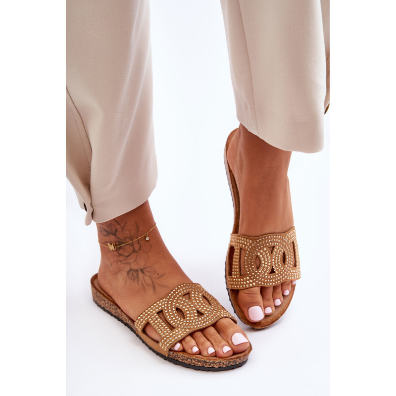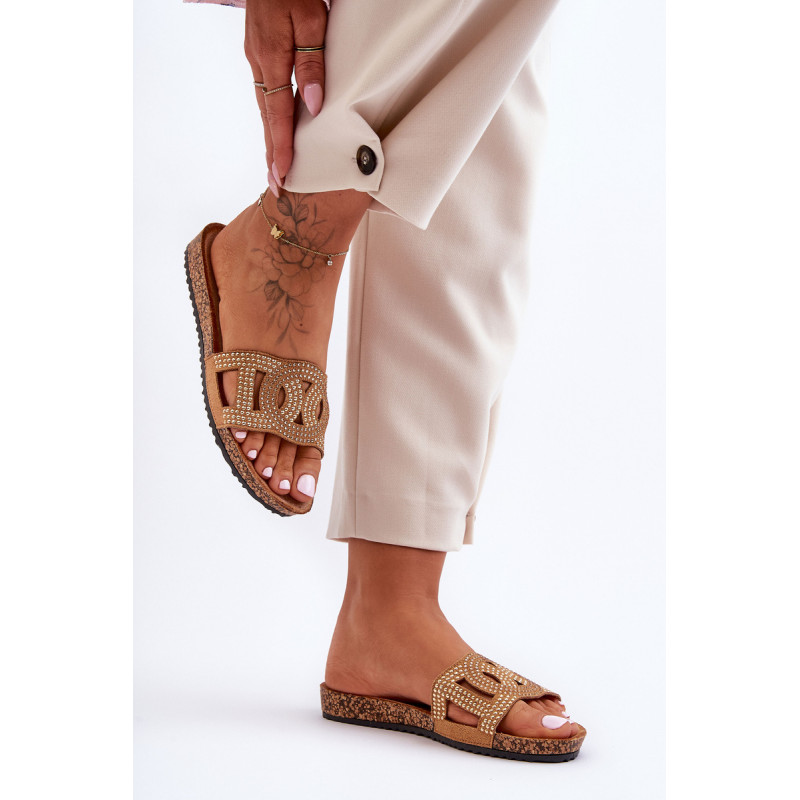 Klasikinės moteriškos šlepetės buvo pagamintos iš malonios liesti ekologiškos zomšos ir papuoštos madingomis smeigėmis priekyje. Šlepetės puikiai tiks vasaros pasivaikščiojimams ar apsipirkimo kelionėms. Profiliuotas vidpadis taip pat pagamintas iš ekologiškos zomšos. Šlepetės yra ant kamštinio pado. Renkantis dydį, žr. dydžių lentelę.
