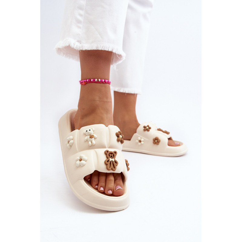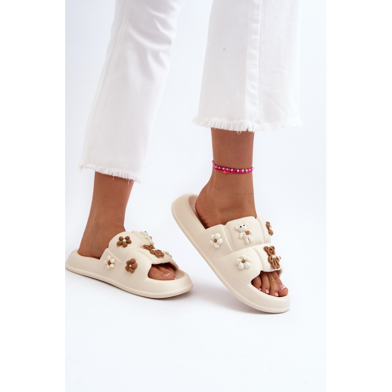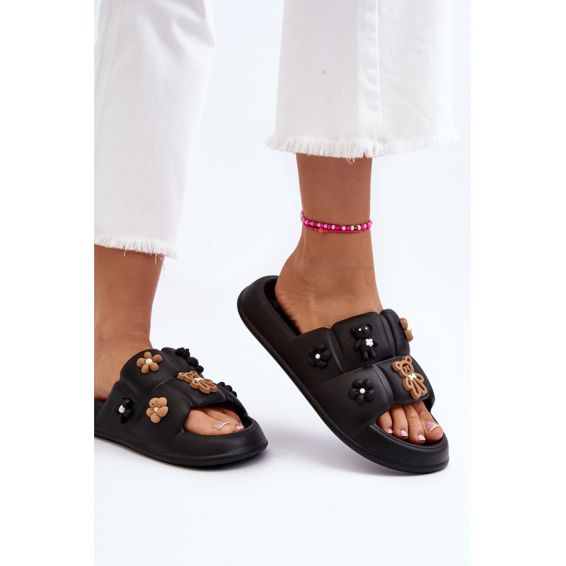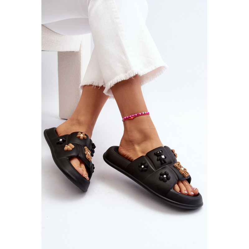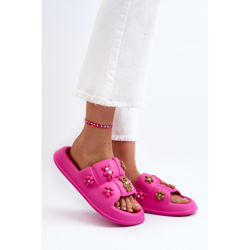Žavios moteriškos šlepetės ant plataus dirželio. Pagaminta iš putplasčio medžiagos. Šio modelio priekyje yra akį traukiančių dekoracijų. Puikiai tinka pasivaikščiojimams paplūdimyje ar tingioms popietėms terasoje. Jūs tikrai turite juos turėti! Rinkdamiesi dydį, žiūrėkite dydžių lentelę.