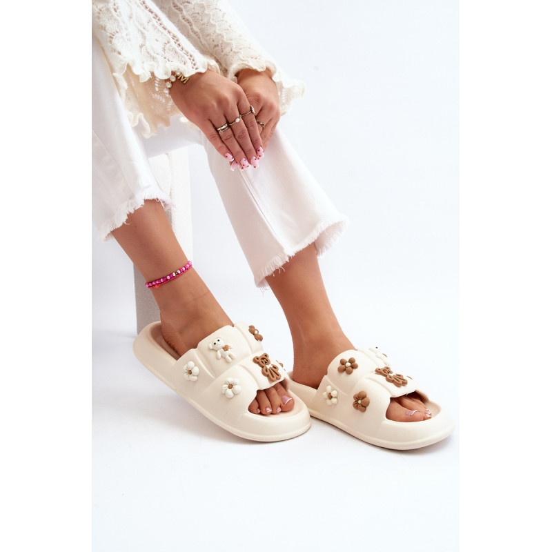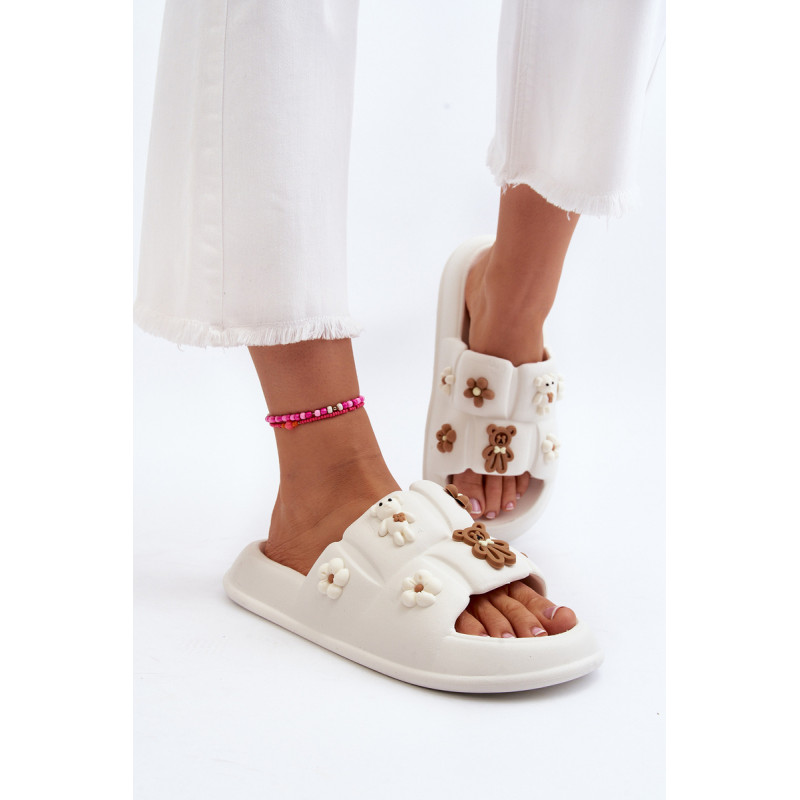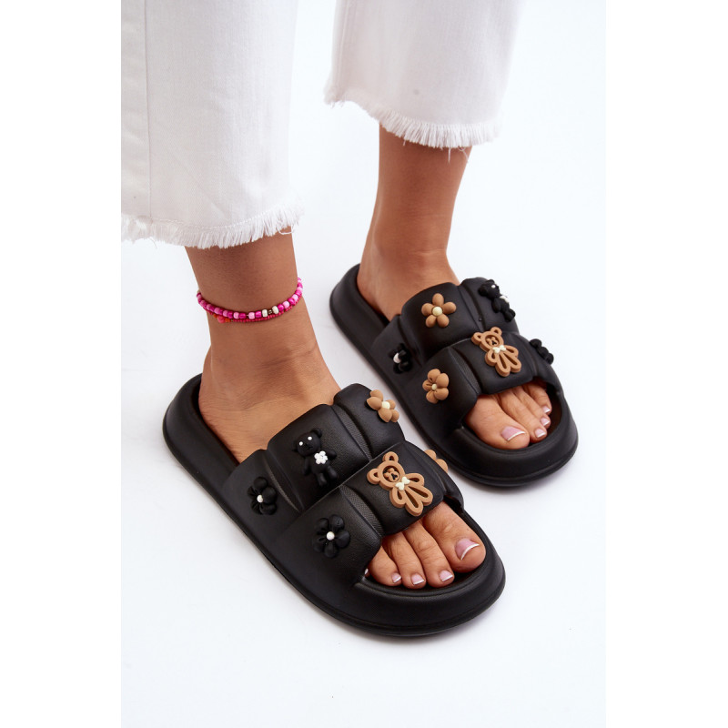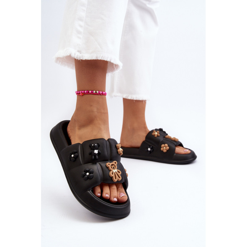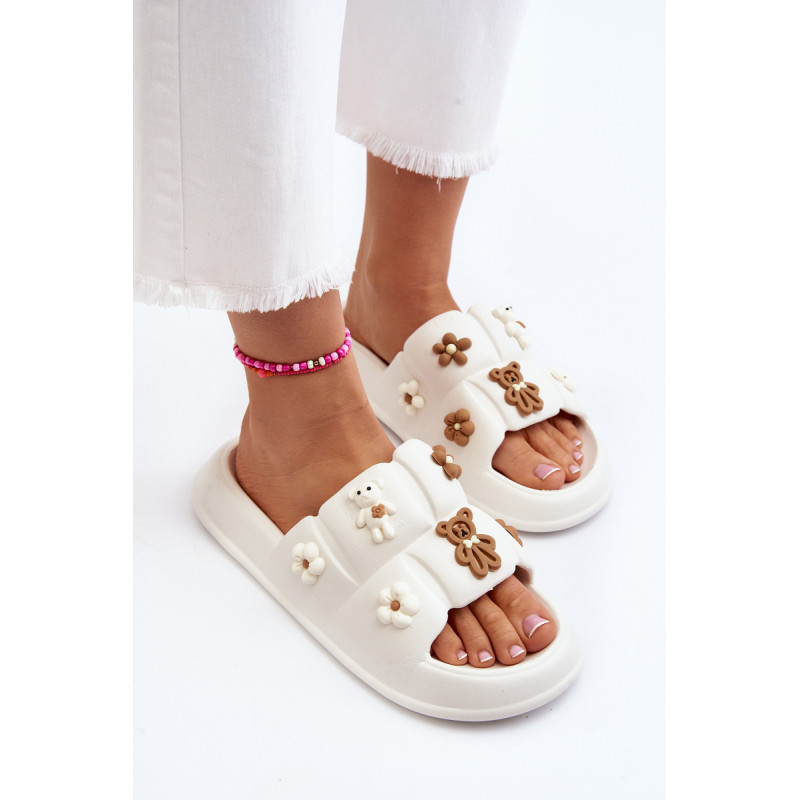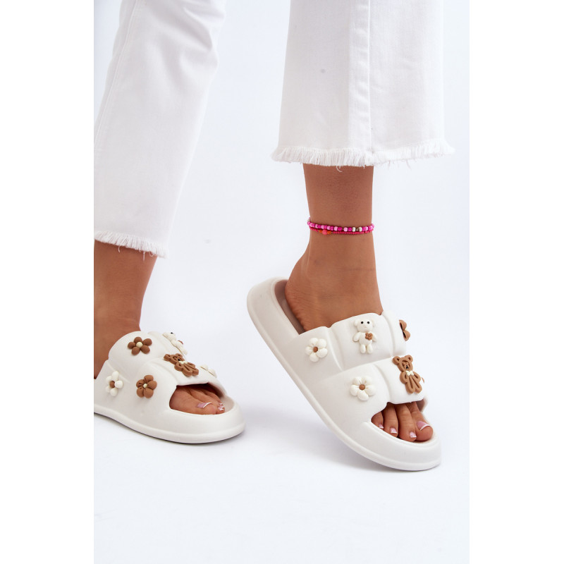 Žavios moteriškos šlepetės ant plataus dirželio. Pagaminta iš putplasčio medžiagos. Šio modelio priekyje yra akį traukiančių dekoracijų. Puikiai tinka pasivaikščiojimams paplūdimyje ar tingioms popietėms terasoje. Jūs tikrai turite juos turėti! Rinkdamiesi dydį, žiūrėkite dydžių lentelę.
