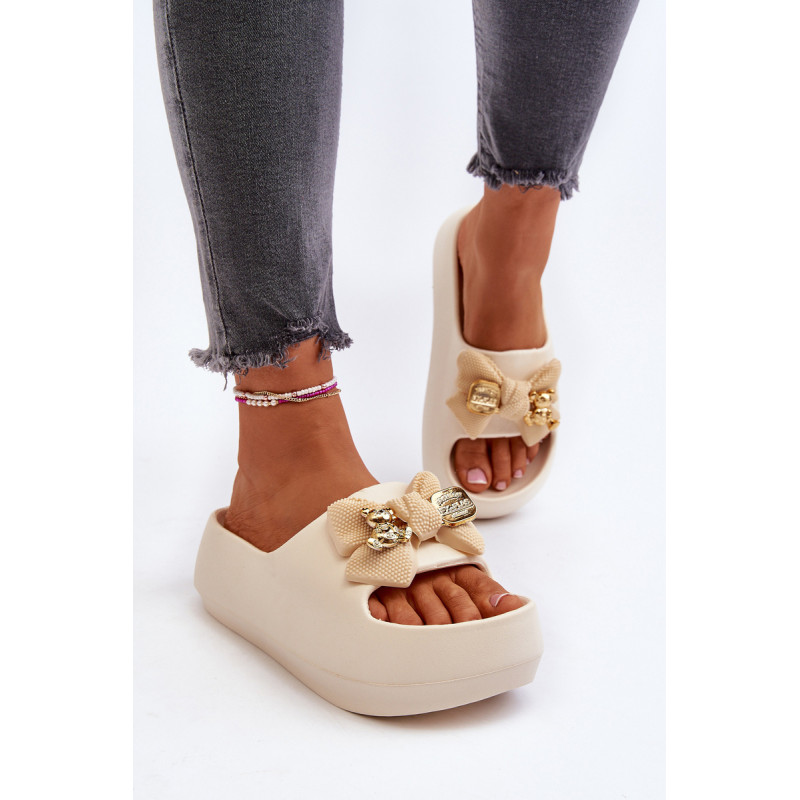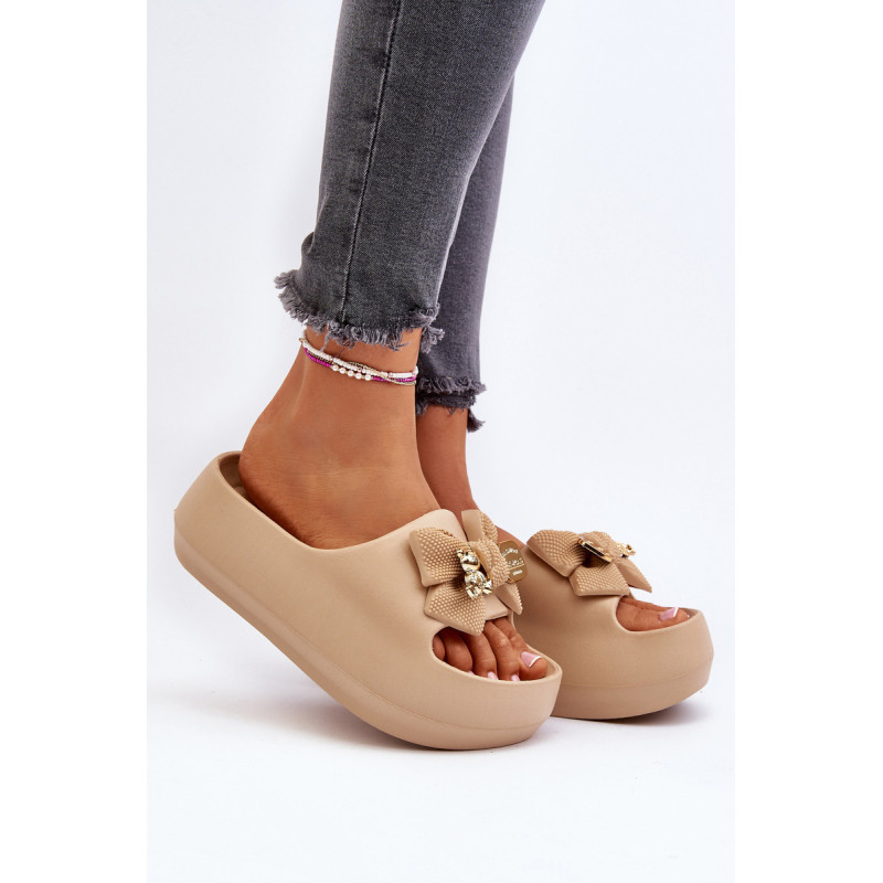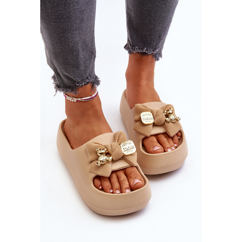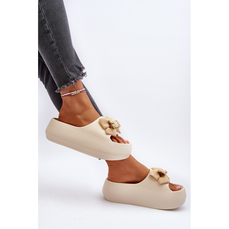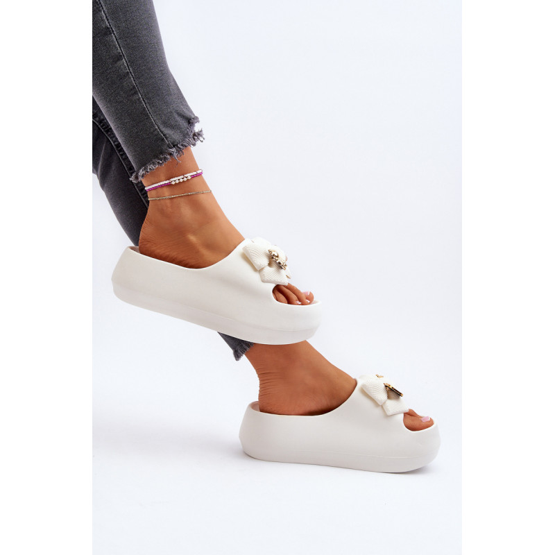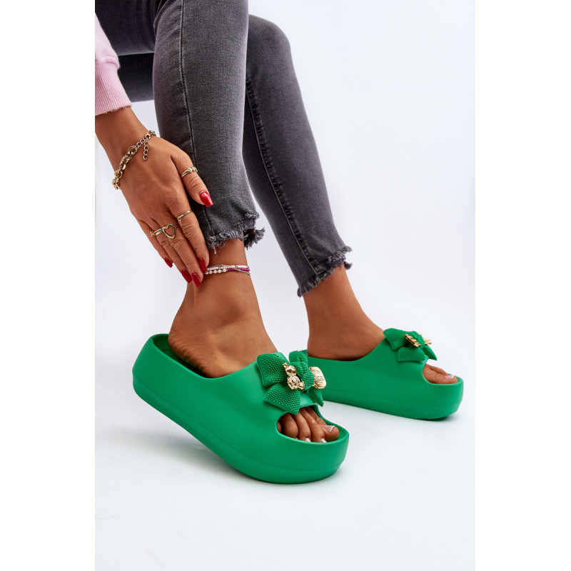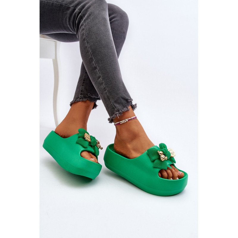 Šios lengvos moteriškos šlepetės yra puikus pasirinkimas šiltomis dienomis. Pagaminti iš putplasčio medžiagos, suteikia komforto ir patogumo dėvint. Masyvus padas garantuoja stabilumą, o dekoratyvinis lankelis su užsegimo imitacija suteikia jiems žavesio ir originalumo. Jūs tikrai turite juos turėti! Rinkdamiesi dydį žiūrėkite dydžių lentelę.