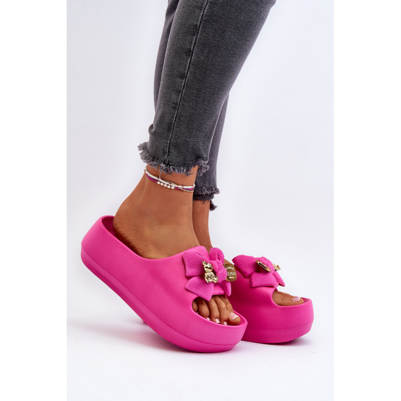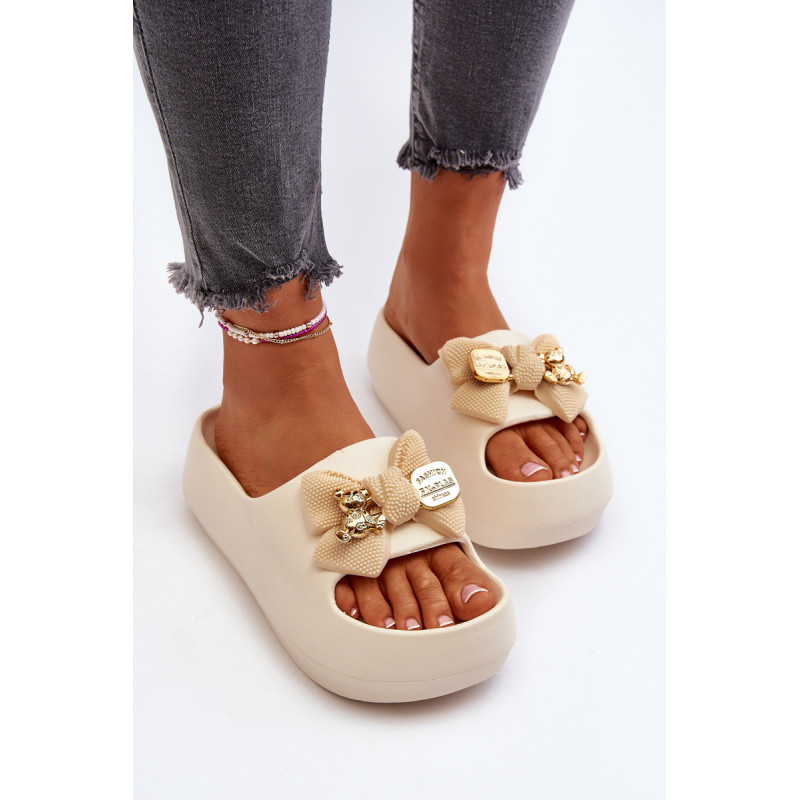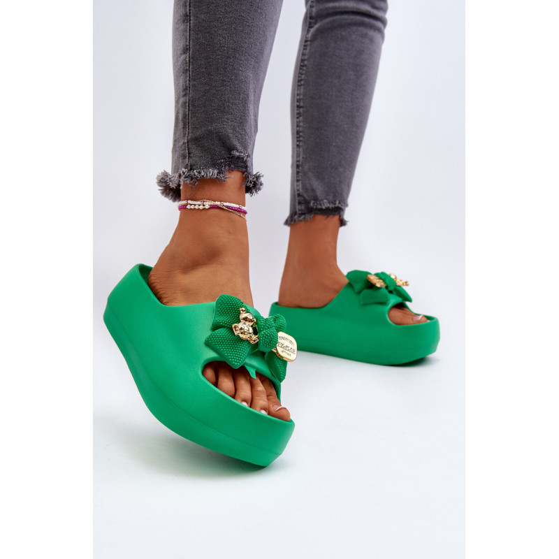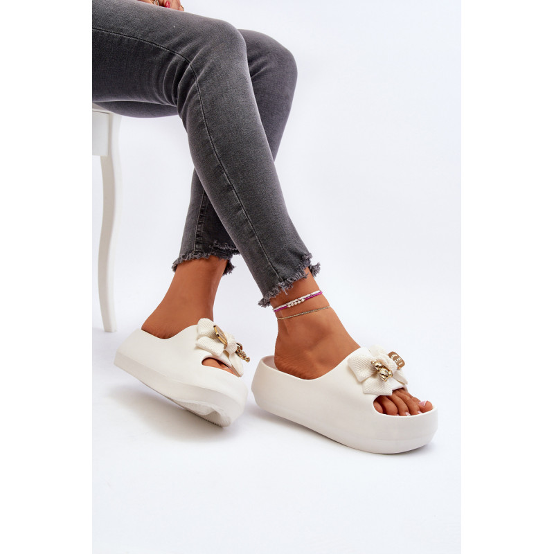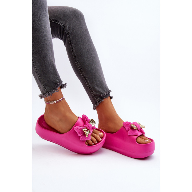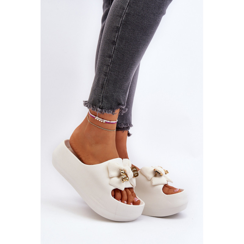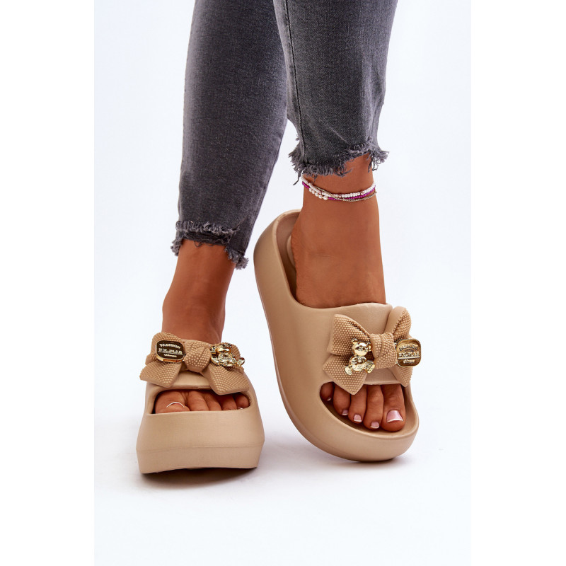 Šios lengvos moteriškos šlepetės yra puikus pasirinkimas šiltomis dienomis. Pagaminti iš putplasčio medžiagos, suteikia komforto ir patogumo dėvint. Masyvus padas garantuoja stabilumą, o dekoratyvinis lankelis su užsegimo imitacija suteikia jiems žavesio ir originalumo. Jūs tikrai turite juos turėti! Rinkdamiesi dydį žiūrėkite dydžių lentelę.
