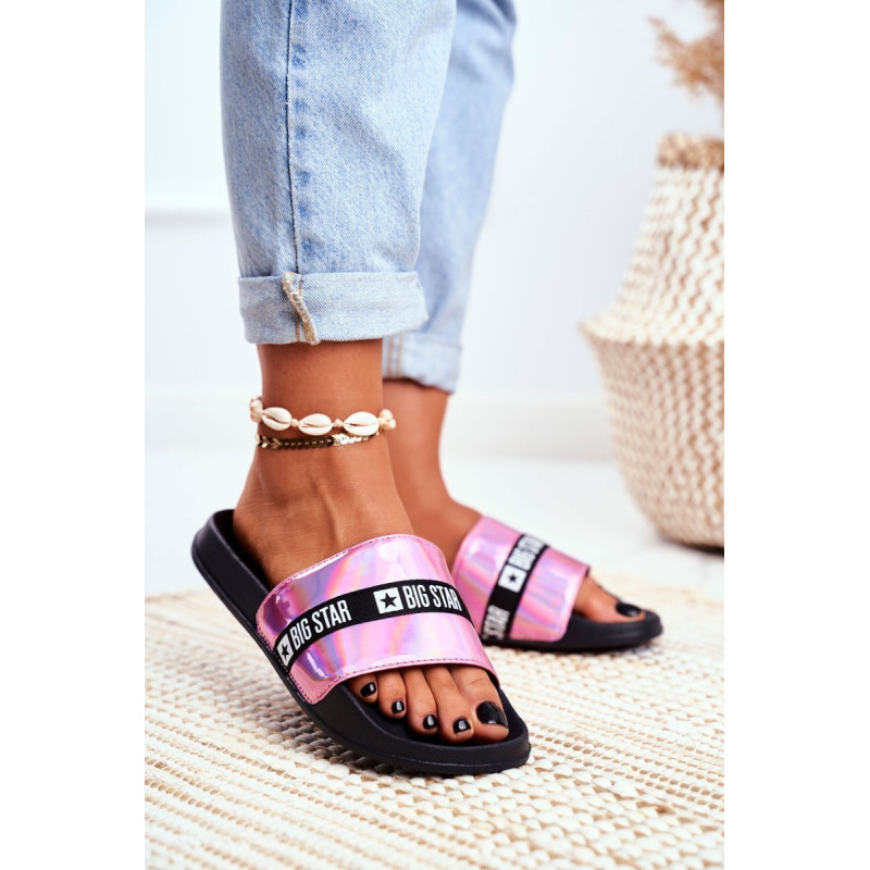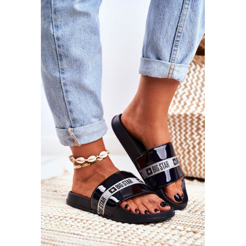 Vasarą nėra nieko patogiau nei šlepetės! Šį kartą modelis, kuriame elegancija derinama su sportišku stiliumi. Viršutinė batų dalis pagaminta iš lakinės odos, kuri gražiai šviečia vasaros saulėje! Be to, jį puošia sidabrinis dirželis su juodu Big Star logotipu. Šis derinys itin intriguojantis ir tikrai pritrauks dėmesį. Šlepetės tiks ir prie kelnių, ir prie suknelių! Išsaugokite savo stilių su naujausiais garsios kompanijos šlepetėmis. Nelaukite, patikrinkite kitus BigStar atvartų modelius mūsų parduotuvėje! Rinkdamiesi dydį vadovaukitės turima dydžių lentele užvesdami pelės žymeklį ant nurodyto dydžio arba spustelėdami ant jo.