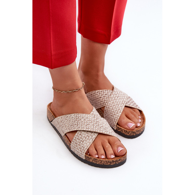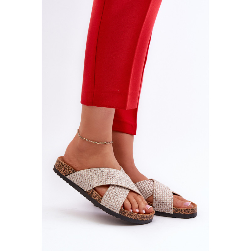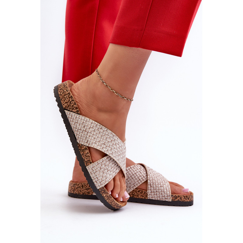 Moteriškos šlepetės ant kamštinės platformos derina stilių ir patogumą. Jų priekyje yra du persipynę dirželiai, kurie suteikia originalumo ir žavesio. Platforma suteikia stabilumo ir lengvumo dėvint, idealiai tinka vasaros dienoms. Šios šlepetės yra ne tik madingas vasaros aprangos aksesuaras, bet ir praktiška avalynė kasdieniam naudojimui.