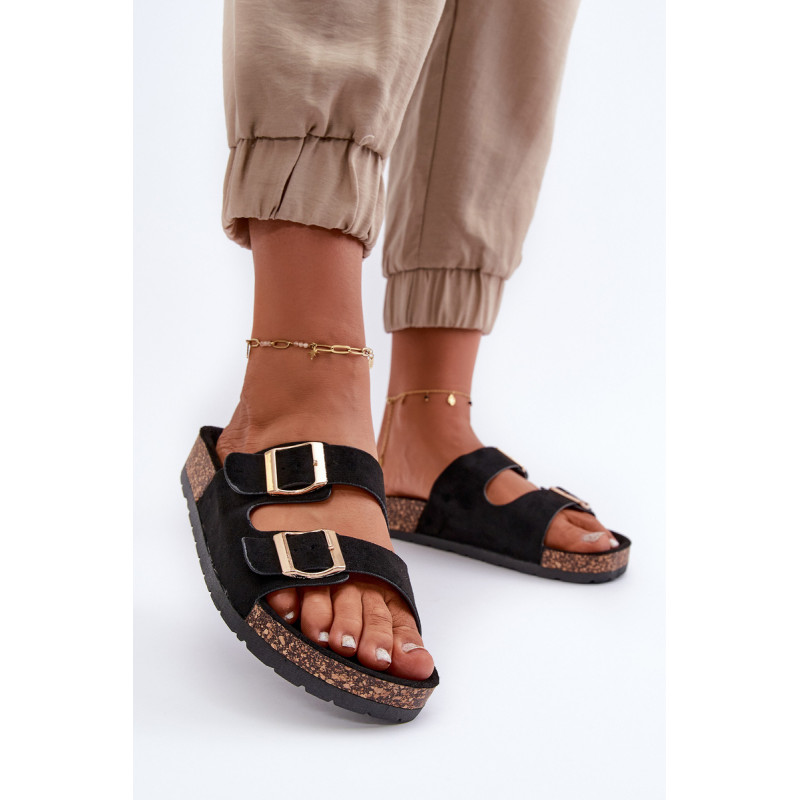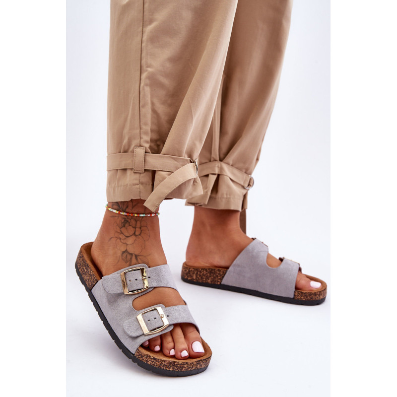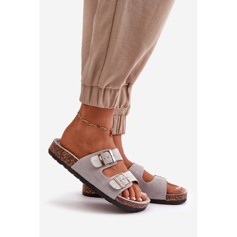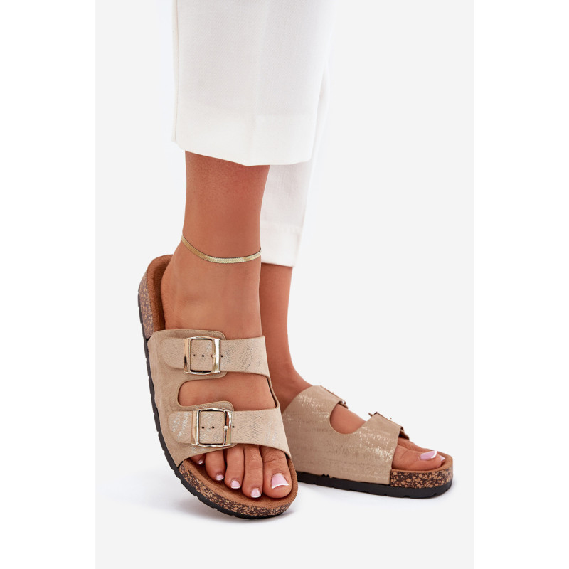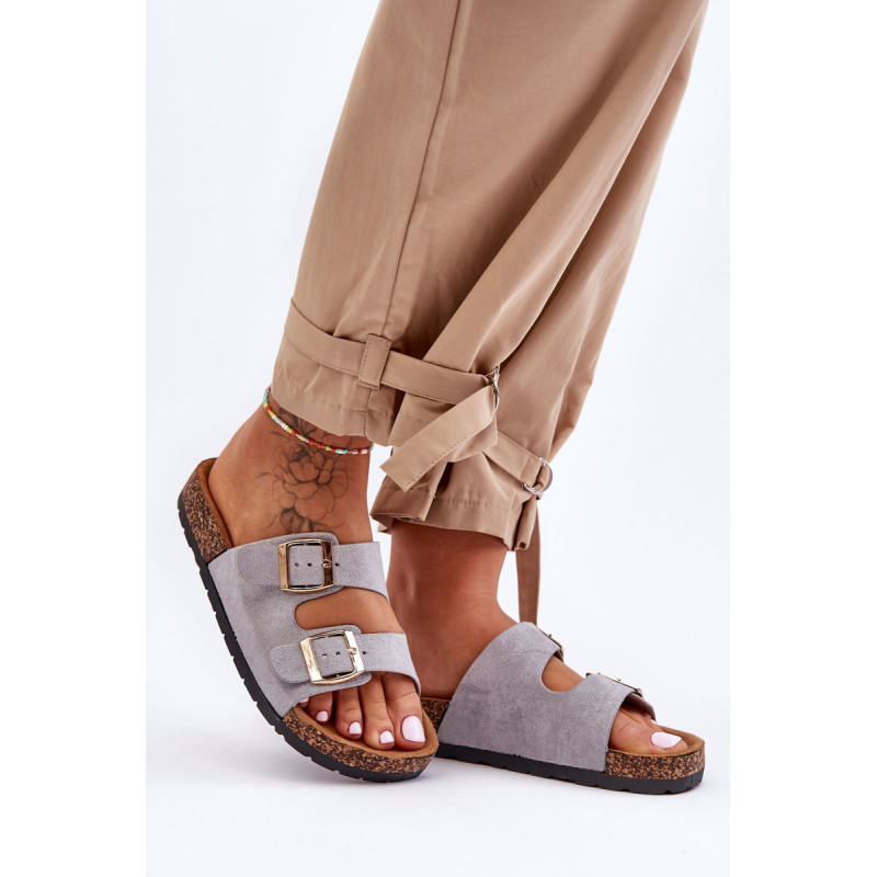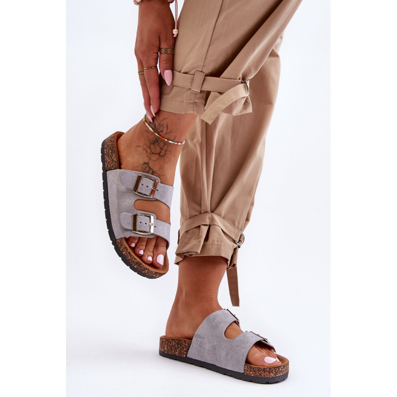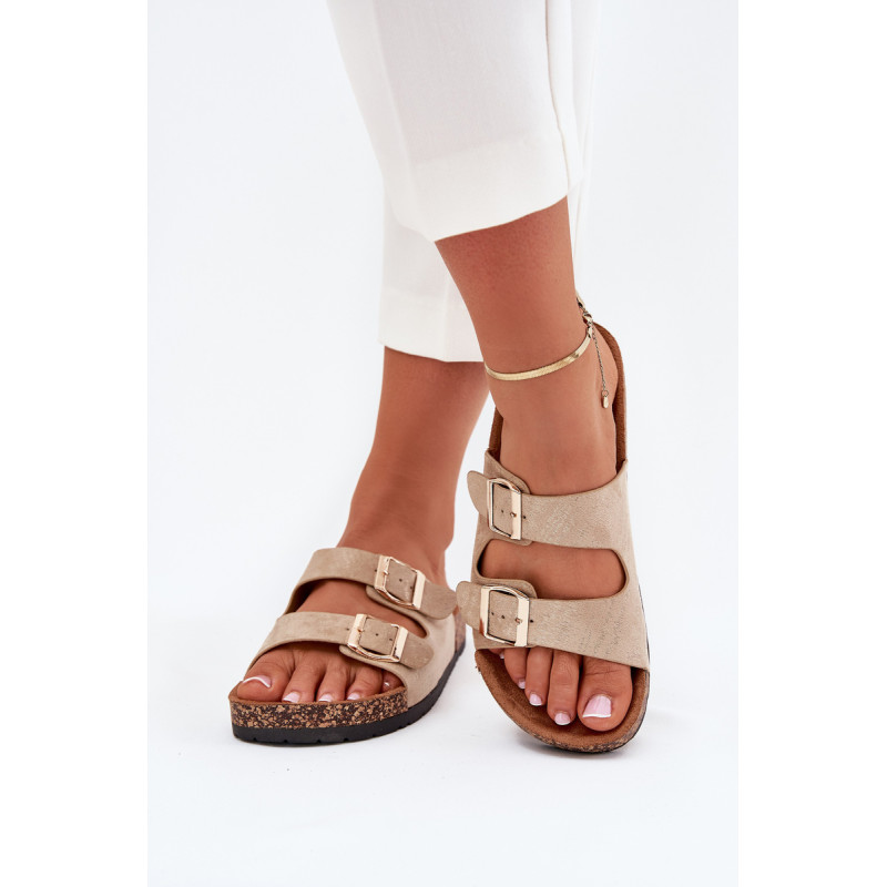Šie sandalai turi du plačius dirželius su reguliuojamomis sagtimis. Puikiai tinka vasaros pasivaikščiojimams ir kasdieniams apsipirkimams. Patogumo ir patogumo suteiks profiliuotas vidpadis iš ekologiškos zomšos. Padas pagamintas iš sintetinės medžiagos. Šie sandalai leis jūsų kojoms pailsėti ir atsipalaiduoti. Rinkdamiesi dydį žiūrėkite dydžių lentelę.