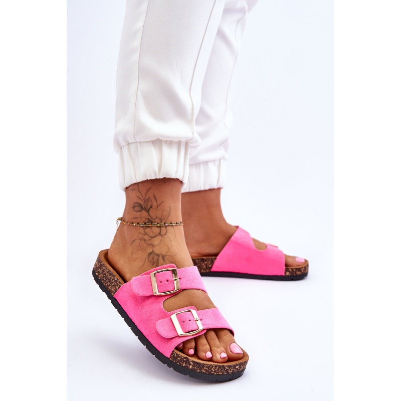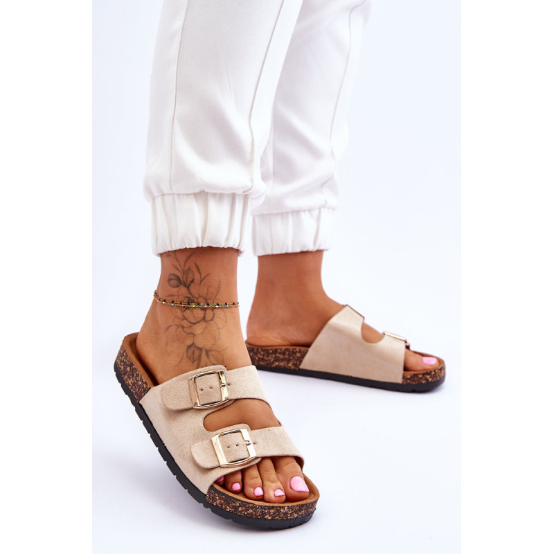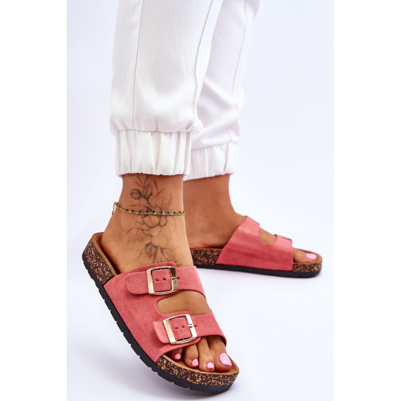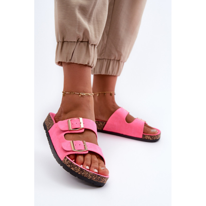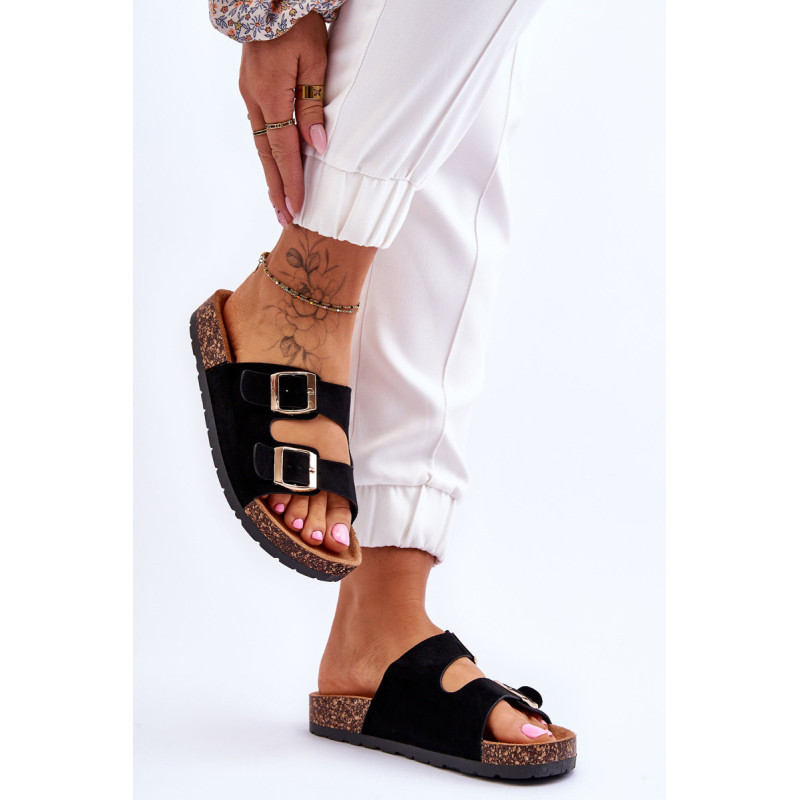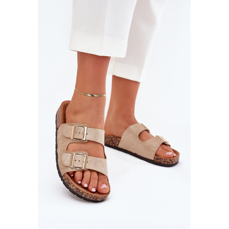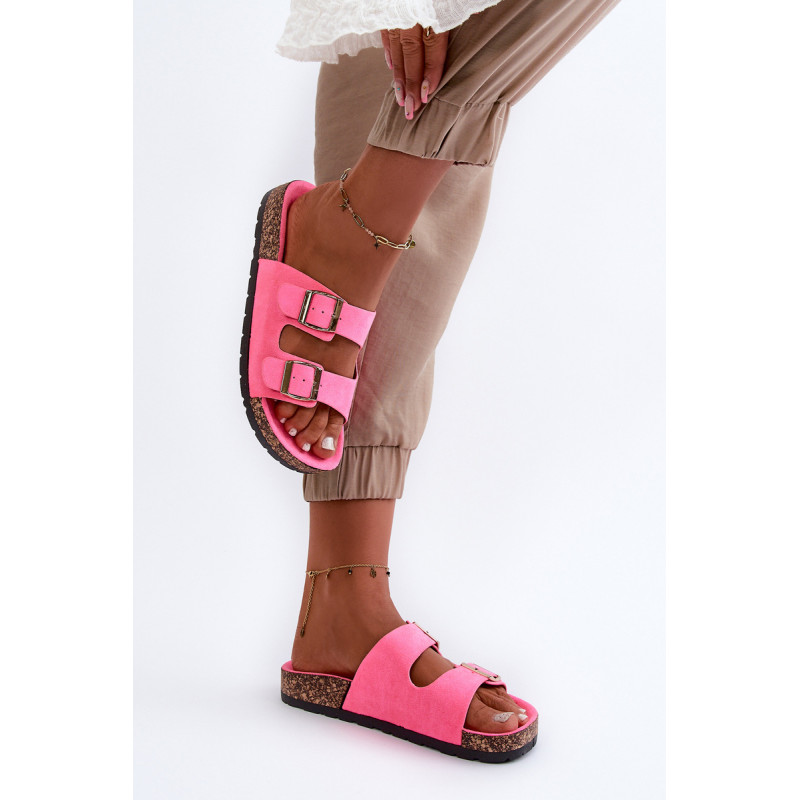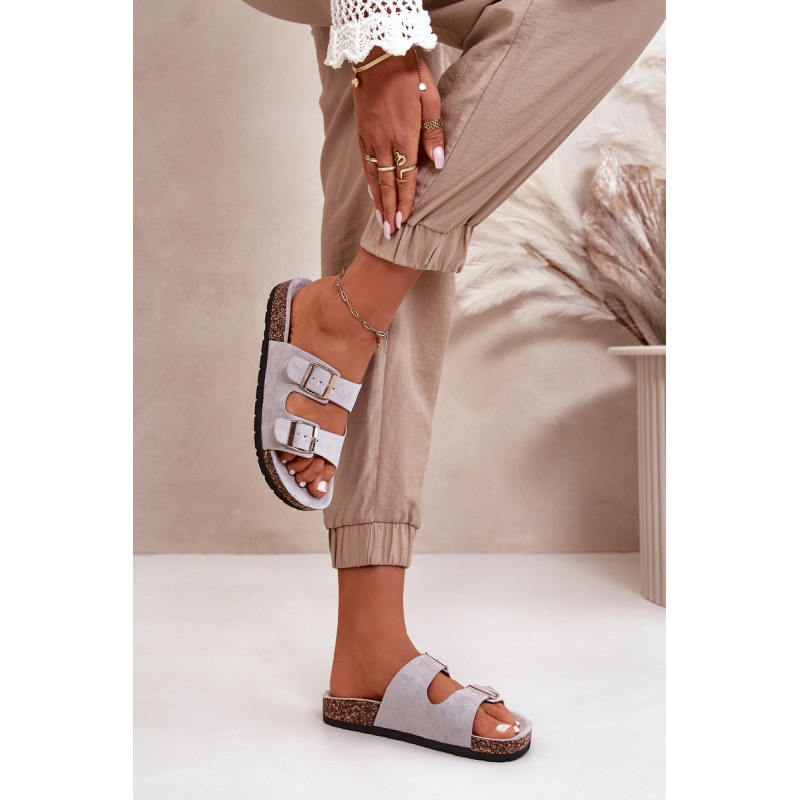 Šie sandalai turi du plačius dirželius su reguliuojamomis sagtimis. Puikiai tinka vasaros pasivaikščiojimams ir kasdieniams apsipirkimams. Patogumo ir patogumo suteiks profiliuotas vidpadis iš ekologiškos zomšos. Padas pagamintas iš sintetinės medžiagos. Šie sandalai leis jūsų kojoms pailsėti ir atsipalaiduoti. Rinkdamiesi dydį žiūrėkite dydžių lentelę.
