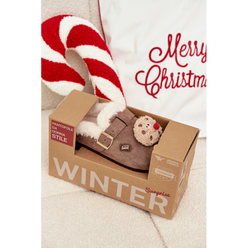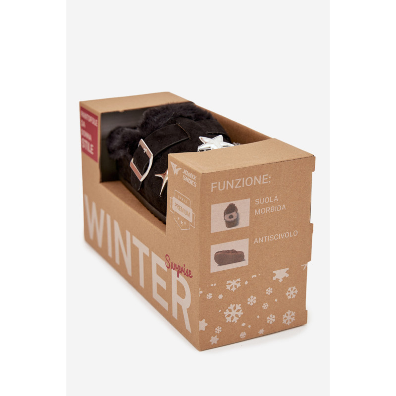 Moteriškos šlepetes, pagamintas iš ekologiško zomšos, yra jaukus ir stilingas modelis, idealiai tinkantis vėsesnėmis dienomis. Minkšta audinė viduje užtikrina šilumą ir komfortą dėvint. Žavingi ženkliukai suteikia jiems išskirtinį charakterį, o dirželiai su sagtimi tarnauja tiek kaip dekoratyvinis akcentas, tiek kaip elementas, gerinantis pritaikymą. Tai puikus pasirinkimas namų poilsiui — šiltos, patogios ir pilnos žavesio. Taip pat puikus dovanos pasirinkimas. Renkantis dydį, vadovaukitės dydžių lentele. Renkantis dydį, vadovaukitės dydžių lentele.