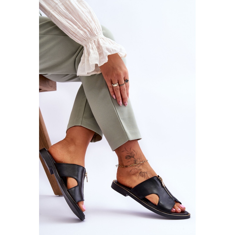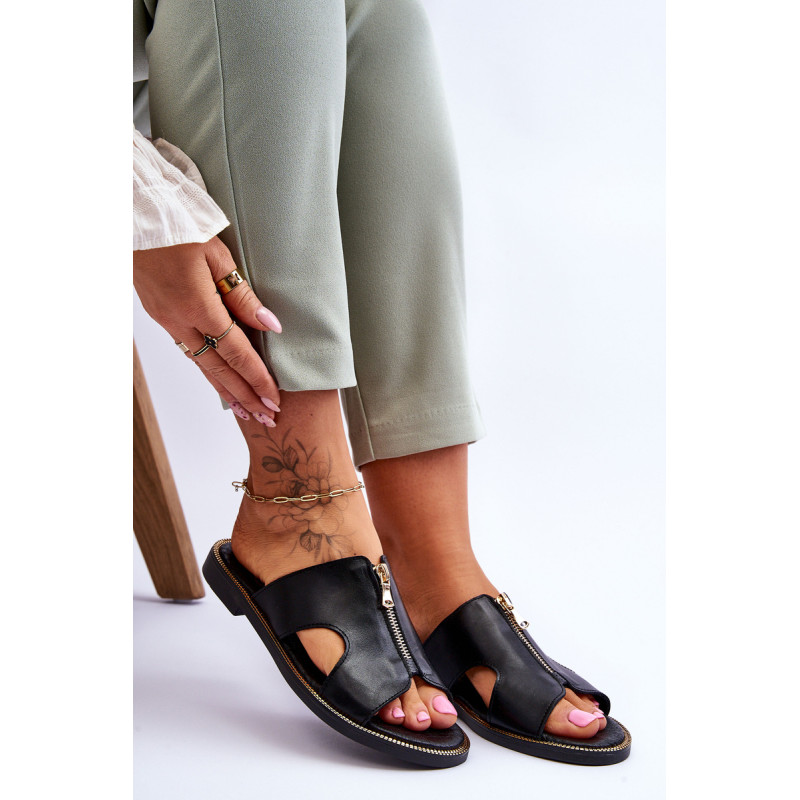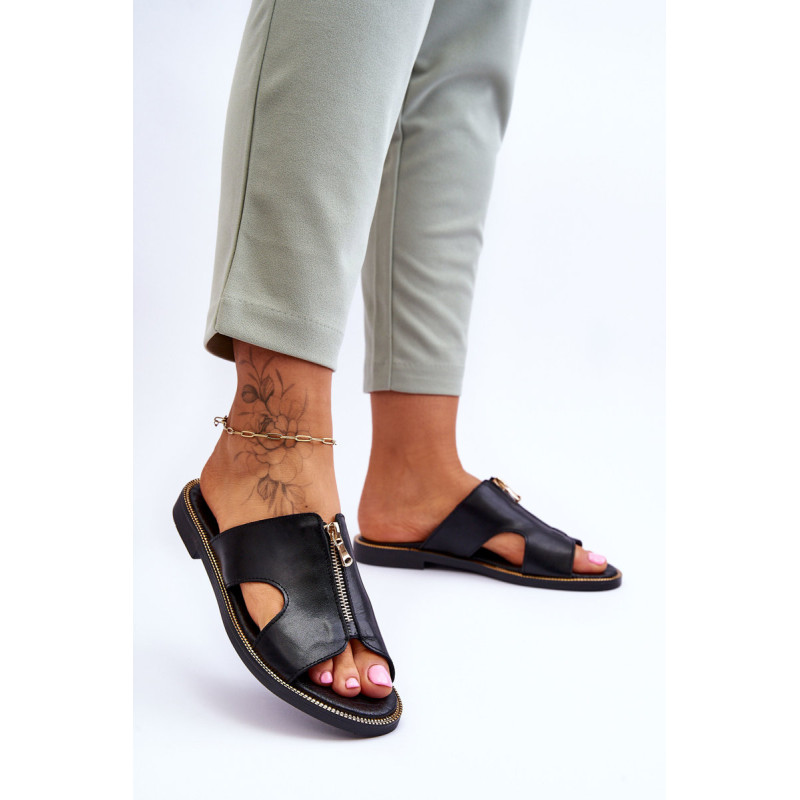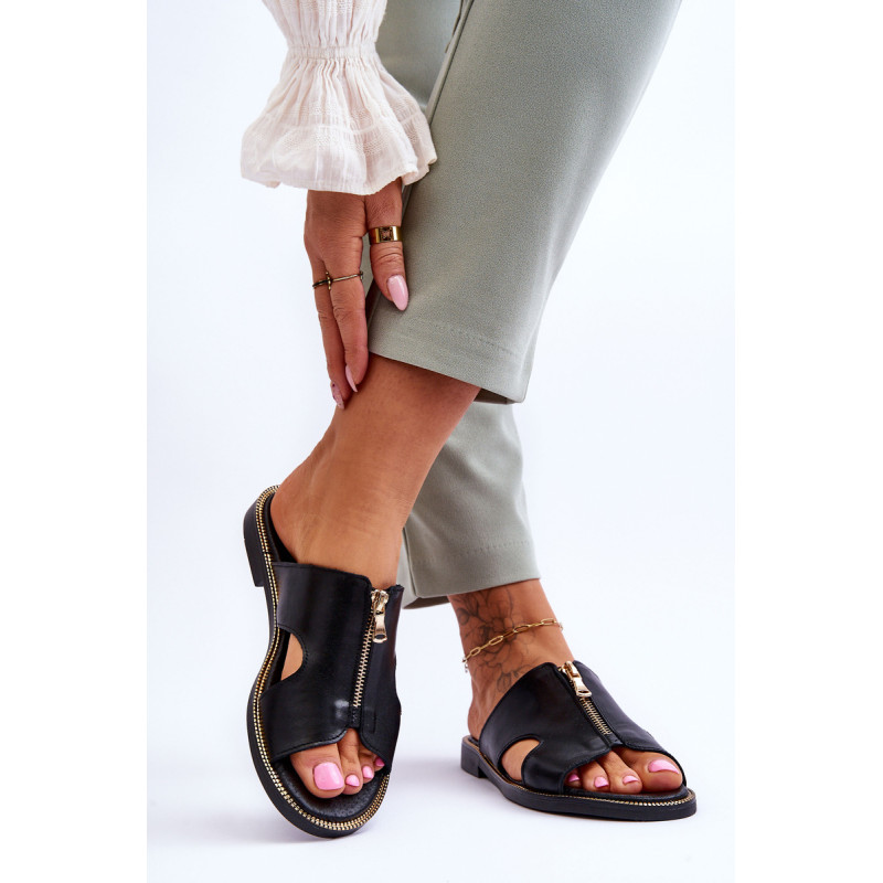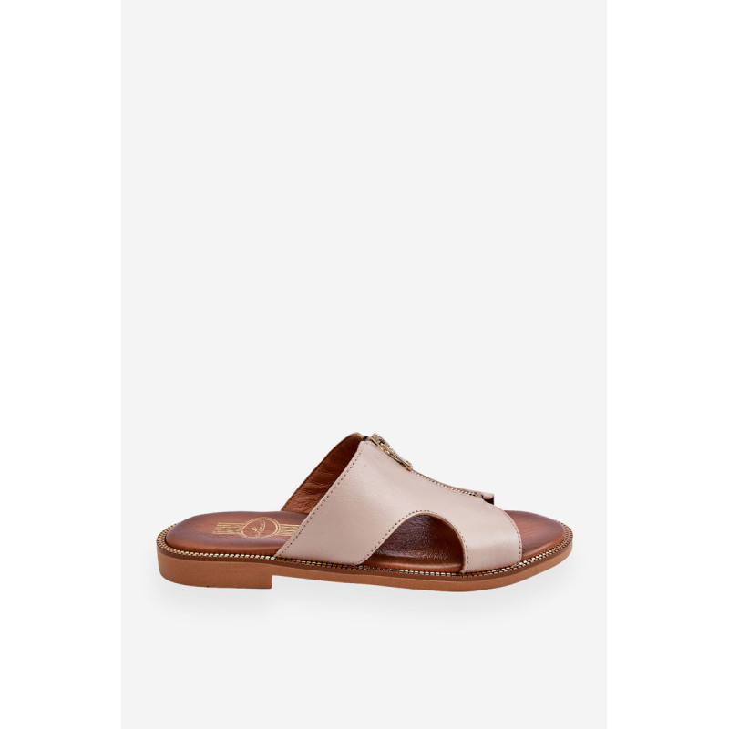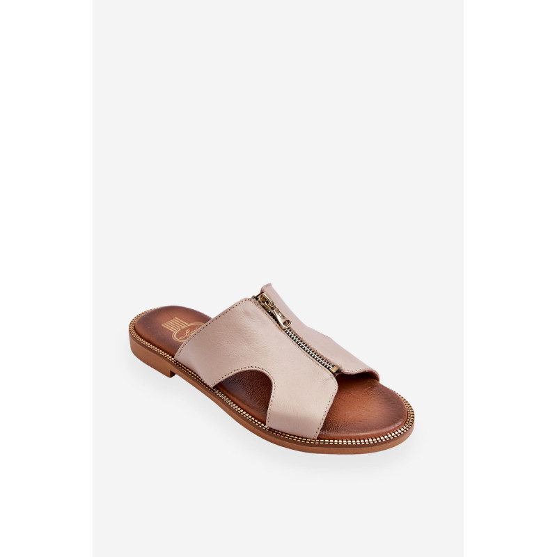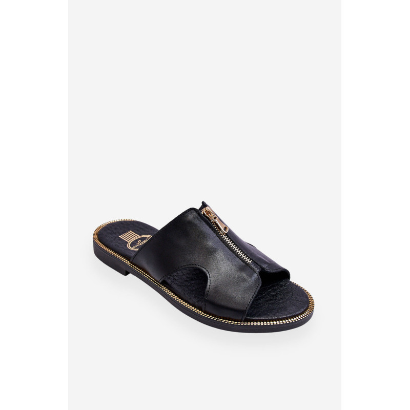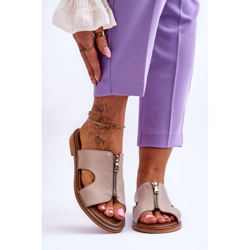 Klasikinės, moteriškos šlepetės pagamintos iš aukštos kokybės natūralios odos. Be to, jie buvo papuošti užtrauktuku ir išpjovomis viršutinės dalies šonuose. Atvartai nuslysti. Ant plokščio kulno su dekoruotu padu. Jie puikiai atrodys prie boho stiliaus suknelių, laisvų šortų ar sijonų. Renkantis dydį, vadovaukitės dydžių lentele.