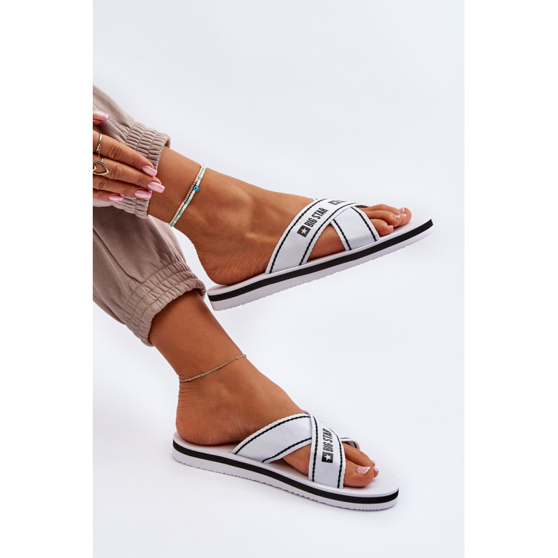 Big Star prekės ženklo moteriškos basutės yra stiliaus ir komforto derinys vasaros dienoms. Priekyje yra dvi susipynusios juostelės. Ant lengvo putplasčio pado jie garantuoja stabilumą ir amortizaciją einant. Idealiai tinka pasivaikščiojimui paplūdimyje arba atpalaiduojančiai dienai prie baseino! Rinkdamiesi dydį, žiūrėkite dydžių lentelę.