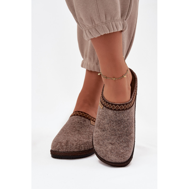 Moteriškos šlepetės Inblu prekės ženklo yra patogumo, funkcionalumo ir estetinio apdailos derinys. Pagamintos iš veltinio audinio. Modelis su plačiomis, uždarytomis nosimis suteikia laisvę ir komfortą kojoms, o lanksti padas užtikrina lengvumą ir puikų sukibimą. Profiliuota, išimama įdėklas prisitaiko prie pėdos formos, palaiko natūralią padėtį ir didina dėvėjimo patogumą. Viršutinė dalis papuošta delikacia siūle, kuri suteikia elegancijos visumai. Tai yra praktiškos šlepetės, idealiai tinkančios kasdieniam naudojimui namuose. Prašome naudotis dydžių lentele renkantis tinkamą dydį. Renkantis dydį, vadovaukitės dydžių lentele.