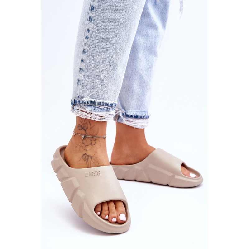 Big Star šlepetės pagamintos tik iš putplasčio. Masyvi platforma puikiai izoliuoja nuo žemės. Šlepetės itin patogios ir lengvai dėvimos. Viršuje yra įspaustas Big Star prekės ženklo logotipas. Jūs tikrai turėtumėte juos turėti savo spintoje! Pasirinkdami dydį, žiūrėkite dydžių lentelę.