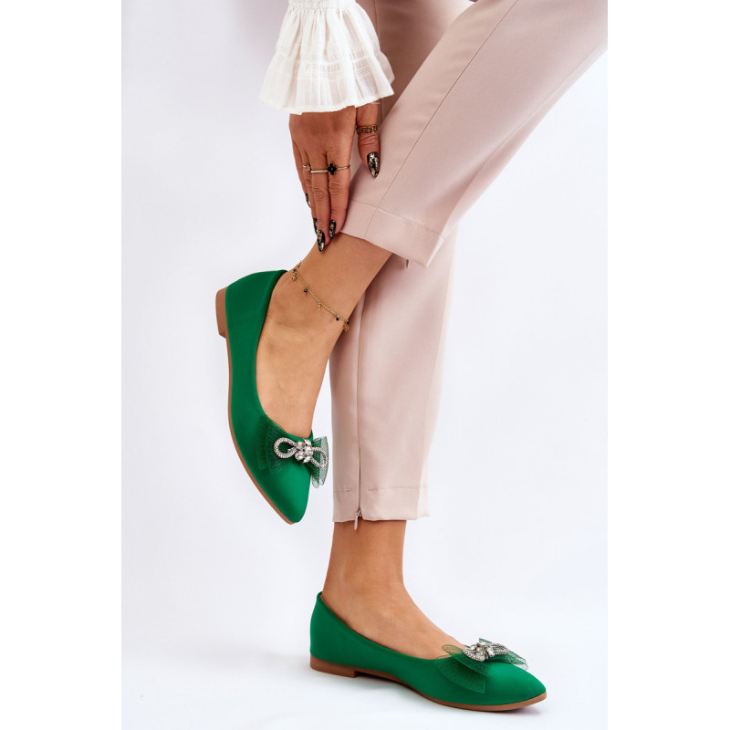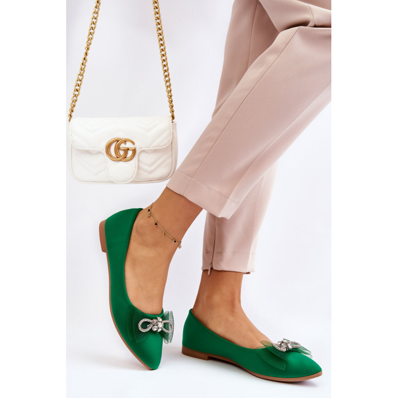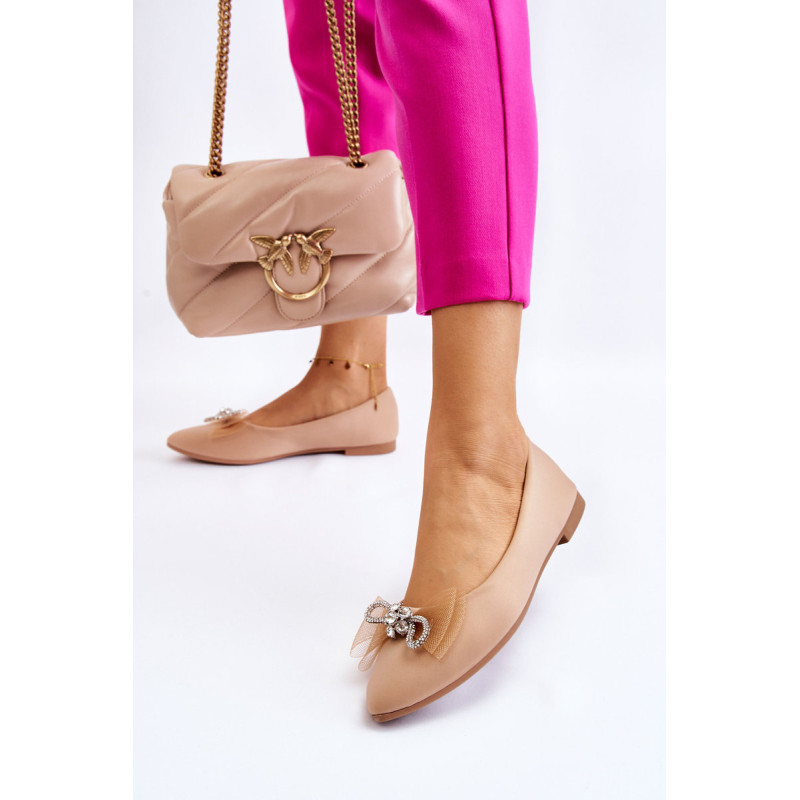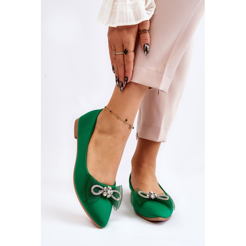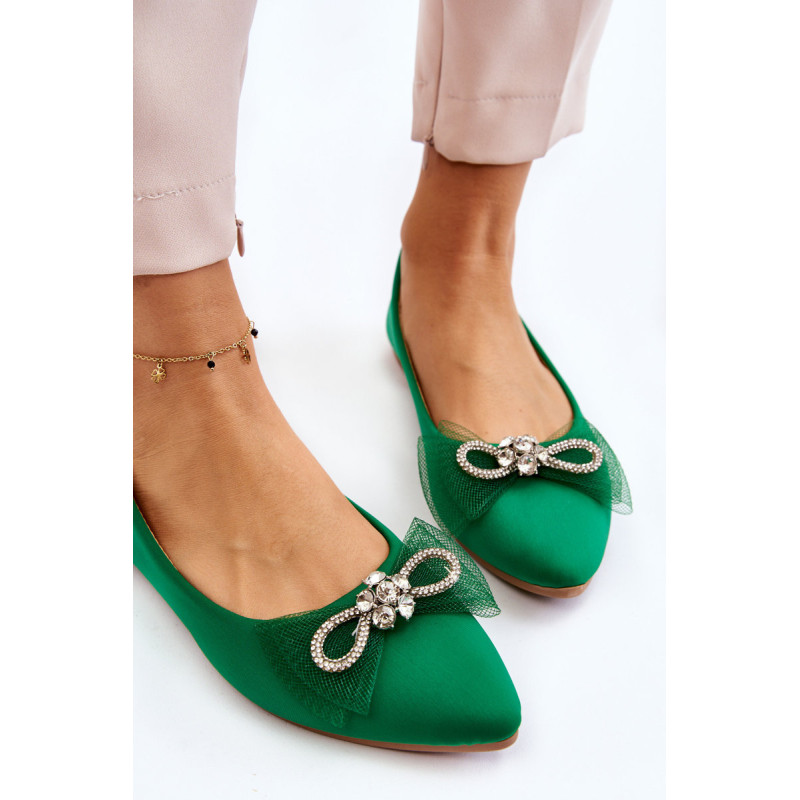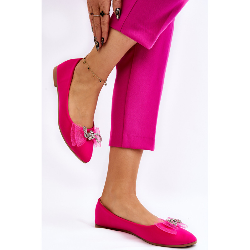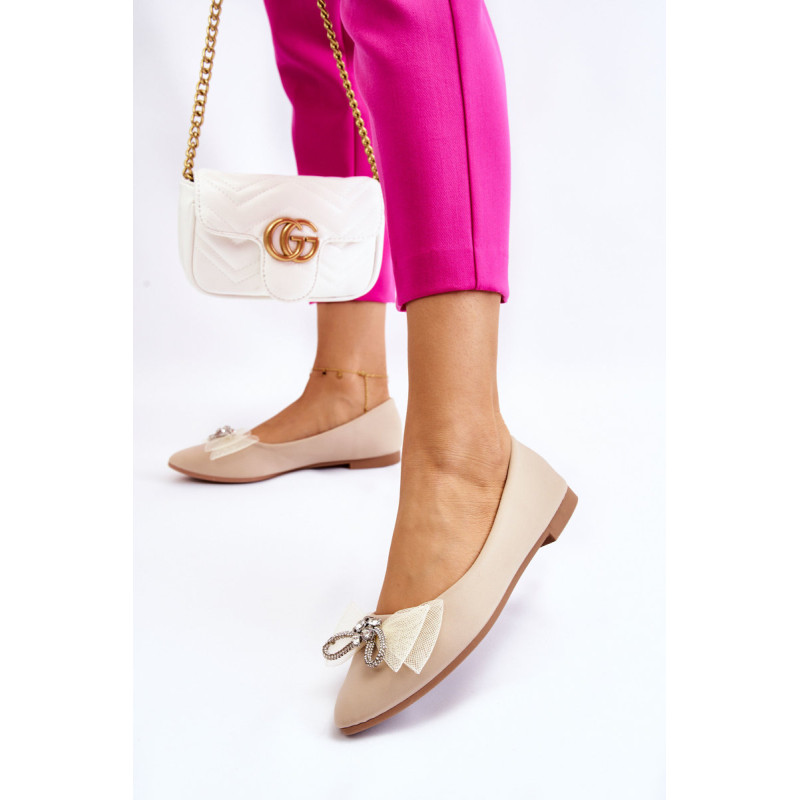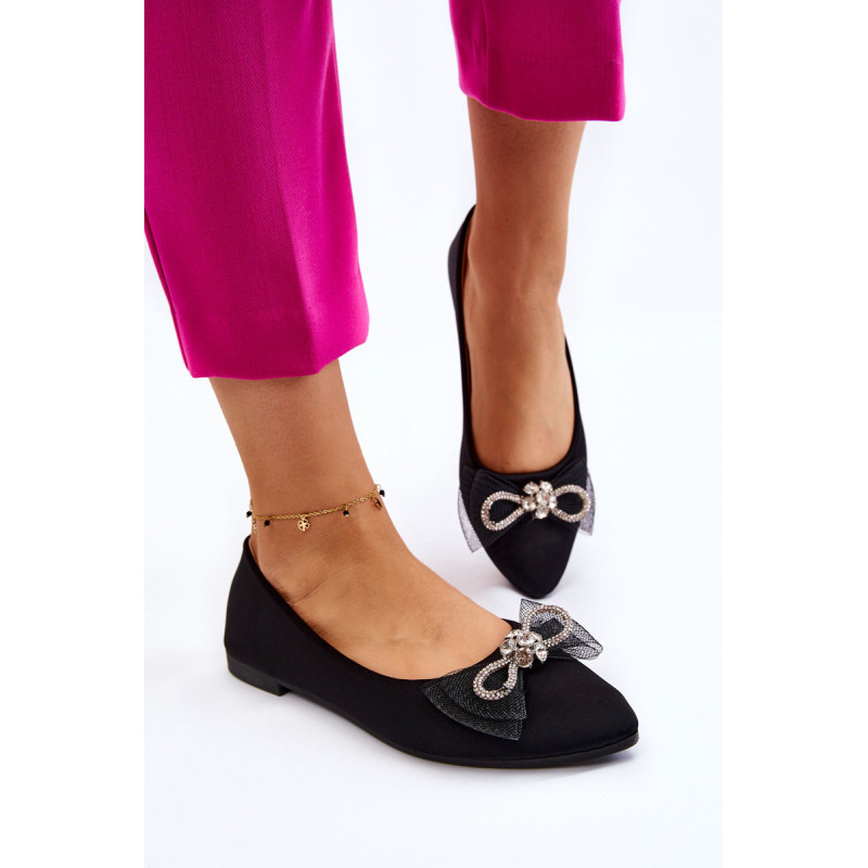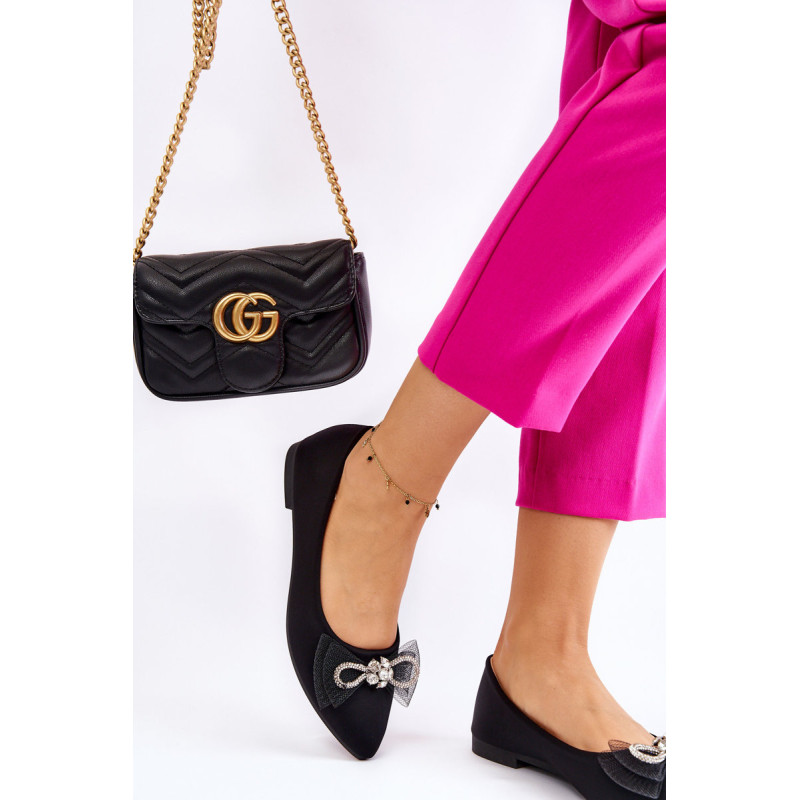 Elegantiškos, moteriškos balerinos pagamintos iš tekstilės. Šio modelio priekyje yra lankelis ir kalnų krištolas imituojantys akmenukus. Smailia nosis. Balerinos – tai batai, su kuriais galima sukurti daugybę stilizacijų. Jie puikiai tiks įvairioms svarbioms progoms. Minkštas vidpadis iš eko odos užtikrins komfortą naudojimo metu. Rinkdamiesi dydį, žiūrėkite dydžių lentelę.