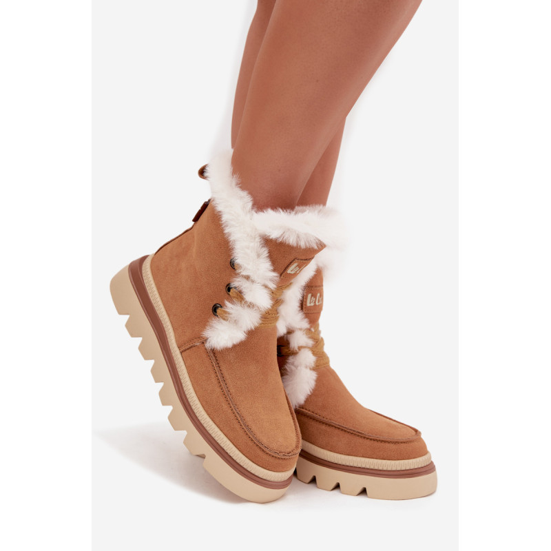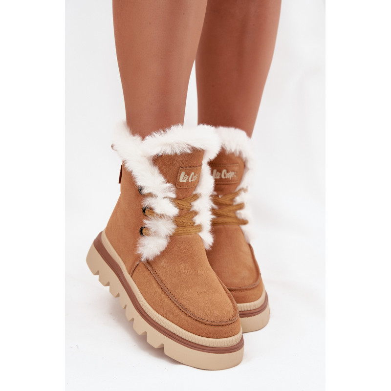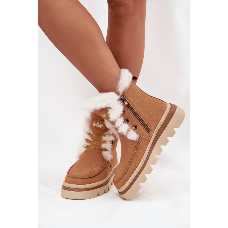 Moteriški snieglenčių batai prekės Lee Cooper. Pagaminti iš natūralaus zomšos. Modelis įrengtas ant patvaraus guminio pado, kuris užtikrina stabilumą ir gerą sukibimą su paviršiumi, net ir slidžiuose paviršiuose. Vidus yra išklotas minkšta kailio medžiaga, kuri užtikrina šilumą ir patogumą žiemos dienomis. Sniego batai su raišteliais, leidžiančiais idealiai prisitaikyti prie pėdos, o užtrauktukas palengvina jų užsidėjimą ir nuėmimą. Ideali pasirinkimas moterims, vertinančioms komfortą, praktiškumą ir madingą išvaizdą – puikiai tinka žiemos pasivaikščiojimams ir kasdienėms išvykoms. Renkantis dydį, vadovaukitės dydžių lentele.