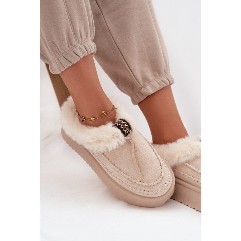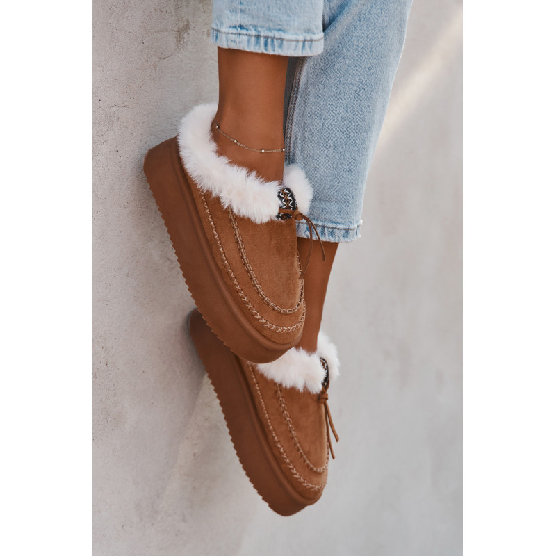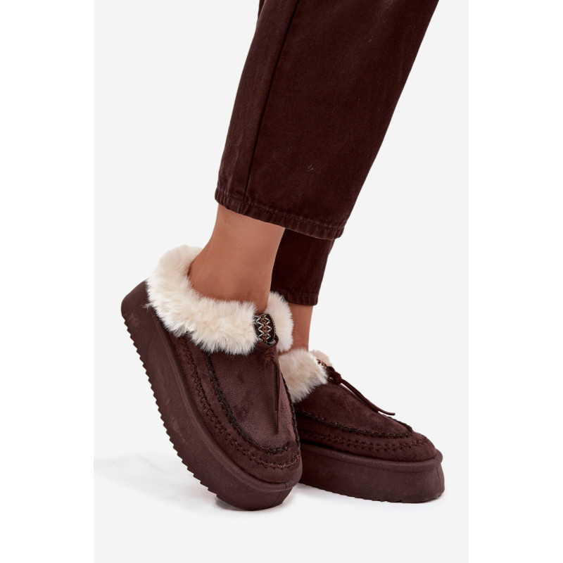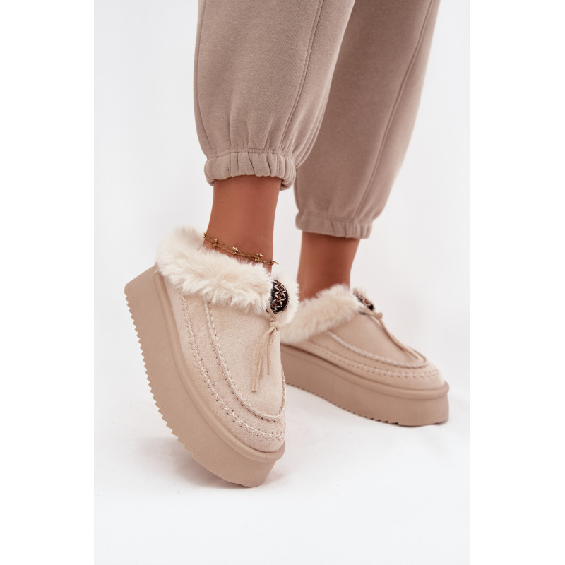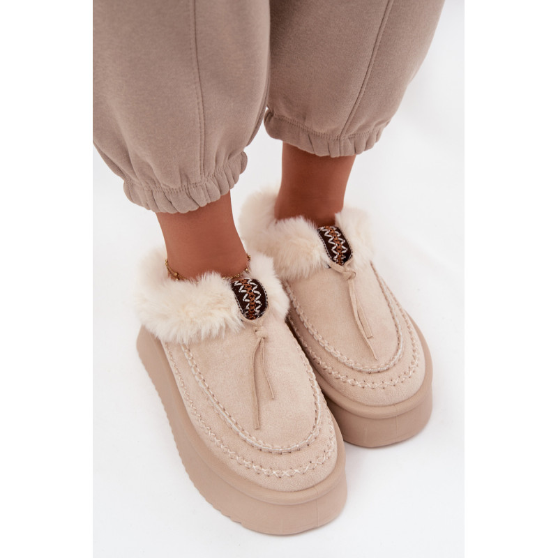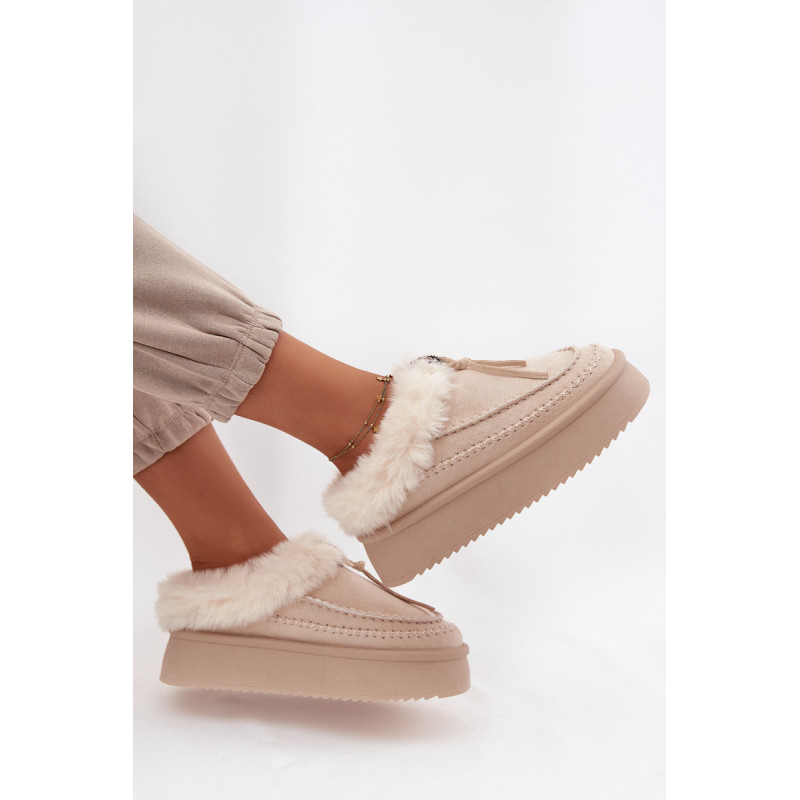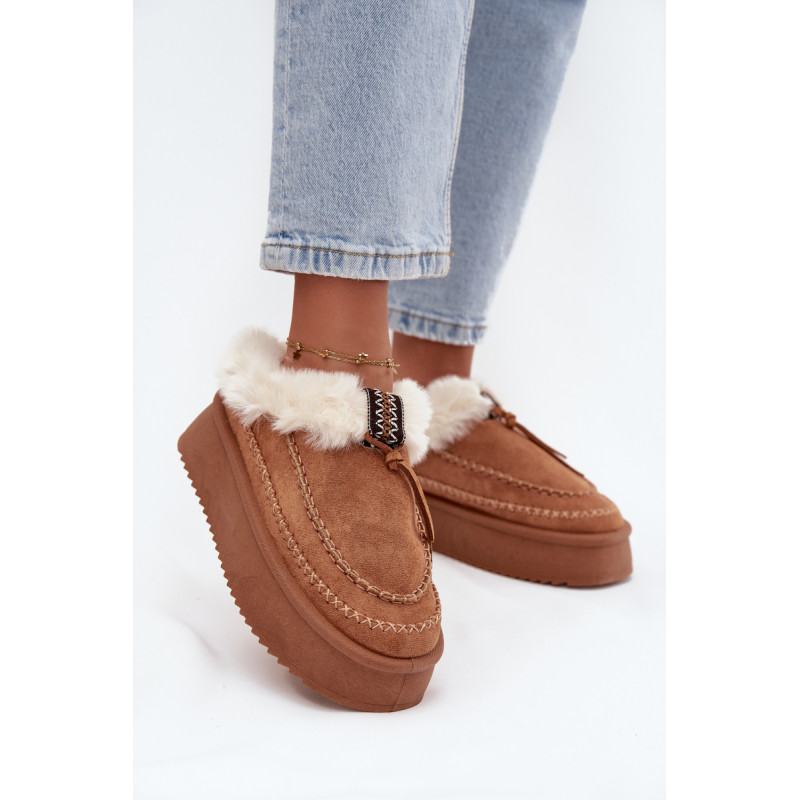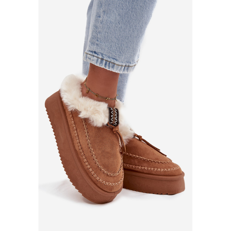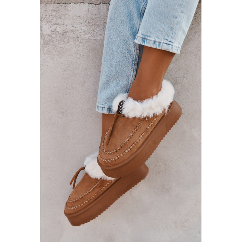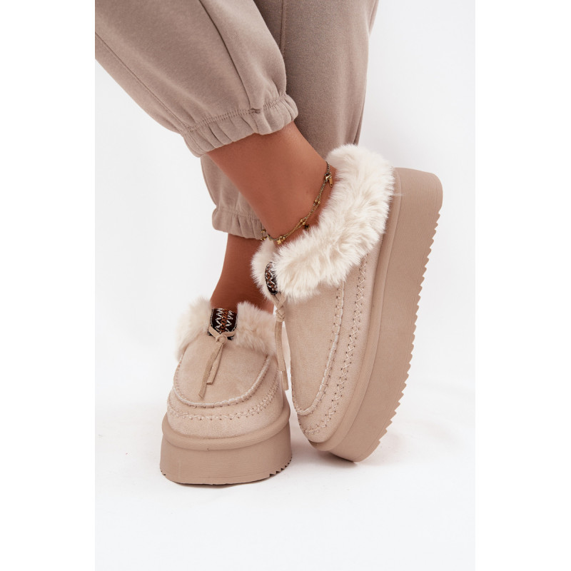 Moteriški sniegu batai, pagaminti iš ekologiško zomšos, yra puikus stiliaus ir patogumo derinys žiemą. Pastatyti ant platformos, kuri švelniai siaurina siluetą ir puikiai izoliuoja nuo šalto paviršiaus, jie užtikrina komfortą dėvint. Viršutinė bato dalis papuošta minkštu kailiu ir dekoratyvine juostele, suteikiančia visumui madingą žieminį įvaizdį. Bato vidus taip pat išklotas kailiu, užtikrinantį šilumą ir malonią apgaubiančią jausmą net ir šaltomis dienomis. Tai stilingi sniegų batai, puikiai tinkantys kasdieniams žieminiams deriniams. Renkantis dydį, vadovaukitės dydžių lentele.