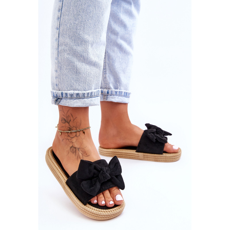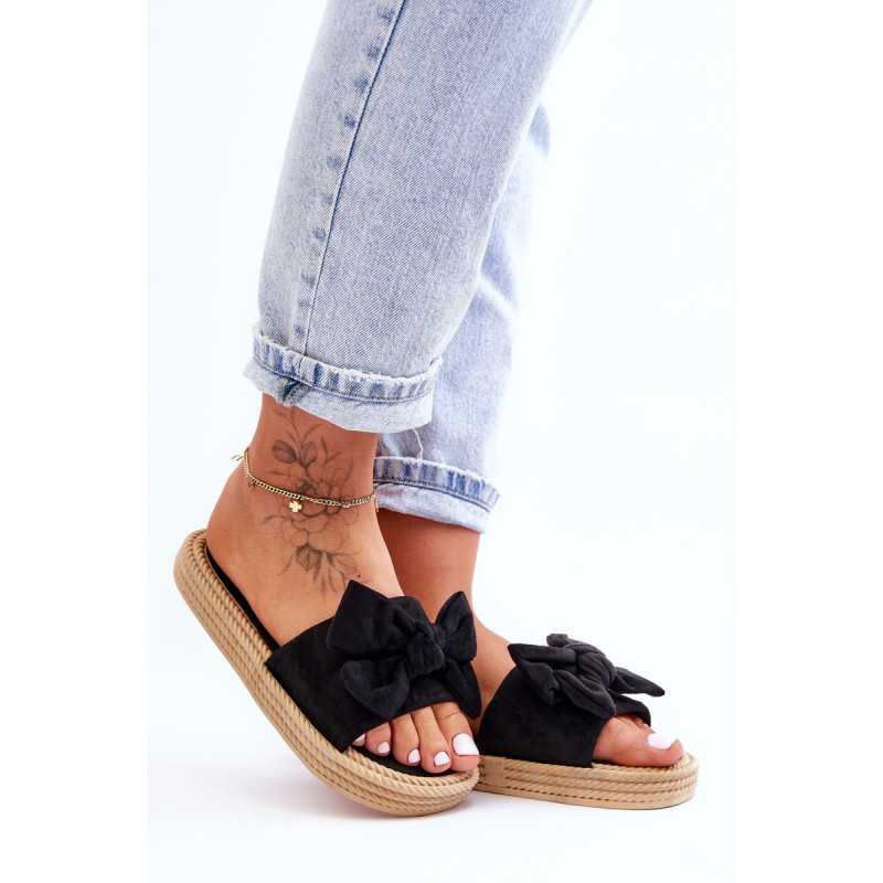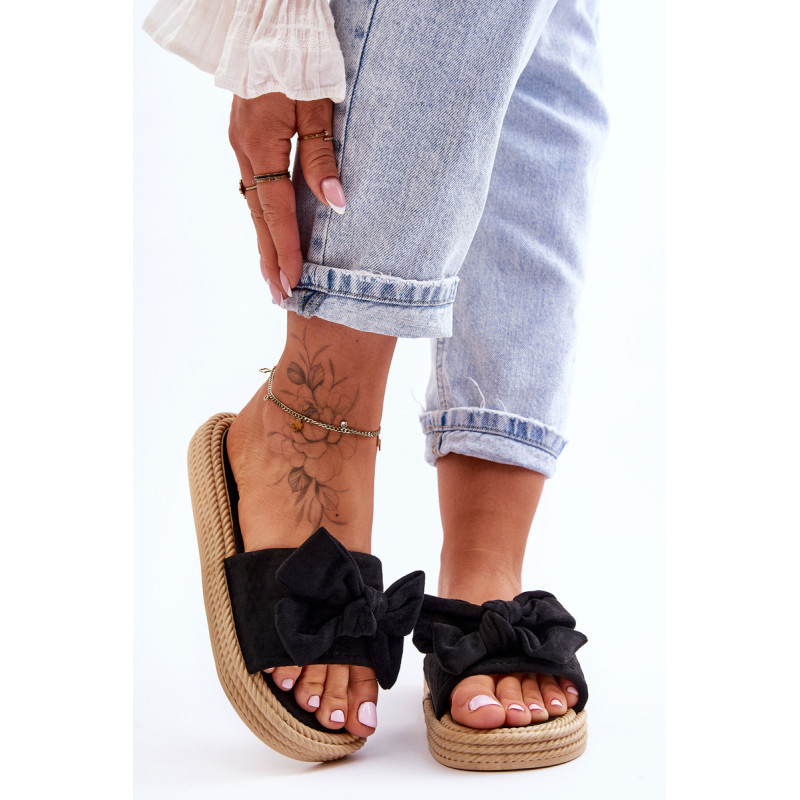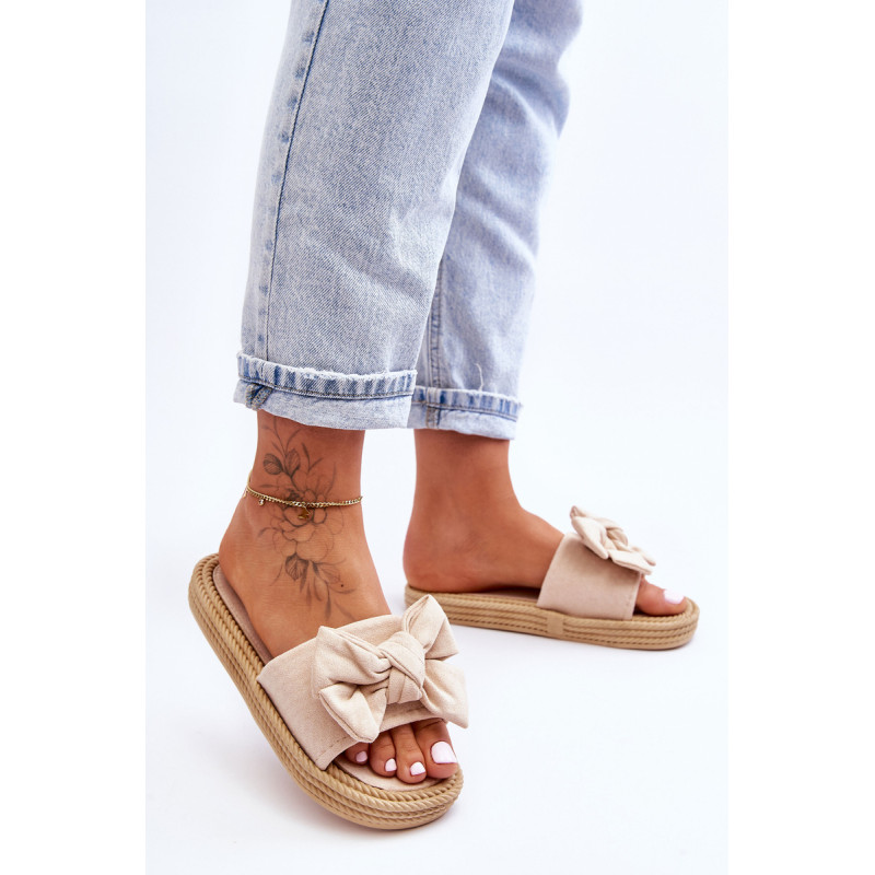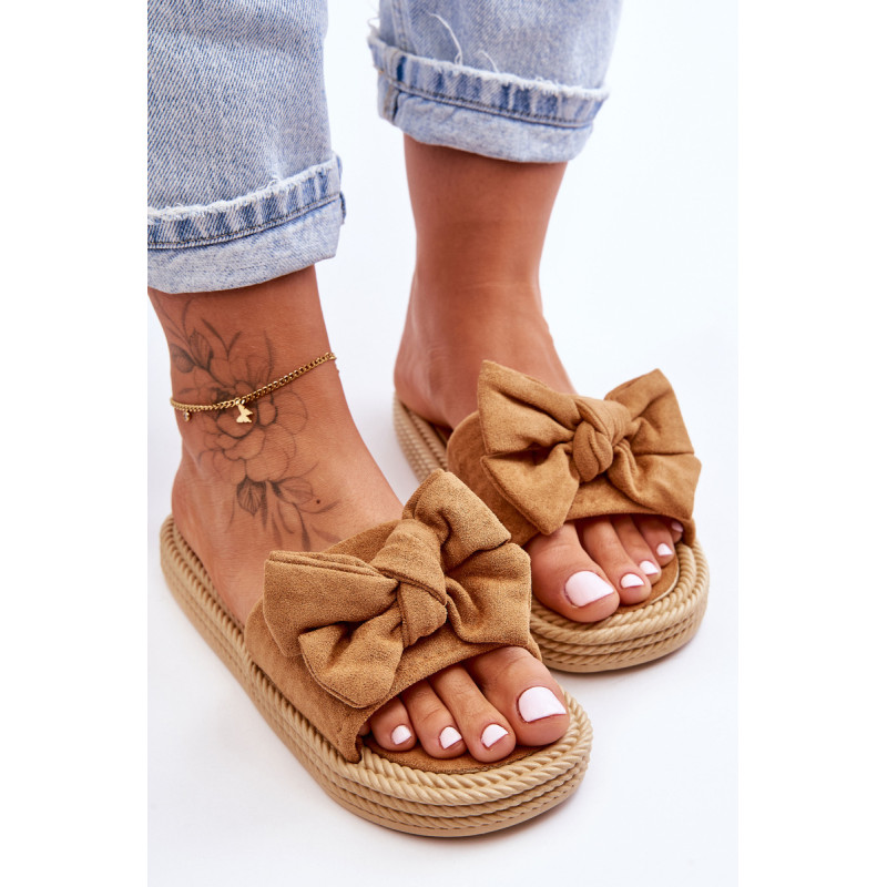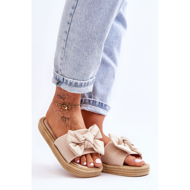 Moteriškos šlepetės pagamintos iš ekologiškos zomšos. Šio modelio priekyje yra žavus lankelis. Šlepetės buvo pastatytos ant didžiulės platformos. Šis modelis puikiai tiks šiltoms dienoms! Šios avalynės vidpadis taip pat pagamintas iš ekologiškos zomšos. Nelaukite ilgiau ir pirkite šiandien! Rinkdamiesi dydį, vadovaukitės dydžių lentele.