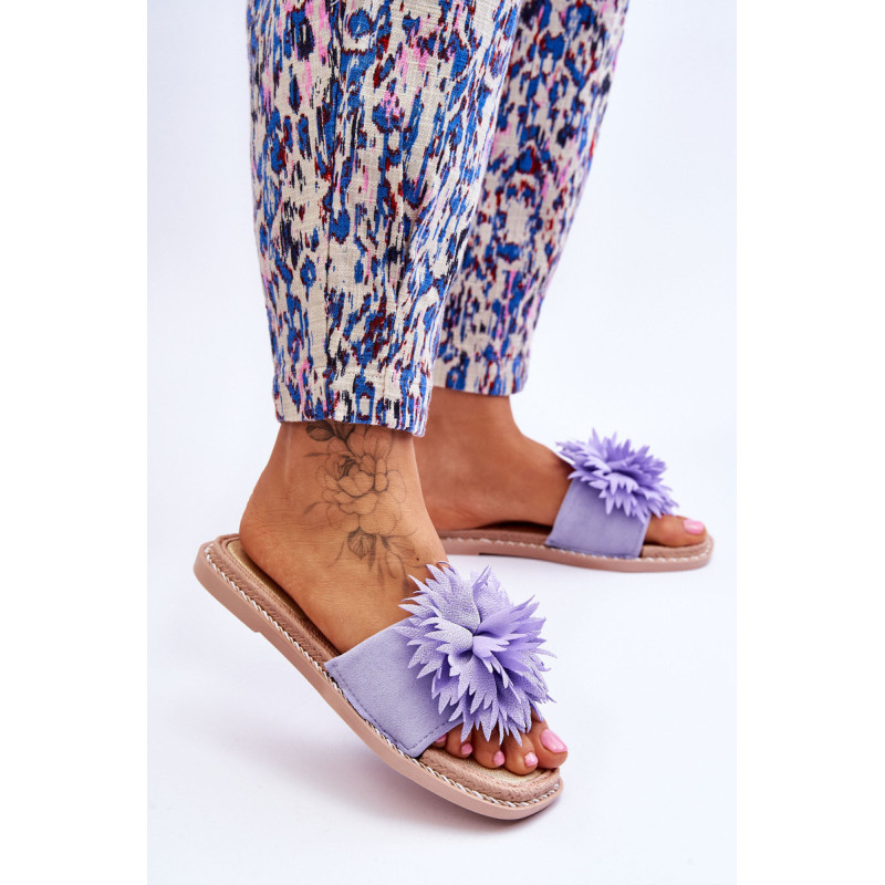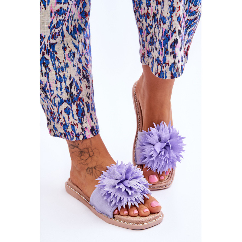 Moteriškos šlepetės su įspūdingu papuošimu priekyje. Pagaminta iš ekologiškos zomšos, o ornamentas iš audinio. Vidpadis ir padas pagaminti iš guminės medžiagos. Kojos pirštas atviras, šiek tiek kvadratinis. Virvelės aplink padą. Šlepetės ant plokščio kulno, neslidžiu padu. Šlepetės yra erdvios, todėl puikiai tiks karštoms dienoms! Modelis, kurį turėtumėte turėti! Nelaukite ir pirkite! Renkantis dydį, naudokite dydžių lentelę.