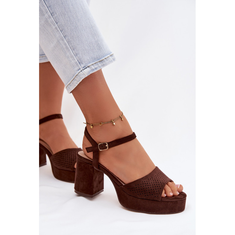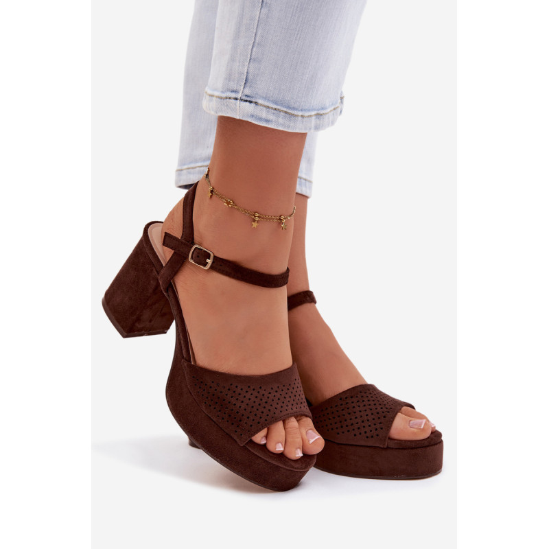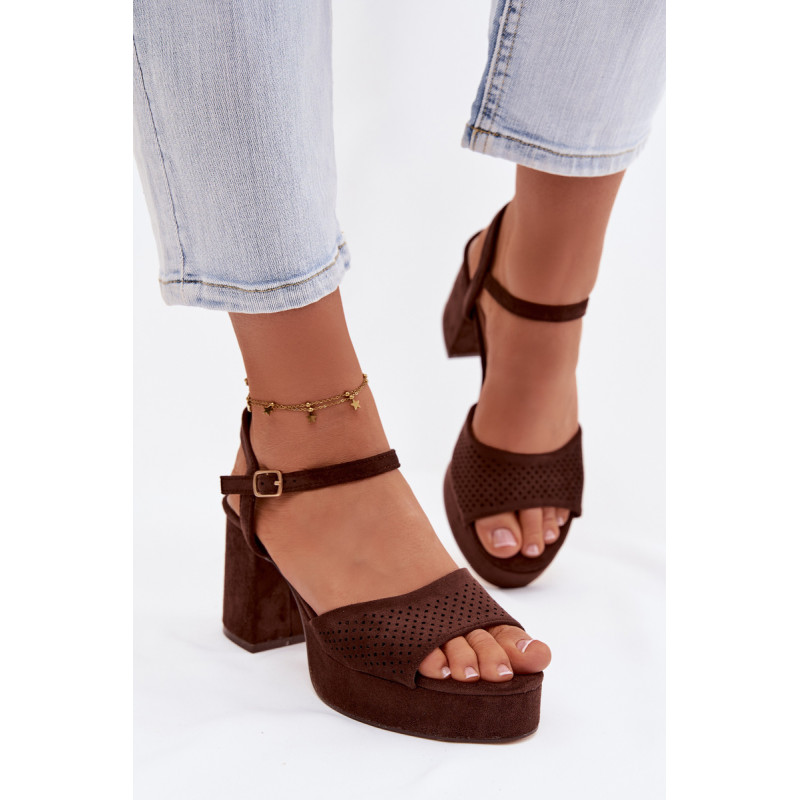 Moteriškos sandalai iš eko zomšos yra stilingas pasirinkimas vasaros dienoms ir ypatingoms progoms. Stabilus blokinis kulnas su platforma užtikrina komfortą ir pasitikėjimą kiekviename žingsnyje, tuo pačiu subtiliai išryškindamas siluetą. Reguliuojamas dirželis su sagtimi aplink čiurną leidžia puikiai pritaikyti prie pėdos. Šis modelis puikiai tinka tiek vakarėliams, tiek elegantiškoms išvykoms. Renkantis dydį, vadovaukitės dydžių lentele.