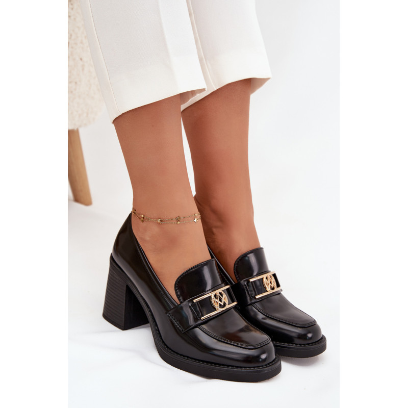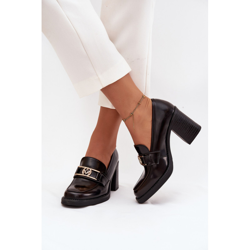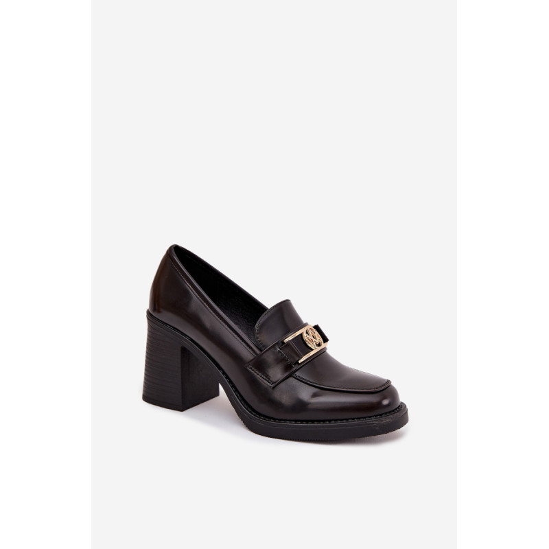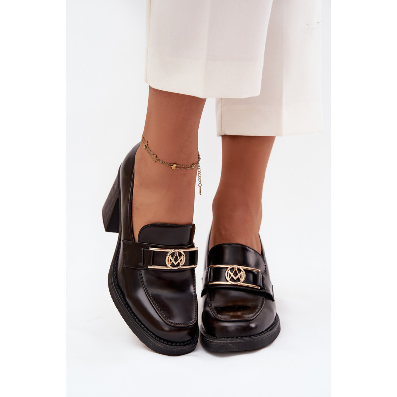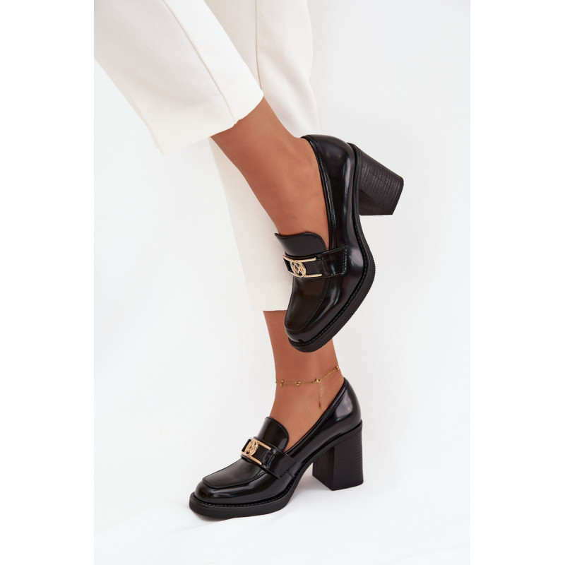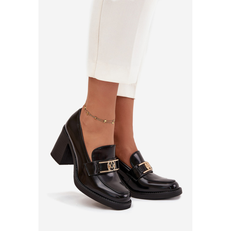 Moteriški loaferiai iš ekologiškos odos yra elegantiška ir universalus pasiūlymas daugeliui progų. Jie įrengti ant stabilaus blokinio kulno, užtikrinančio patogumą ir švelniai ilginančio siluetą. Priekyje esantis auksinis detalė patraukia dėmesį ir suteikia visumai elegancijos. Šie batai puikiai tinka tiek kasdieniam, tiek oficialiam stiliui. Renkantis dydį, prašome vadovautis dydžių lentele. Renkantis dydį, vadovaukitės dydžių lentele.