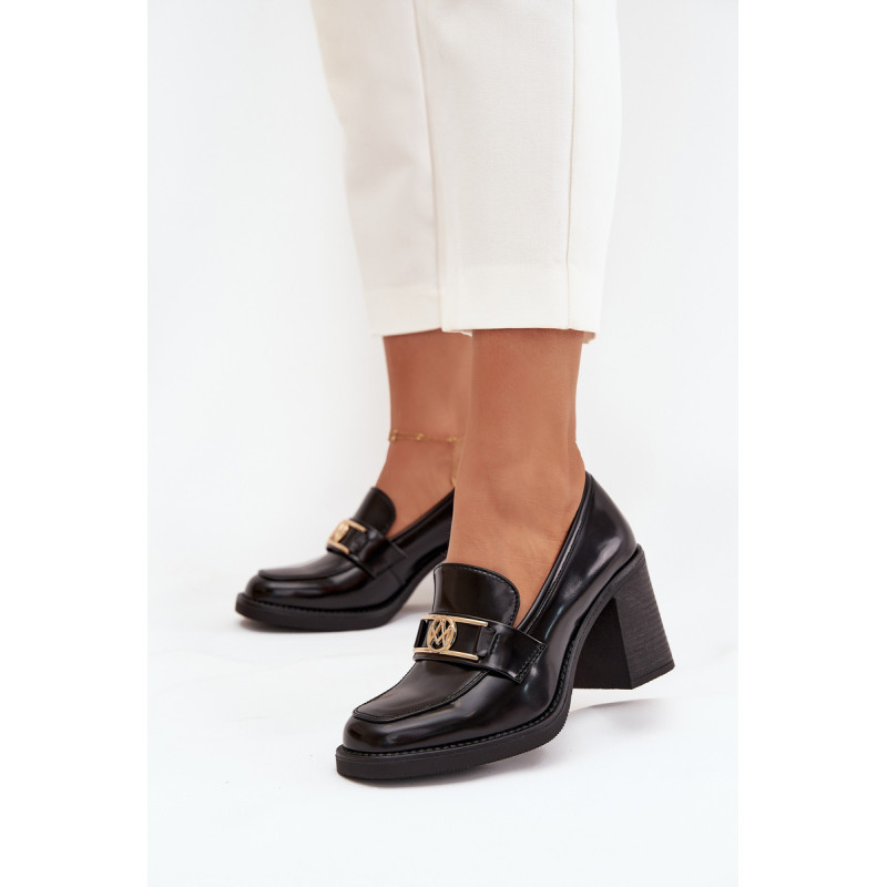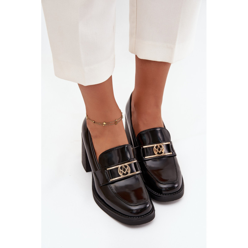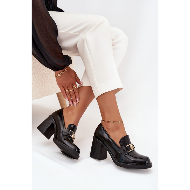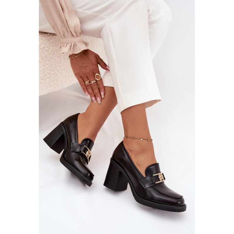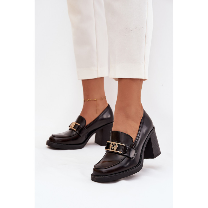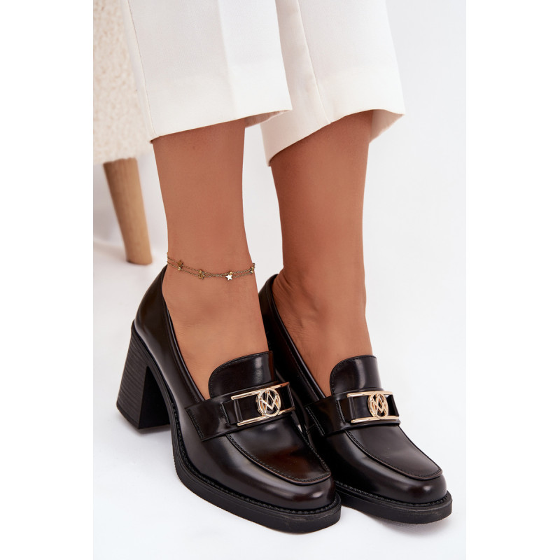 Moteriški loaferiai iš ekologiškos odos yra elegantiška ir universalus pasiūlymas daugeliui progų. Jie įrengti ant stabilaus blokinio kulno, užtikrinančio patogumą ir švelniai ilginančio siluetą. Priekyje esantis auksinis detalė patraukia dėmesį ir suteikia visumai elegancijos. Šie batai puikiai tinka tiek kasdieniam, tiek oficialiam stiliui. Renkantis dydį, prašome vadovautis dydžių lentele. Renkantis dydį, vadovaukitės dydžių lentele.