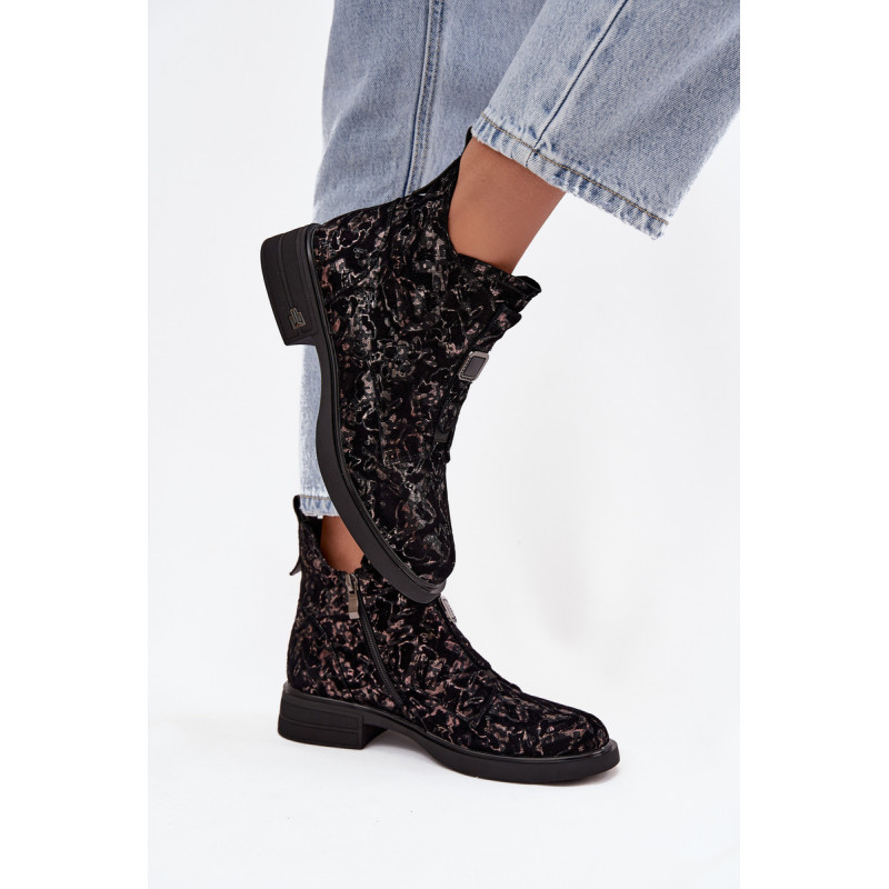 Eleganti moteriški auliniai batai iš natūralaus zomšos odos yra pasirinkimas moterims, vertinančioms stilių ir patogumą. Žemas blokinis kulnas užtikrina stabilumą ir komfortą, todėl modelis puikiai tinka kasdieniam naudojimui. Užsegimas užtrauktuku palengvina apsivilkimą, o švelnus izoliatorius garantuoja šilumą šaltesnėmis dienomis. Priekyje esantis dekoratyvinis elementas patraukia dėmesį ir suteikia elegancijos, išryškindamas jų išskirtinį charakterį. Šie auliniai batai puikiai papildys elegantiškus derinius rudenį ir žiemą. Pasirinkdami dydį, naudokitės dydžių lentele. Renkantis dydį, vadovaukitės dydžių lentele.