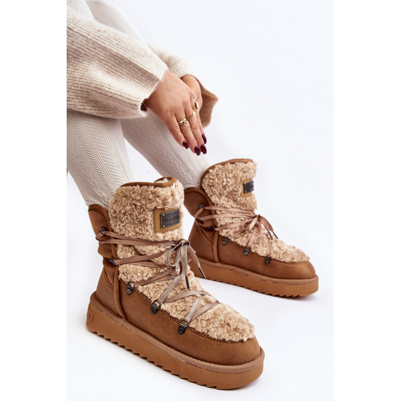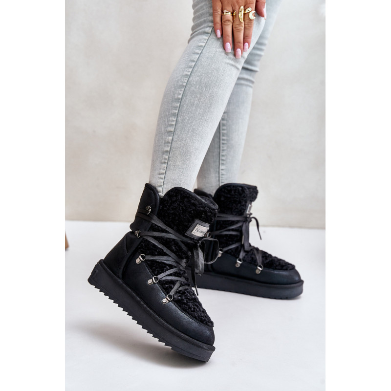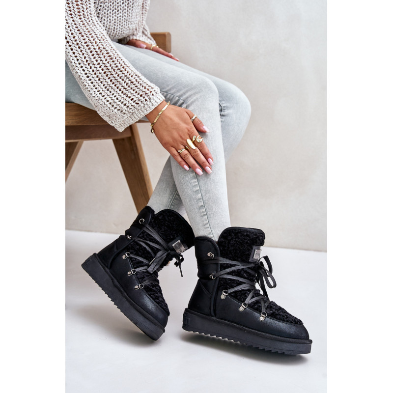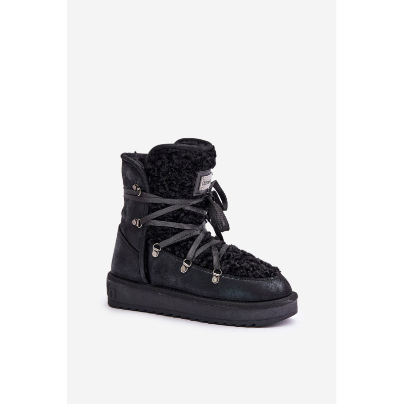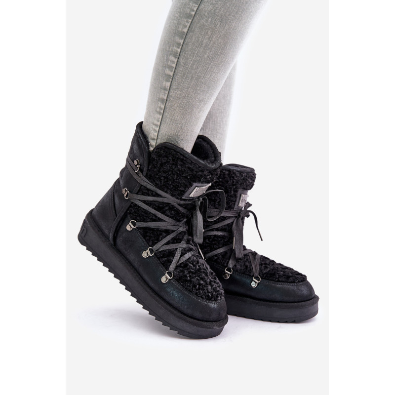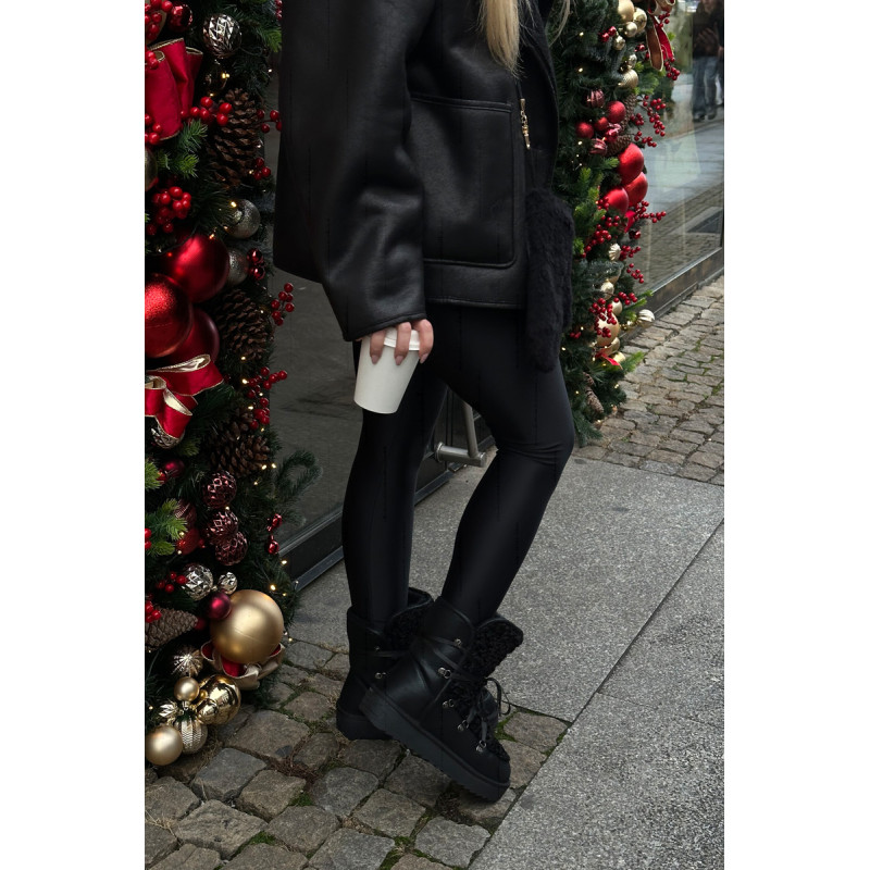 Moteriški sniego batai, pagaminti iš aukštos kokybės vandeniui atsparaus mikropluošto audinio. Pastatykite ant storo neslystančio pado. Vidus ir priekis pamuštas sintetiniu kailiu. Šis modelis skirtas šalčiausioms dienoms. Sniego batai užsegami papildomais raišteliais. Veganas. Rinkdamiesi dydį žiūrėkite dydžių lentelę.