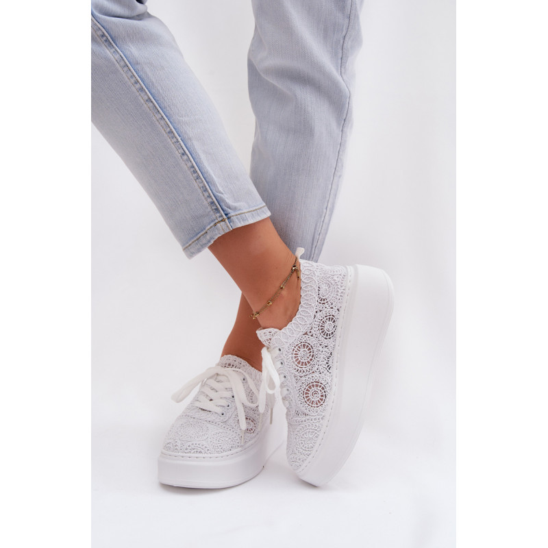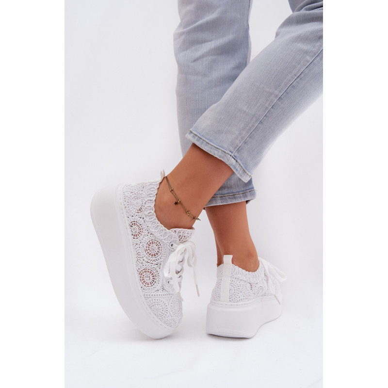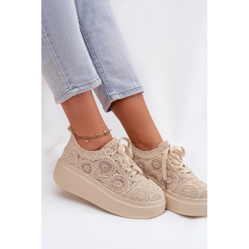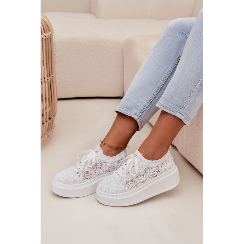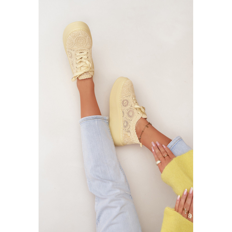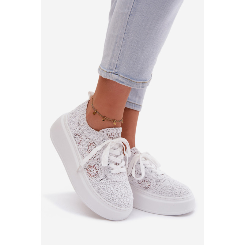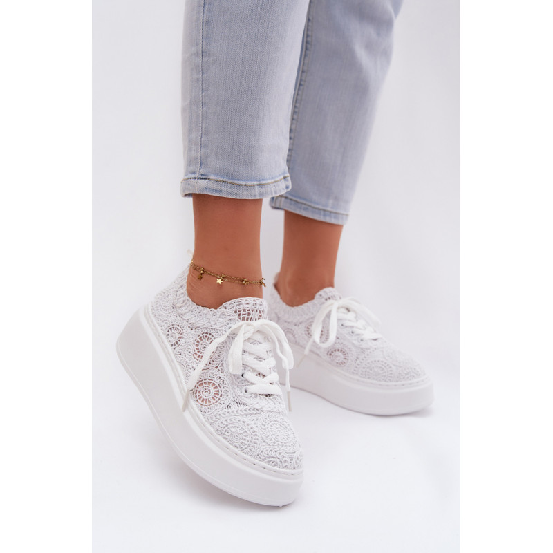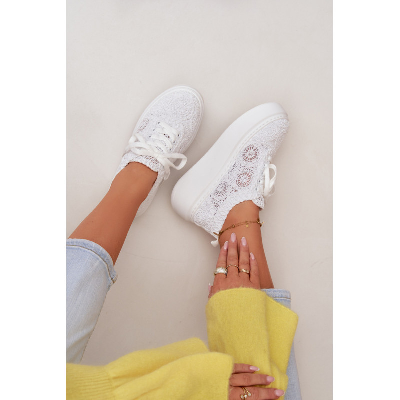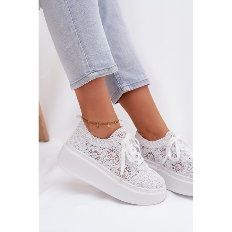 Stilingi moteriški sportbačiai su nėriniuota viršutine dalimi yra originalus pasirinkimas šiltiems orams. Angorinė faktūra suteikia lengvumo ir vasariško charakterio, o platforma subtiliai pakelia siluetą, užtikrindama stabilumą. Minkšta įdėklas užtikrina patogumą visą dieną. Šis modelis puikiai tinka kasdienėms stilizacijoms, suteikdamas madingą ir unikalų akcentą. Renkantis dydį, vadovaukitės dydžių lentele.