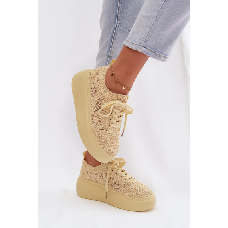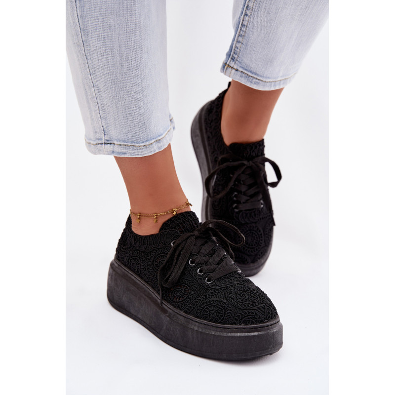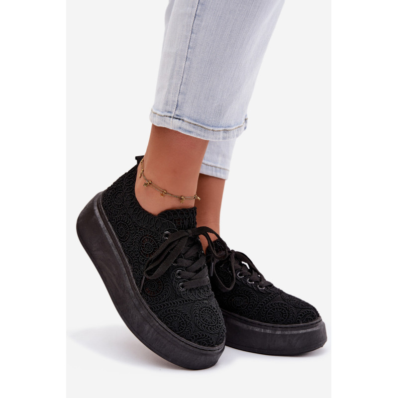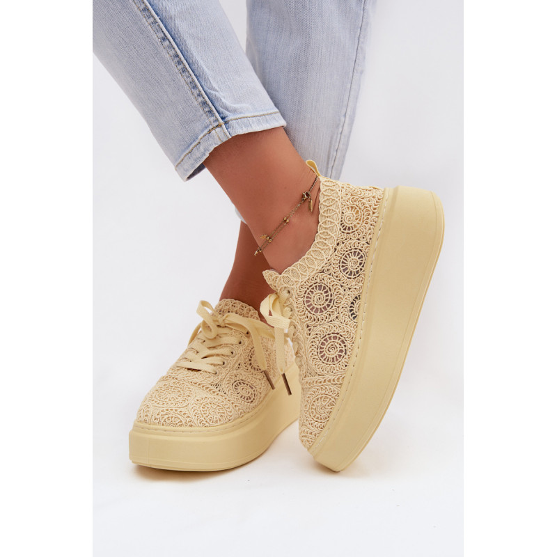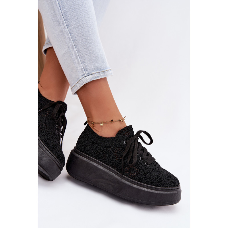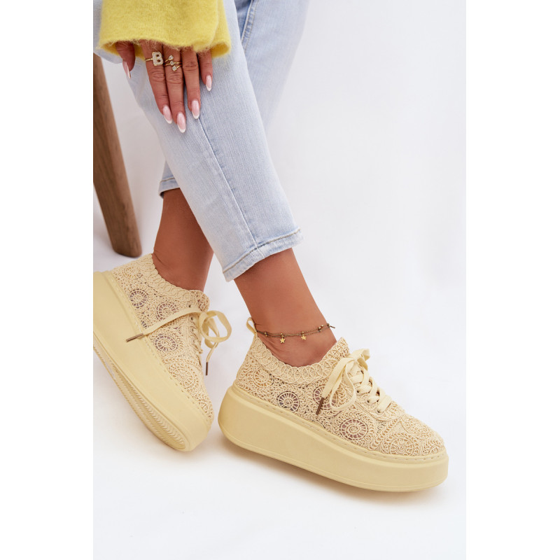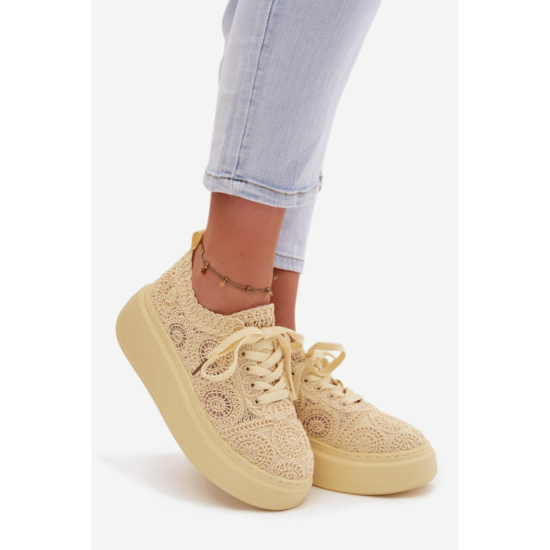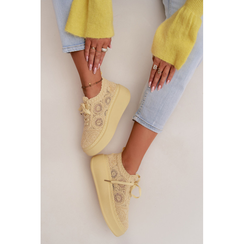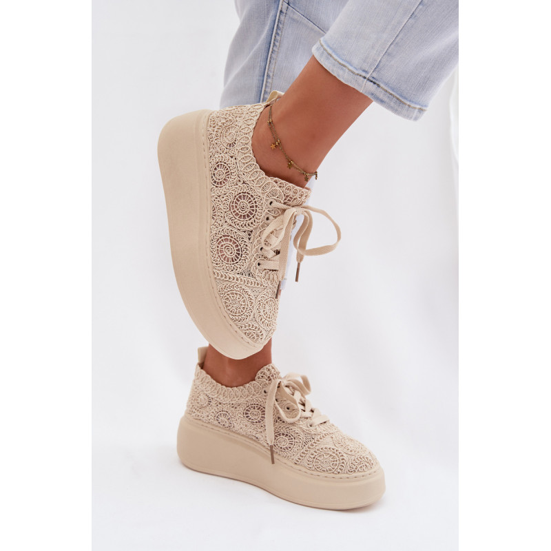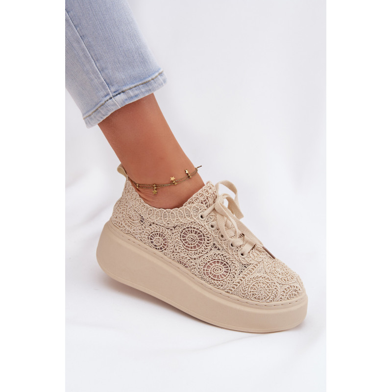 Stilingi moteriški sportbačiai su nėriniuota viršutine dalimi yra originalus pasirinkimas šiltiems orams. Angorinė faktūra suteikia lengvumo ir vasariško charakterio, o platforma subtiliai pakelia siluetą, užtikrindama stabilumą. Minkšta įdėklas užtikrina patogumą visą dieną. Šis modelis puikiai tinka kasdienėms stilizacijoms, suteikdamas madingą ir unikalų akcentą. Renkantis dydį, vadovaukitės dydžių lentele.