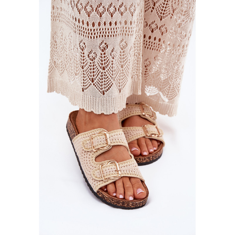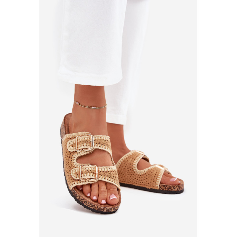 Moteriški nertiniai šlepetės ant kamščio platformos yra unikali pasiūla šiltoms dienoms. Dėl ekosuede profiliuotos įdėklo jos užtikrina komfortą ir patogumą visą dieną. Dvi auksinės sagties suteikia joms elegantišką charakterį. Puikiai tinka vasaros stiliams, šios šlepetės bus puikus pasirinkimas suknelėms, sijonams ir kelniams. Renkantis dydį, vadovaukitės dydžių lentele.