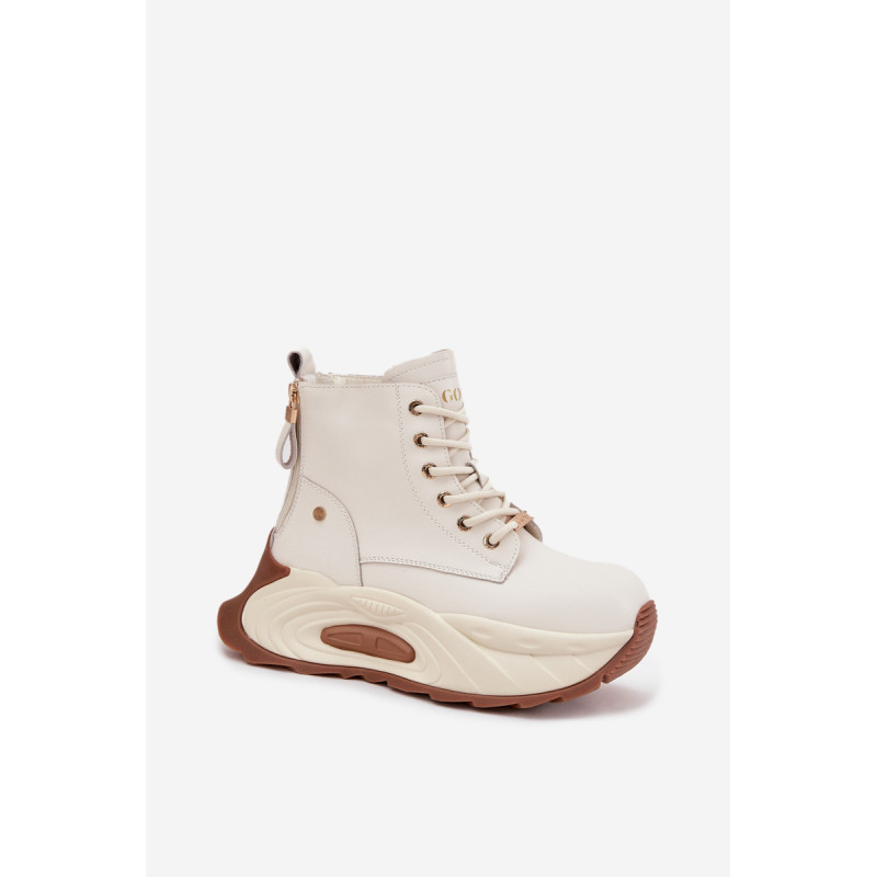Moteriški GOE aulinukai yra pasiūlymas moterims, kurios vertina šiuolaikinį stilių ir patogumą. Pagaminti iš aukštos kokybės natūralios odos, atrodo elegantiškai ir yra itin patvarūs. Uždedami ant masyvios platformos, jie suteikia siluetui charakterį ir puikiai dera su dabartinėmis tendencijomis. Modelis su raišteliais ir papildomai turi du užtrauktukus gale šonuose, kas palengvina dėvėjimą ir pabrėžia jų originalų dizainą. Tai ideali kasdieninė avalynė, puikiai papildanti tiek kasdienius, tiek išraiškingesnius įvaizdžius. Rinkdamiesi dydį, vadovaukitės dydžių lentele. Renkantis dydį, vadovaukitės dydžių lentele.