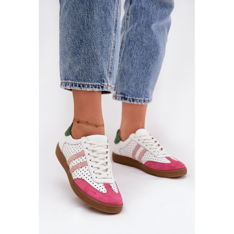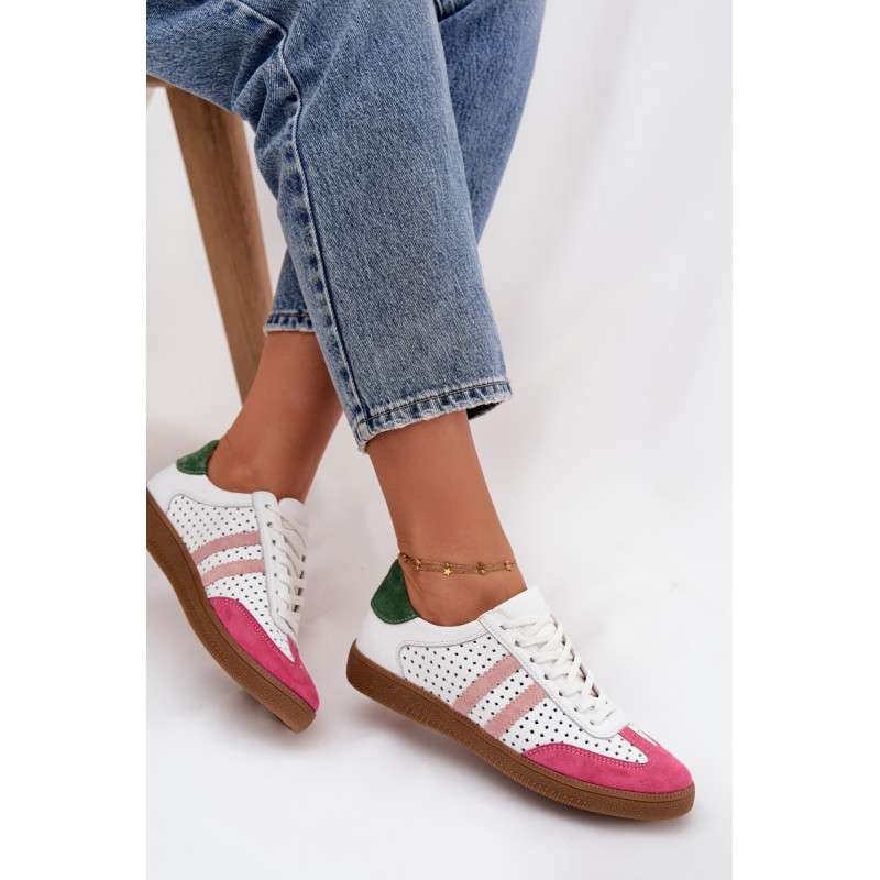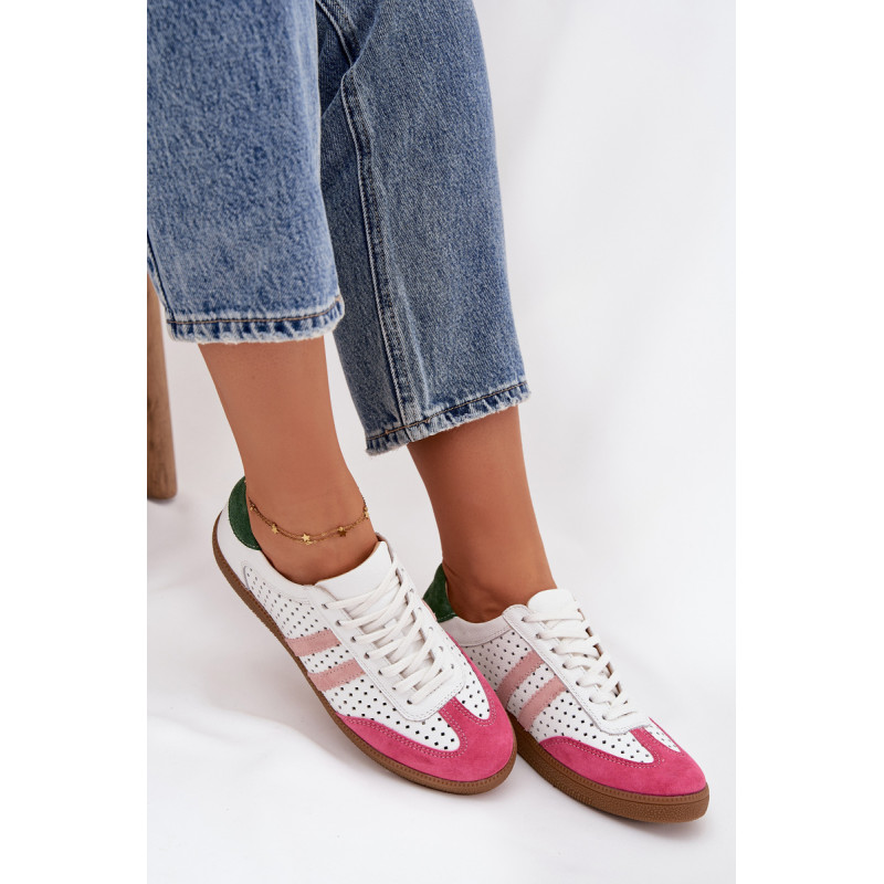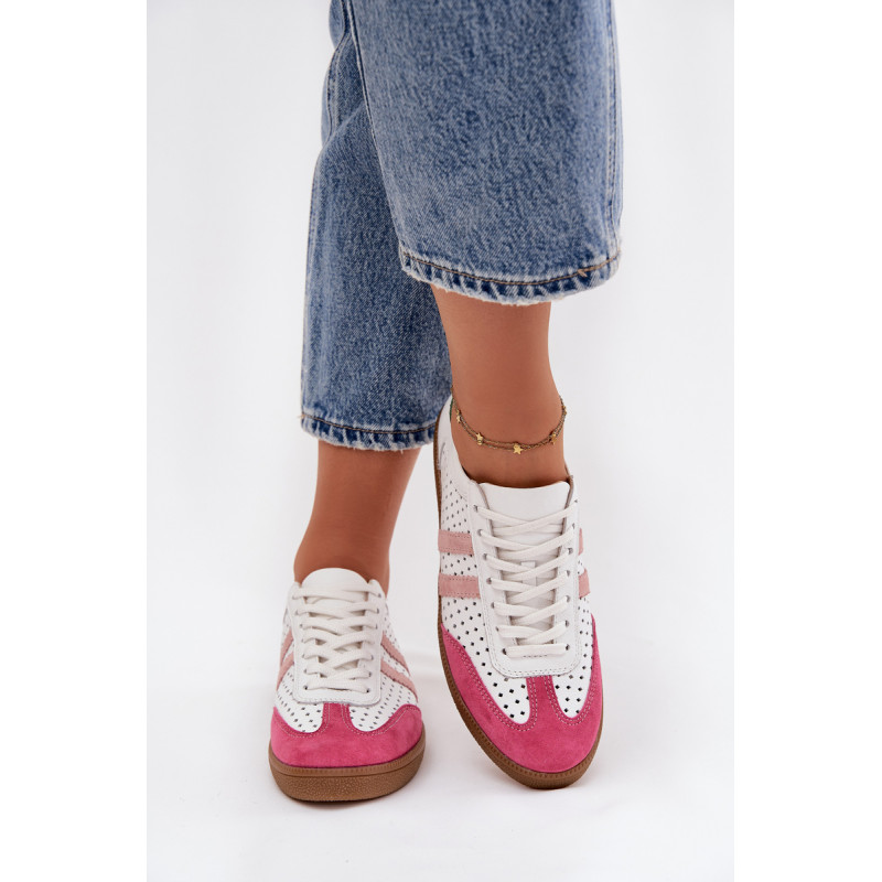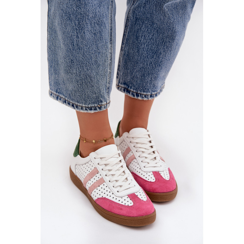 Moteriški sportbačiai, pagaminti iš natūralios odos ir zomšos, yra puikus pasirinkimas moterims, kurios mėgsta derinti komfortą su stiliumi. Šie žemi, raišteliais užsirišami batai puikiai tinka tiek kasdieniams, tiek elegantiškesniems deriniams. Su minkšta pado įdėkle jie užtikrina komfortą visą dieną. Šie sportbačiai yra stilingas ir praktiškas aksesuaras kiekvienam garderobui. Renkantis dydį, vadovaukitės dydžių lentele.