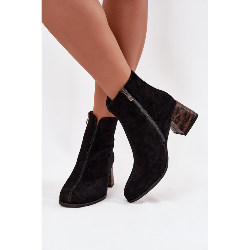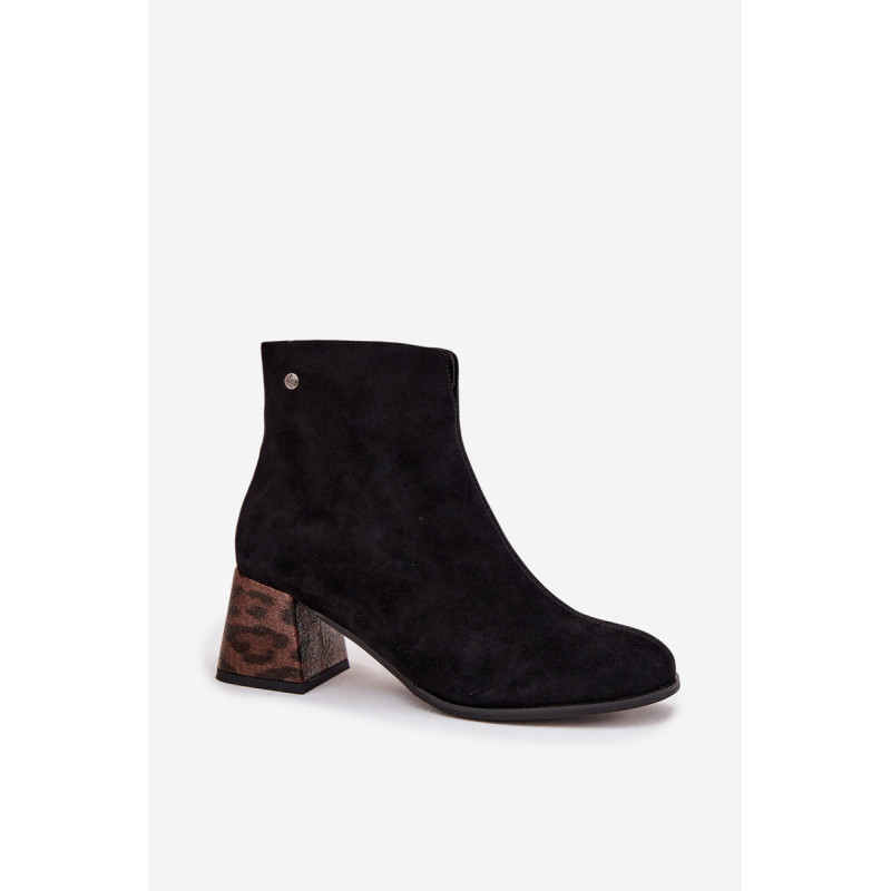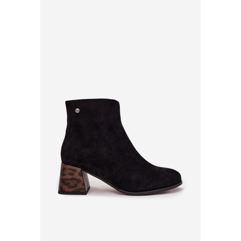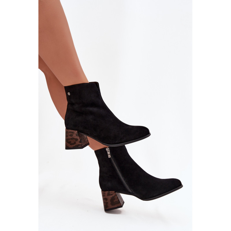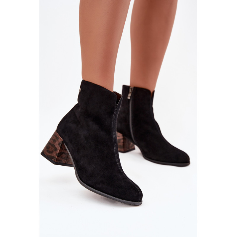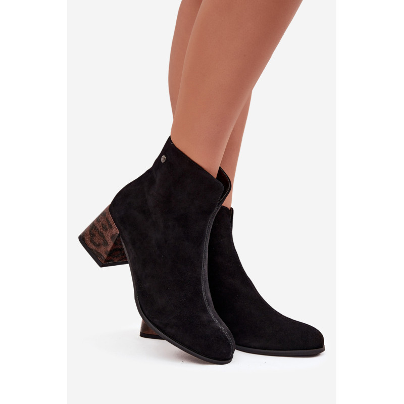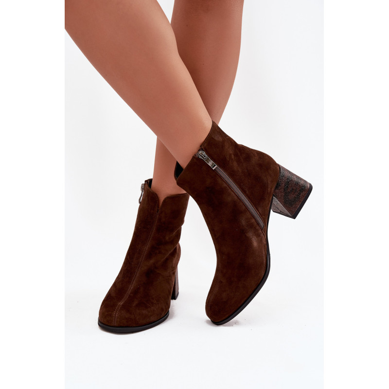 Moteriškos aulinukės Maciejka prekės ženklas. Pagamintos iš aukštos kokybės natūralios odos su zomšos apdaila, atrodo itin stilingai ir elegantiškai. Modelis išsiskiria dekoratyviniu stulpelio formos kulnu, kuris suteikia karakterio, tuo pačiu užtikrindamas stabilumą ir patogumą dėvint. Apvalios nosys pabrėžia jų moterišką išvaizdą, o praktiškas užtrauktukas palengvina užsidėjimą. Vidus išklotas minkšta avalynės antklode, užtikrinančia komfortą šaltomis dienomis. Papildomas dekoratyvinis elementas yra siūlė, einanti palei kulkšnį, optiškai siaurindama koją. Šios aulinės idealios rudeninėms ir žieminėms stilizacijoms, kurios jungia patogumą su laiko patikrintu stiliumi. Renkantis dydį, prašome vadovautis dydžių lentele. Renkantis dydį, vadovaukitės dydžių lentele.